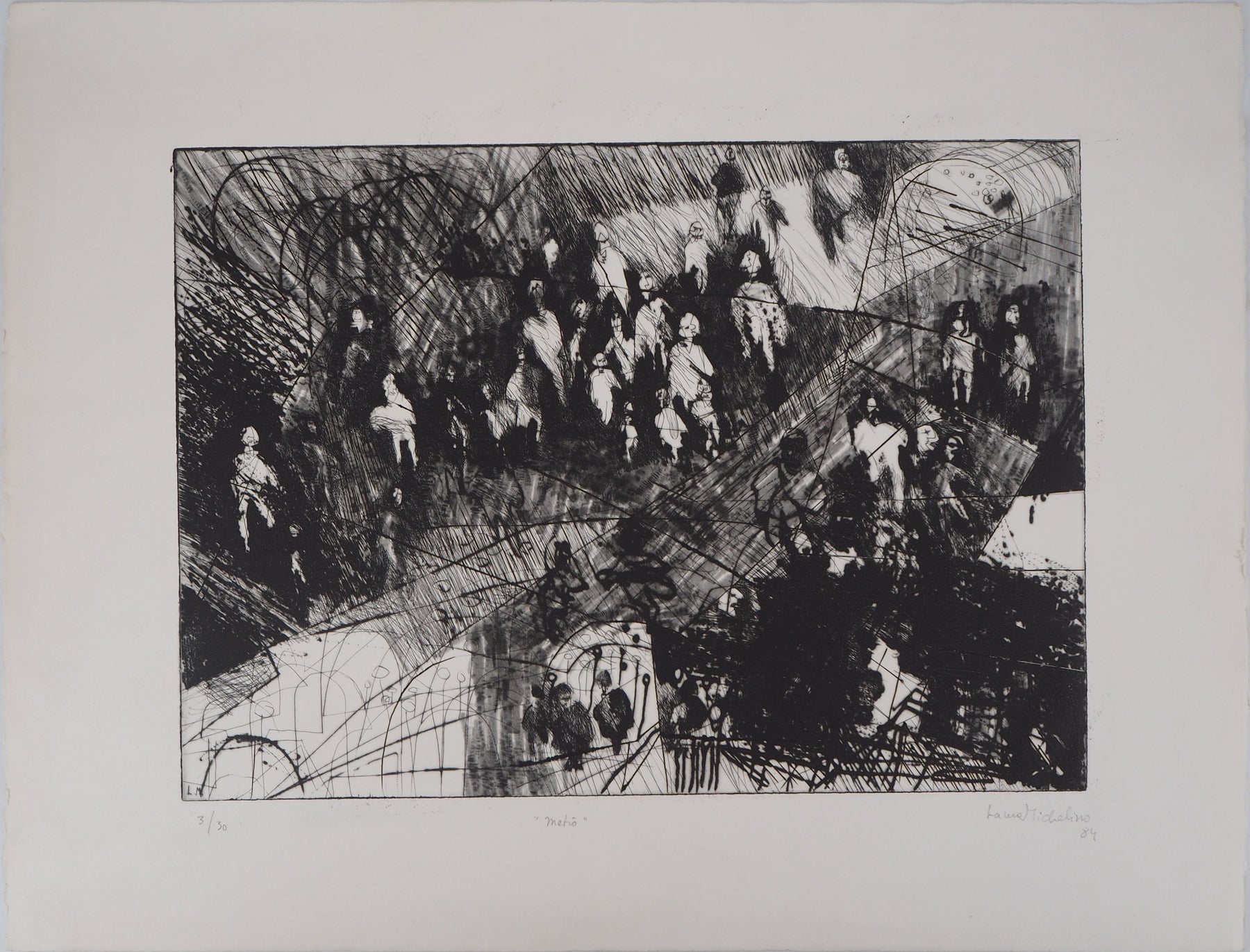 BT Laure MICHELINO: Metro, Original signierter Kupferstich