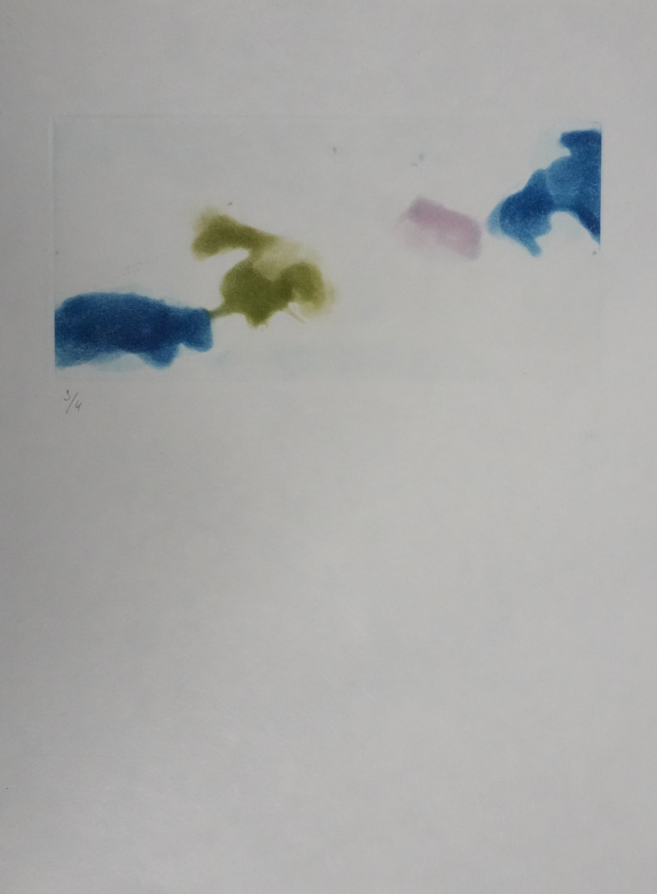 INFORMATION : Cette gravure a été créée pour le portefolio L'étang (poème de Jean Lescure) et publié en 1972 par les Editions Galanis. Il s'agit ici d'une épreuve d'état pour le premier passage de couleur.