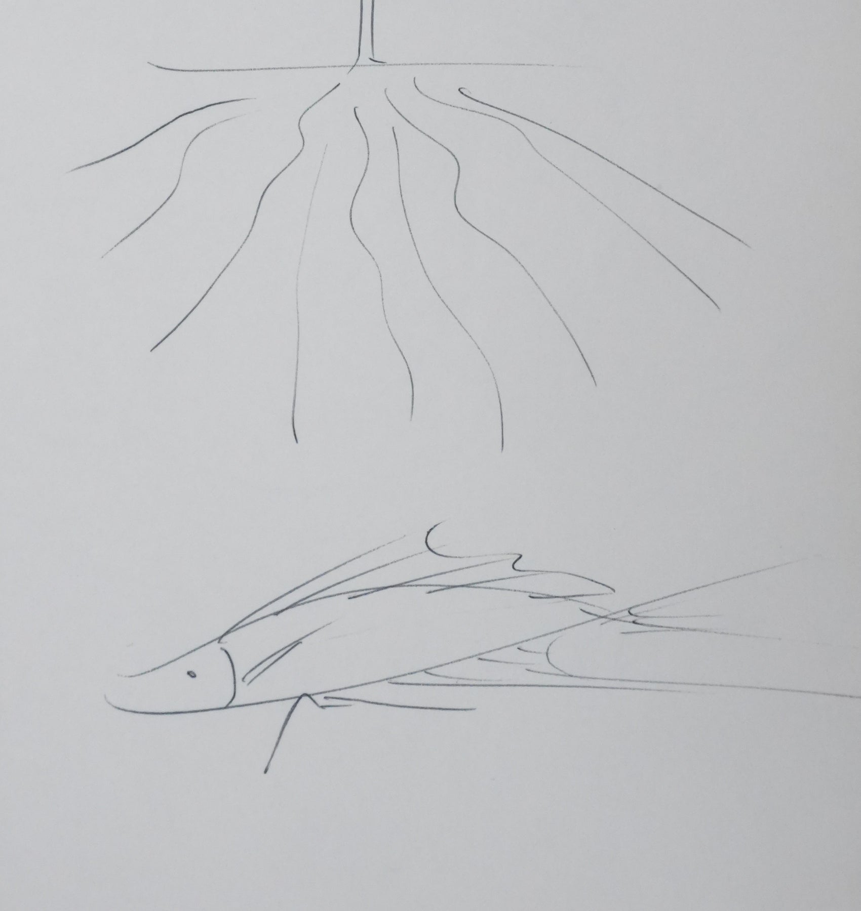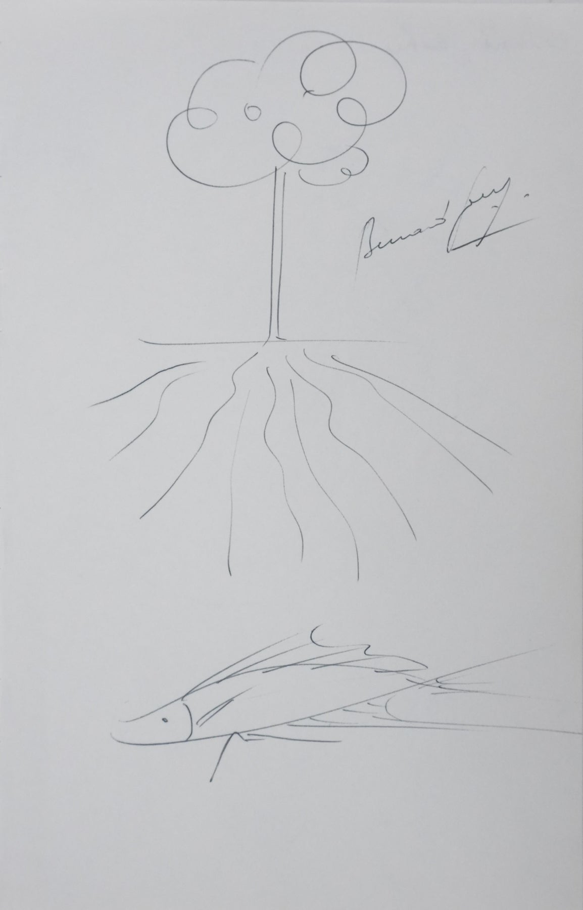 Bernard GORSHKY : Le poisson sous l'arbre, Autographe et dessin original signé
