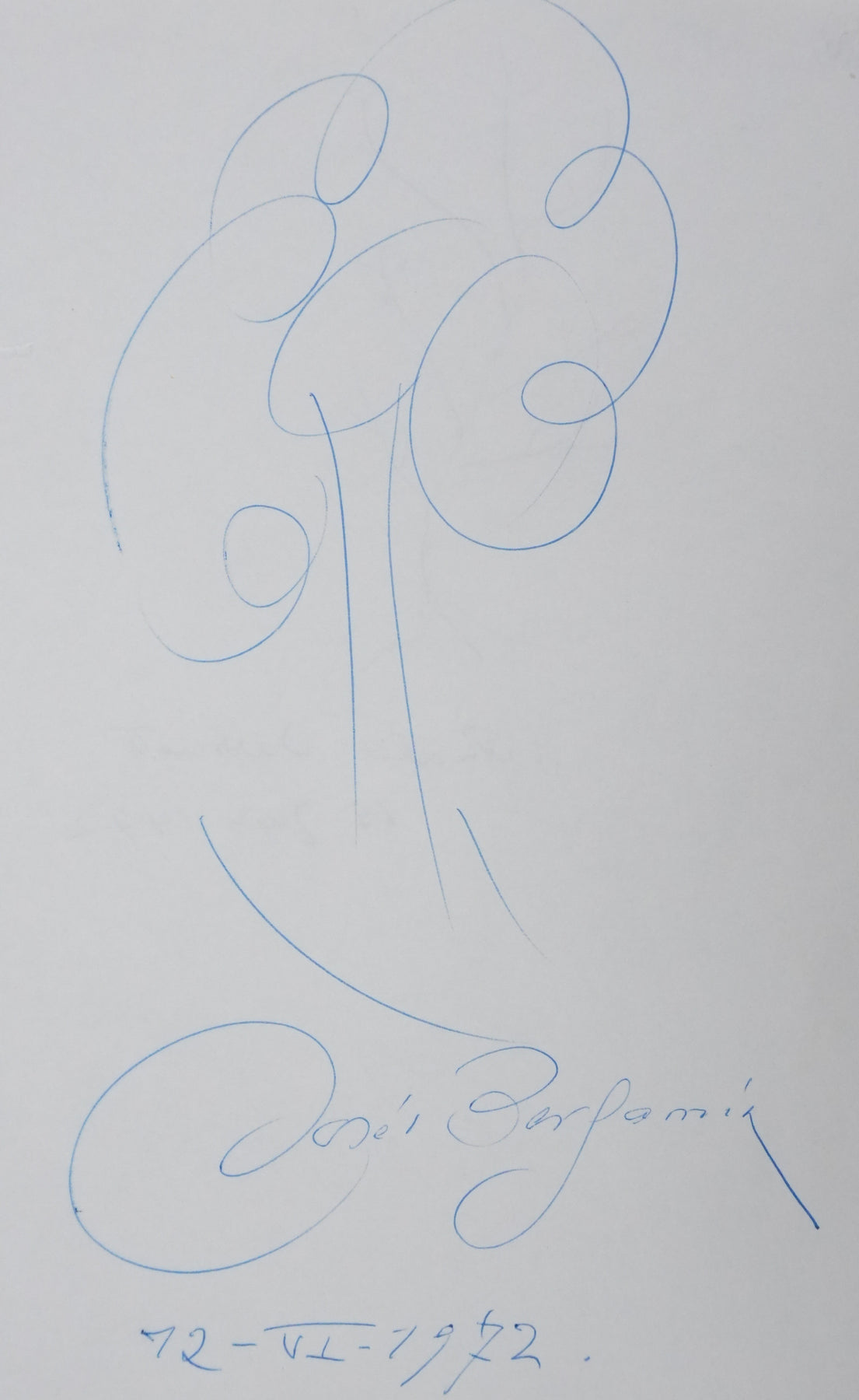 PROVENANCE : Ce dessin provient de la collection personnelle de Pierre Lhoste. Journaliste de radio, Pierre Lhoste (1913-1984) demanda aux personnalités qu’il recevait de réaliser un autographe accompagné d'un dessin d’arbre, constituant ainsi un témoignage unique de ses entretiens.