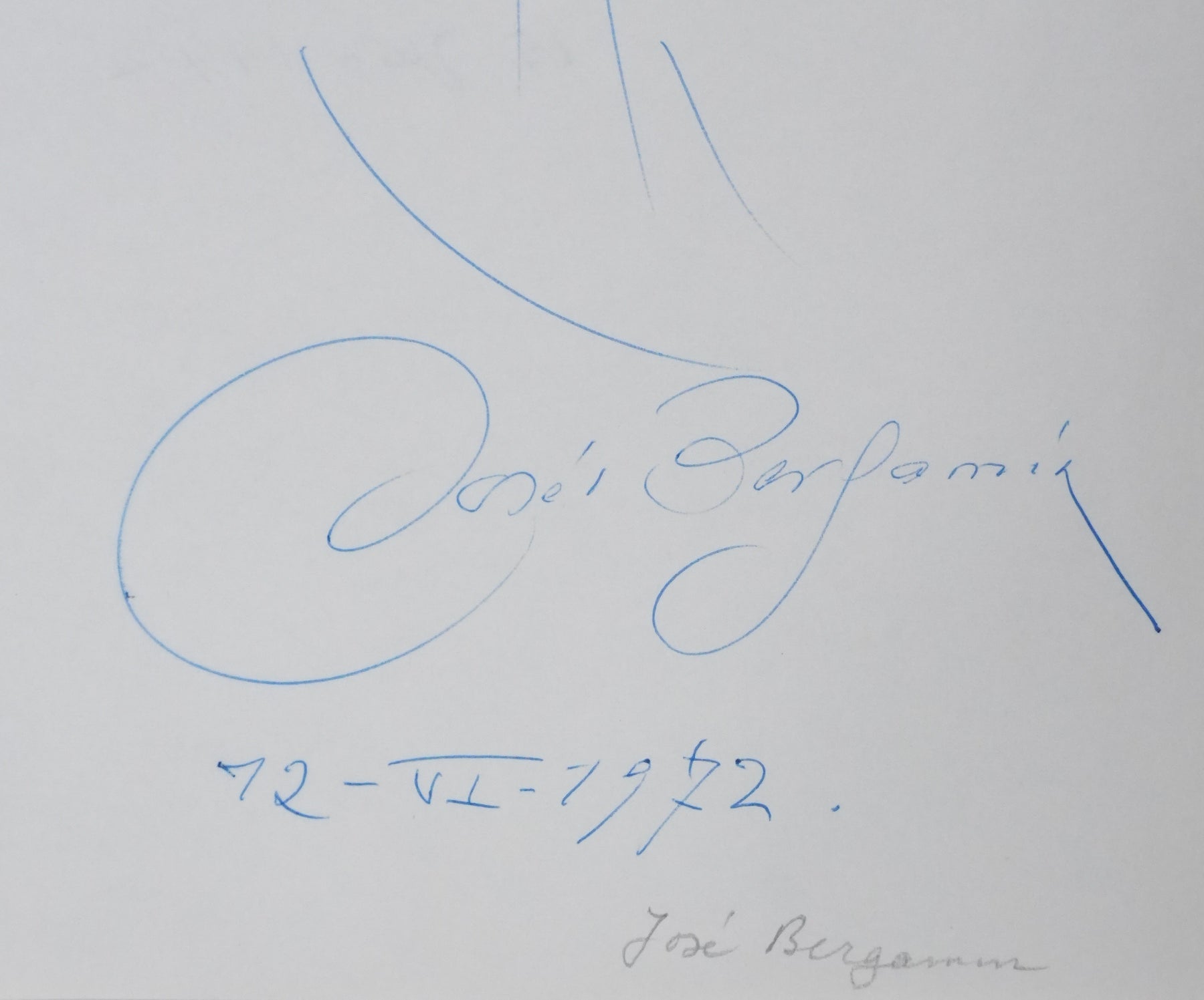 Au verso de l'œuvre (voir photo), dessin et autographe de José Bergamín, qui était un écrivain, essayiste, poète et dramaturge espagnol. Il a fondé la revue Cruz y Raya en 1933, a présidé l’Alliance des intellectuels antifascistes pendant la Guerre d’Espagne, et a vécu un long exil en Amérique latine puis en France avant de revenir en Espagne.