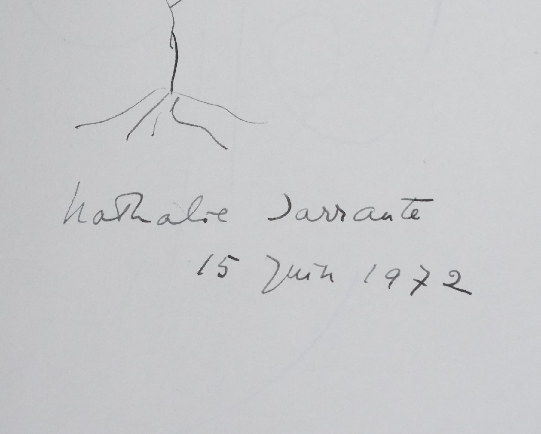 Nathalie SARRAUTE : L'arbuste dans le vent, Autographe et dessin original signé
