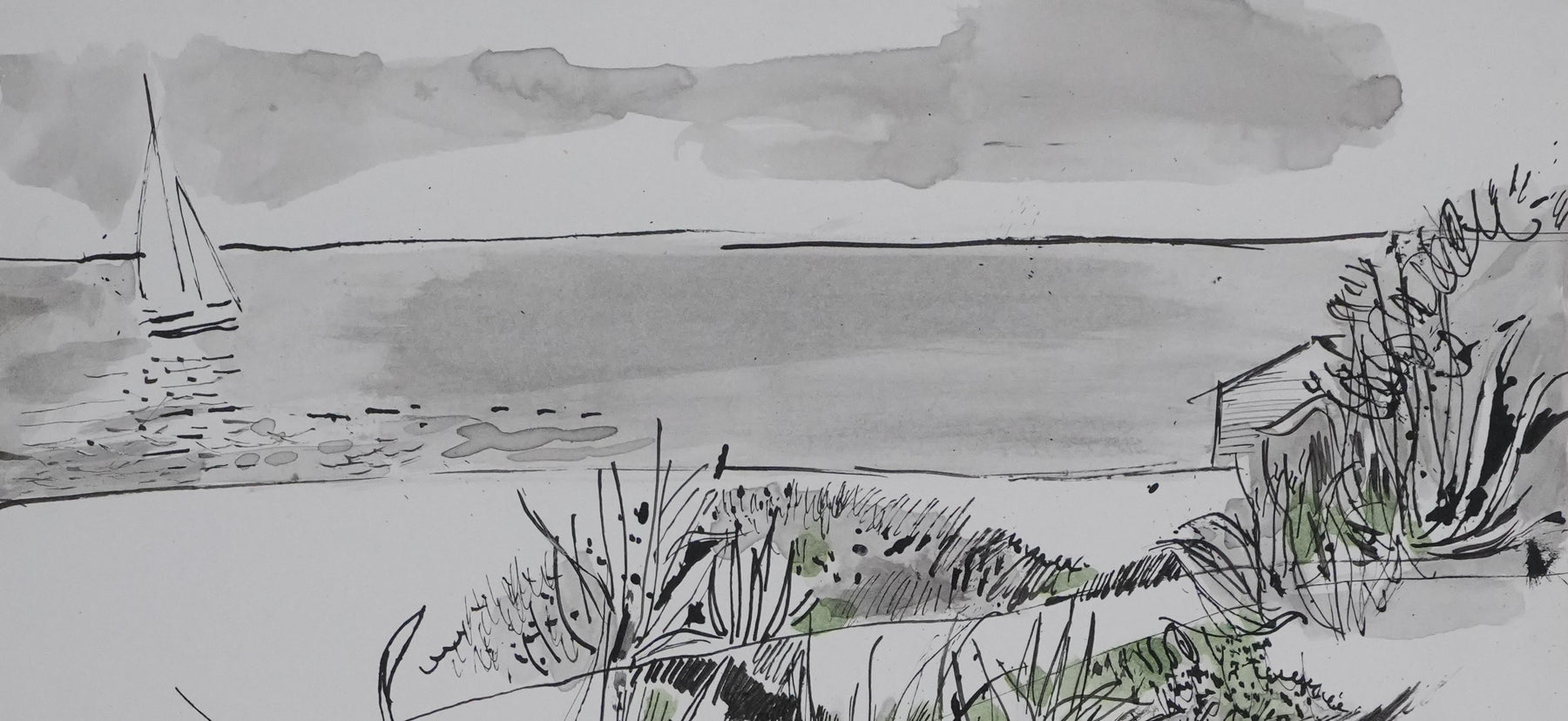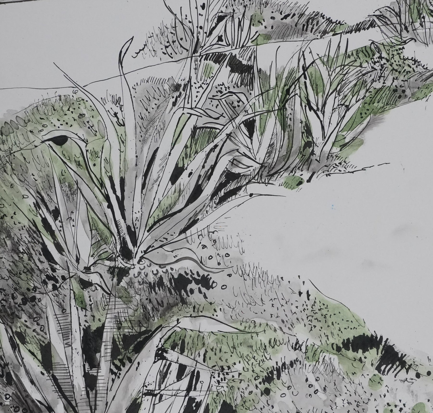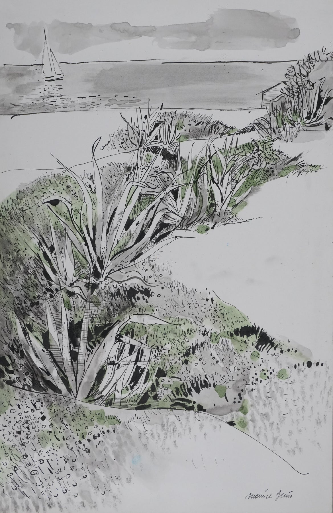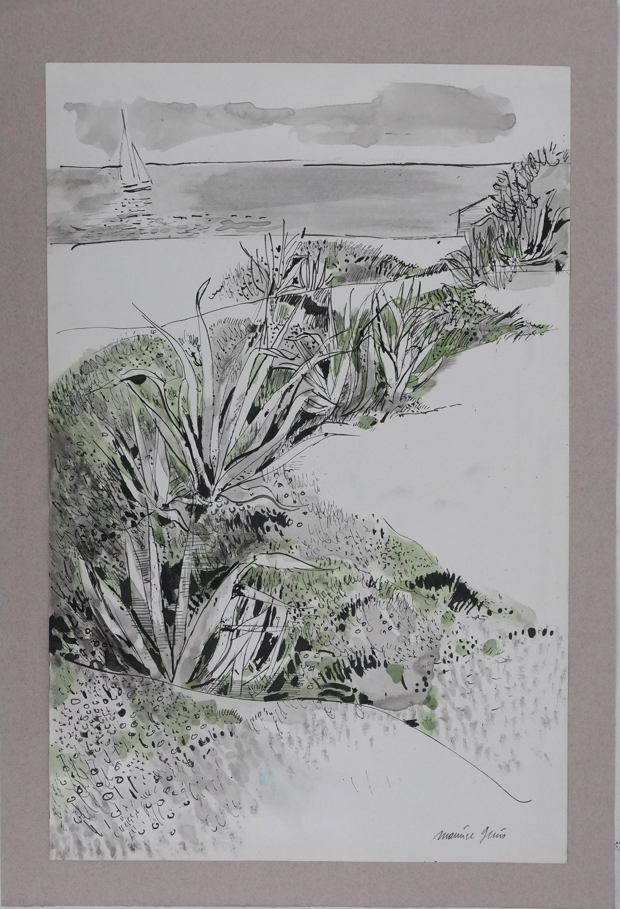 Maurice GENIS : Les cactus au bord de mer, Dessin original signé