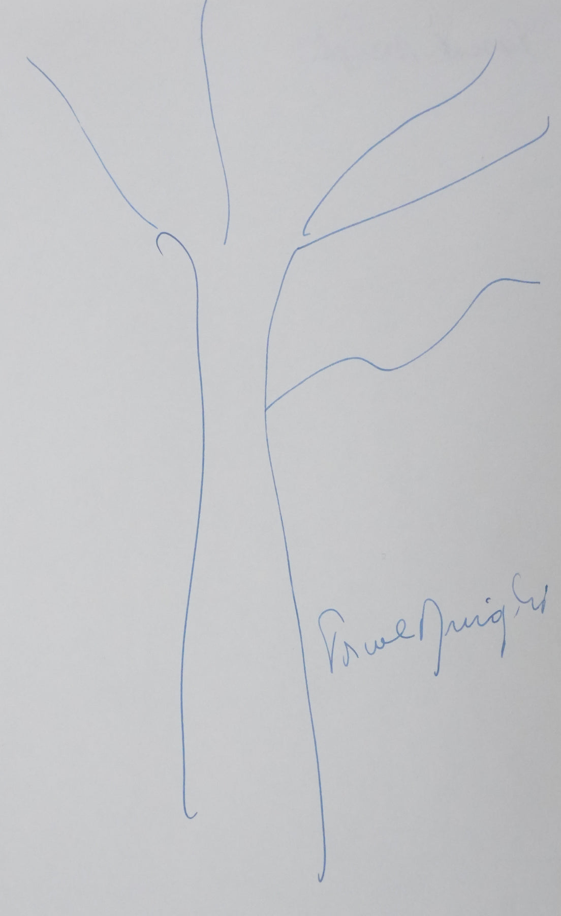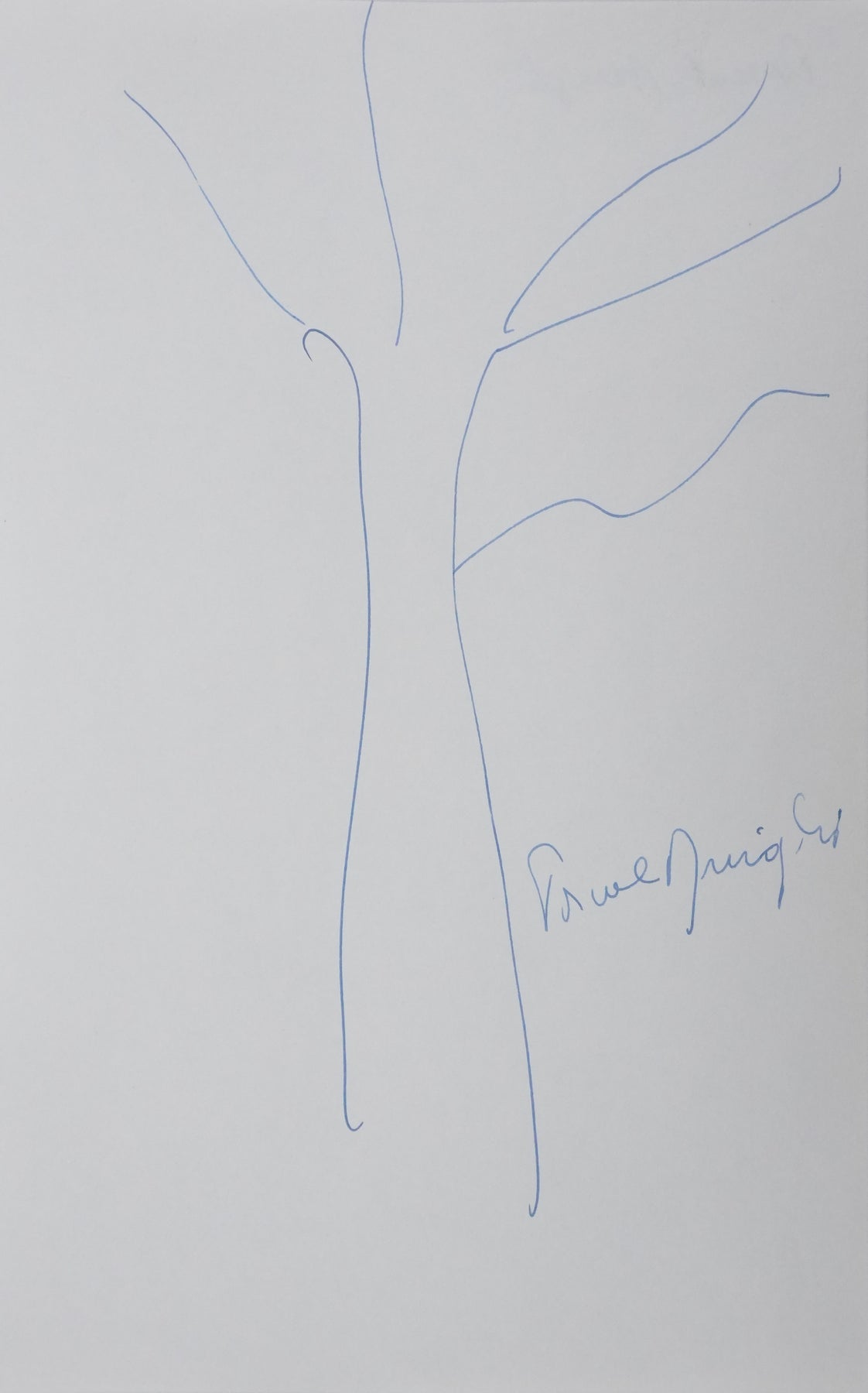 PROVENANCE : Ce dessin provient de la collection personnelle de Pierre Lhoste. Journaliste de radio, Pierre Lhoste (1913-1984) demanda aux personnalités qu’il recevait de réaliser un autographe accompagné d'un dessin d’arbre, constituant ainsi un témoignage unique de ses entretiens.