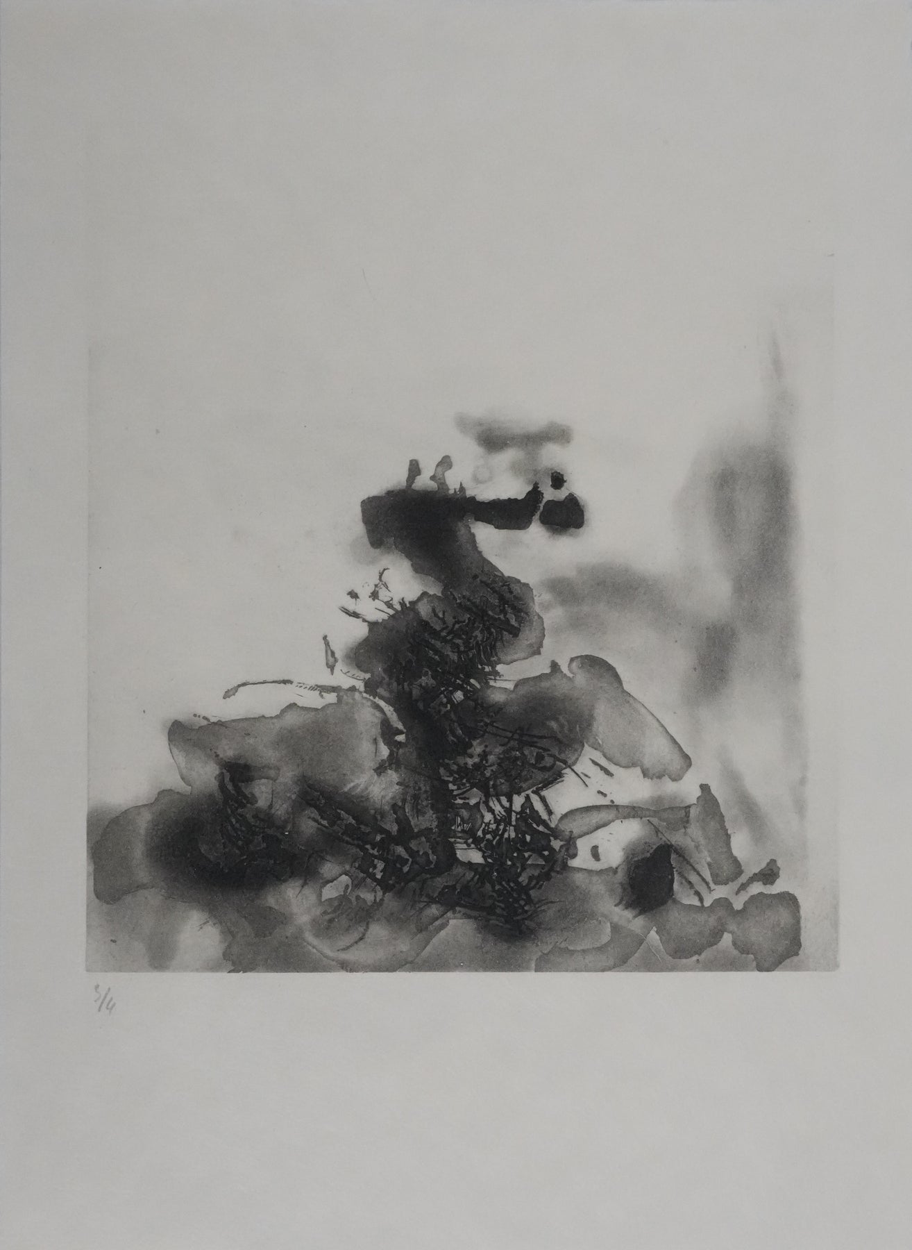 ZAO Wou-Ki : Au fond de l'eau (Etat noir), Gravure originale