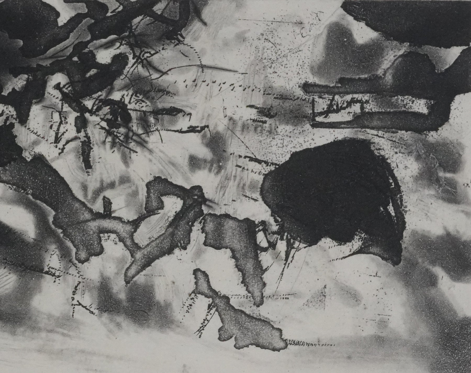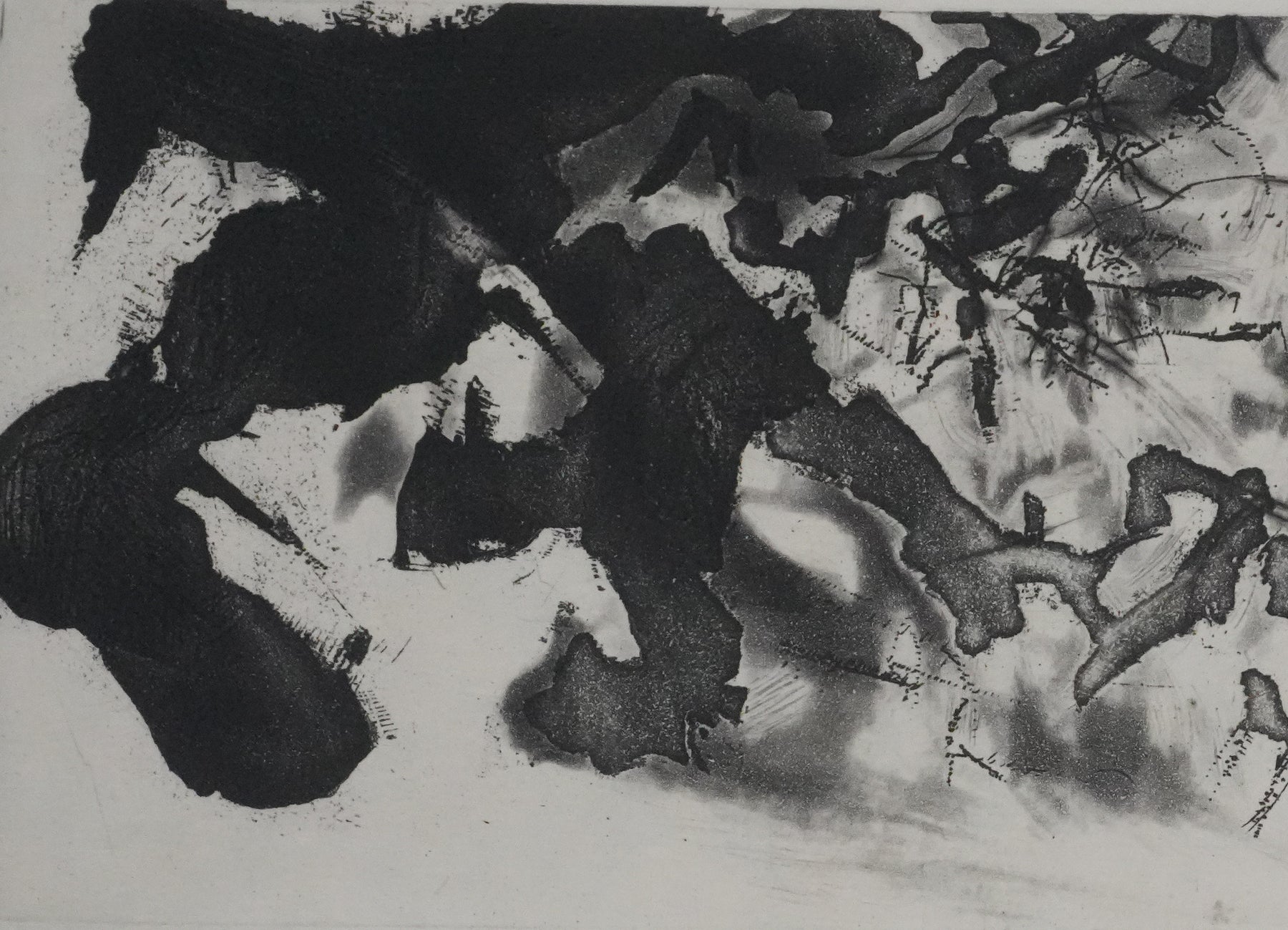 INFORMATION : Cette gravure a été créée pour le portefolio L'étang (poème de Jean Lescure) et publié en 1972 par les Editions Galanis. Il s'agit ici d'une épreuve d'état pour le troisième passage de couleur.
