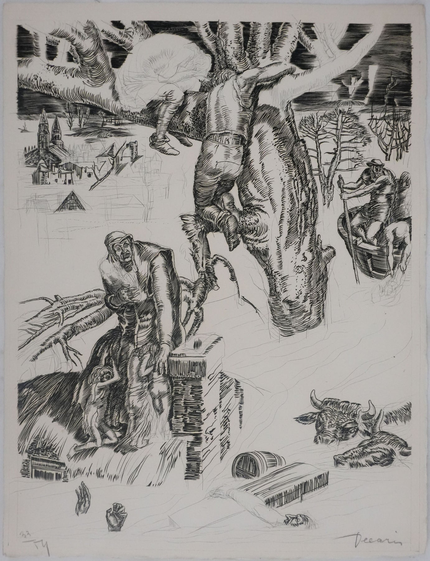 INFORMATION : Cette gravure fait partie du portefolio Discours des misères de ce temps, qui accompagne un texte de Pierre Ronsard. Edité à Paris par Le fuseau de laine.