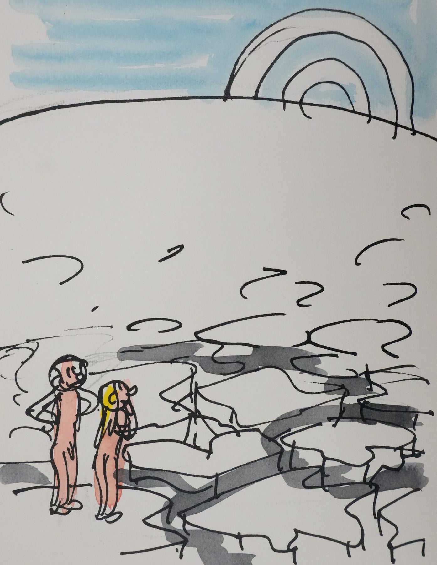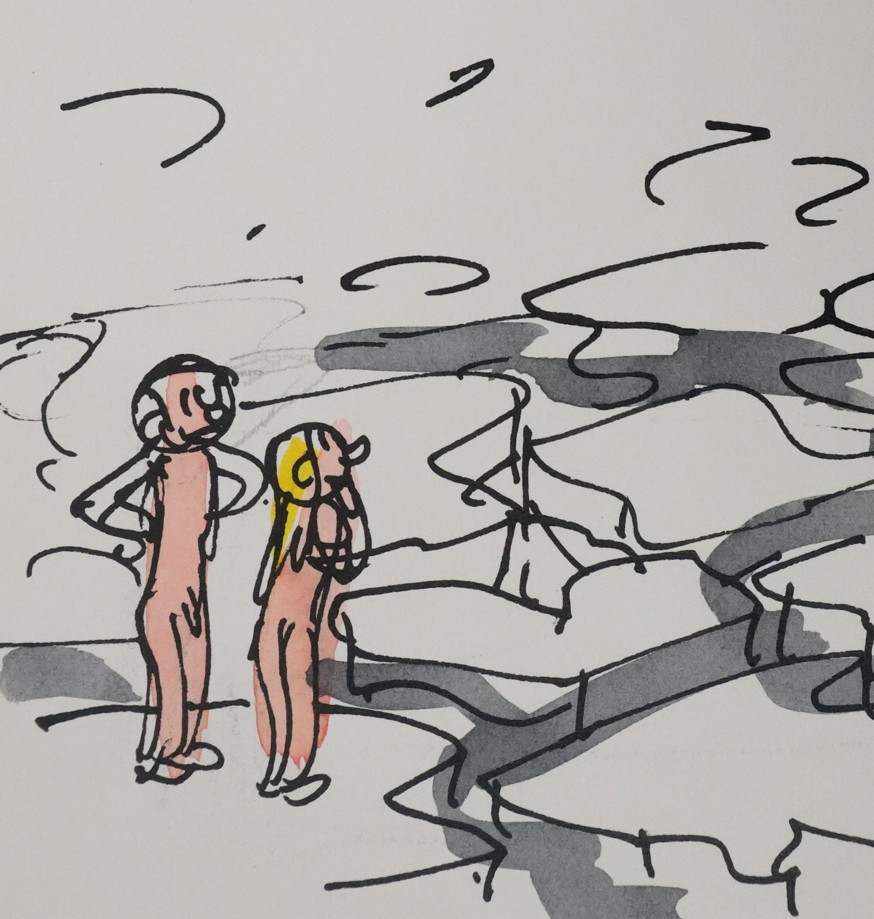 Dessin original à l'aquarelle, à l'encre de Chine et au crayon