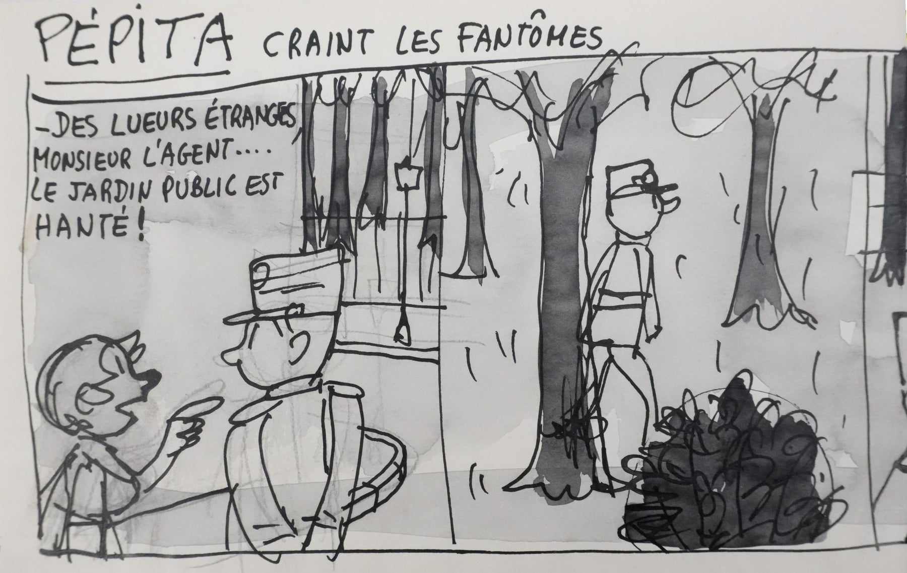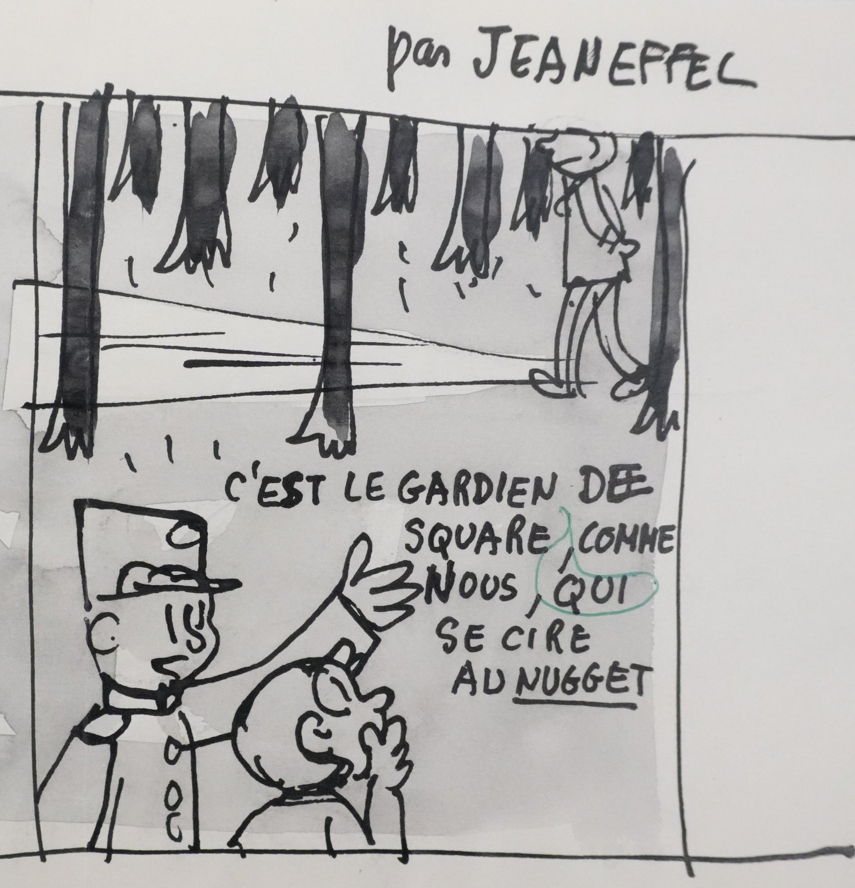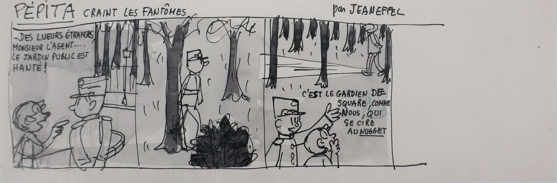 INFORMATION : Dessin préparatoire pour un projet de bande dessinée publicitaire pour le cirage Nugget.