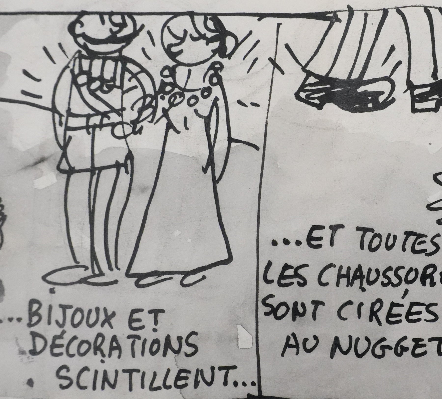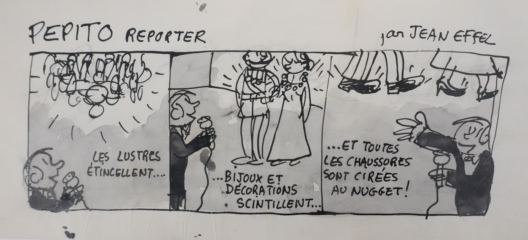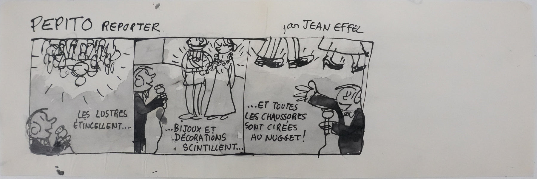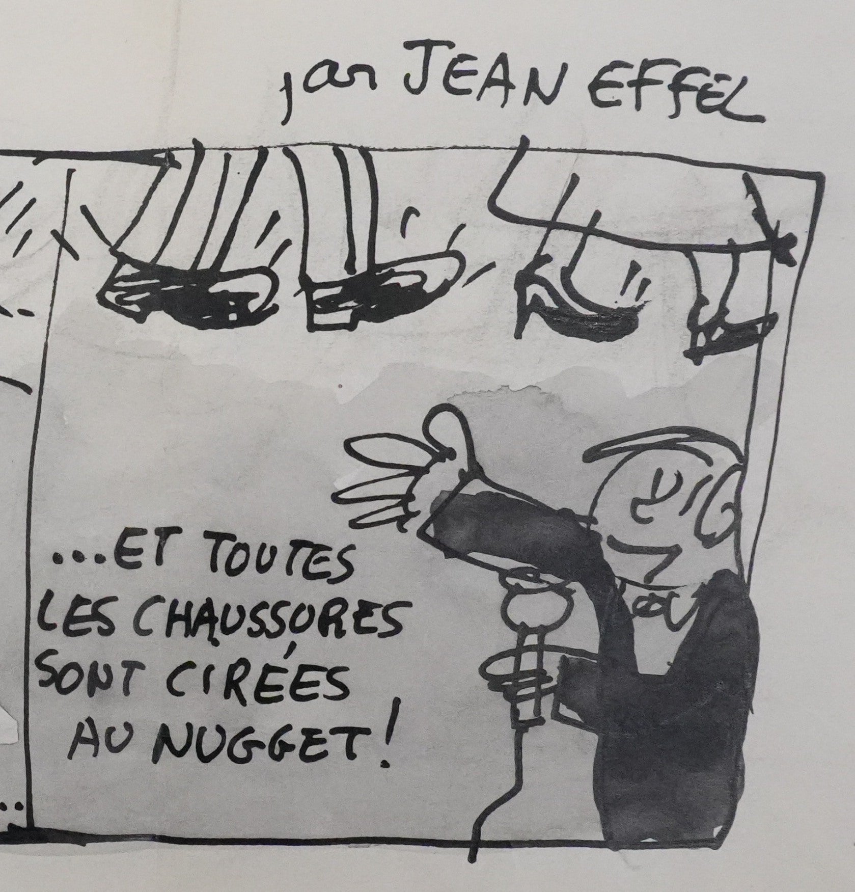 INFORMATION : Dessin préparatoire pour un projet de bande dessinée publicitaire pour le cirage Nugget.