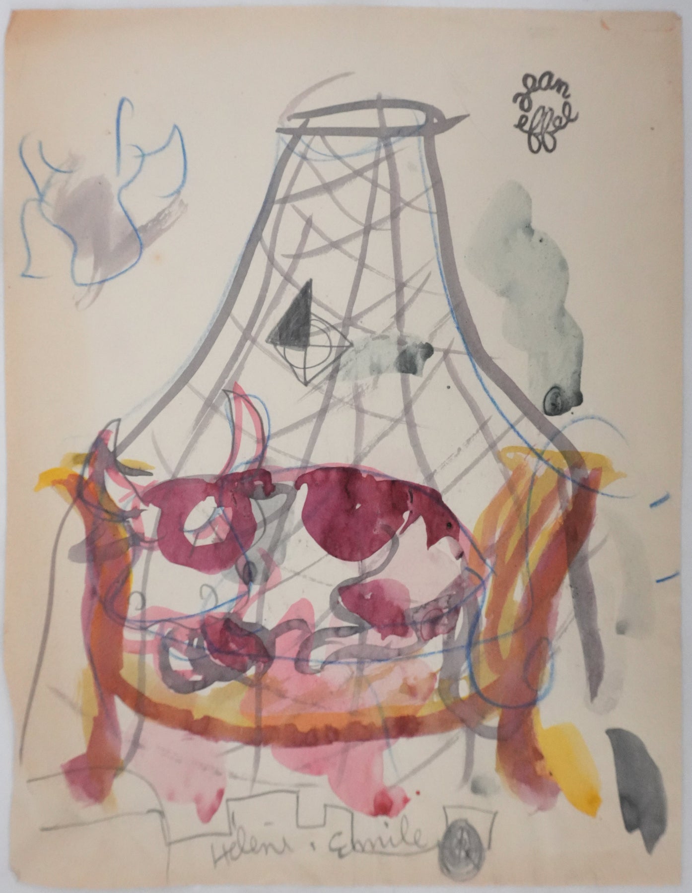 Dessin original à l'aquarelle, à l'encre et la mine de plomb