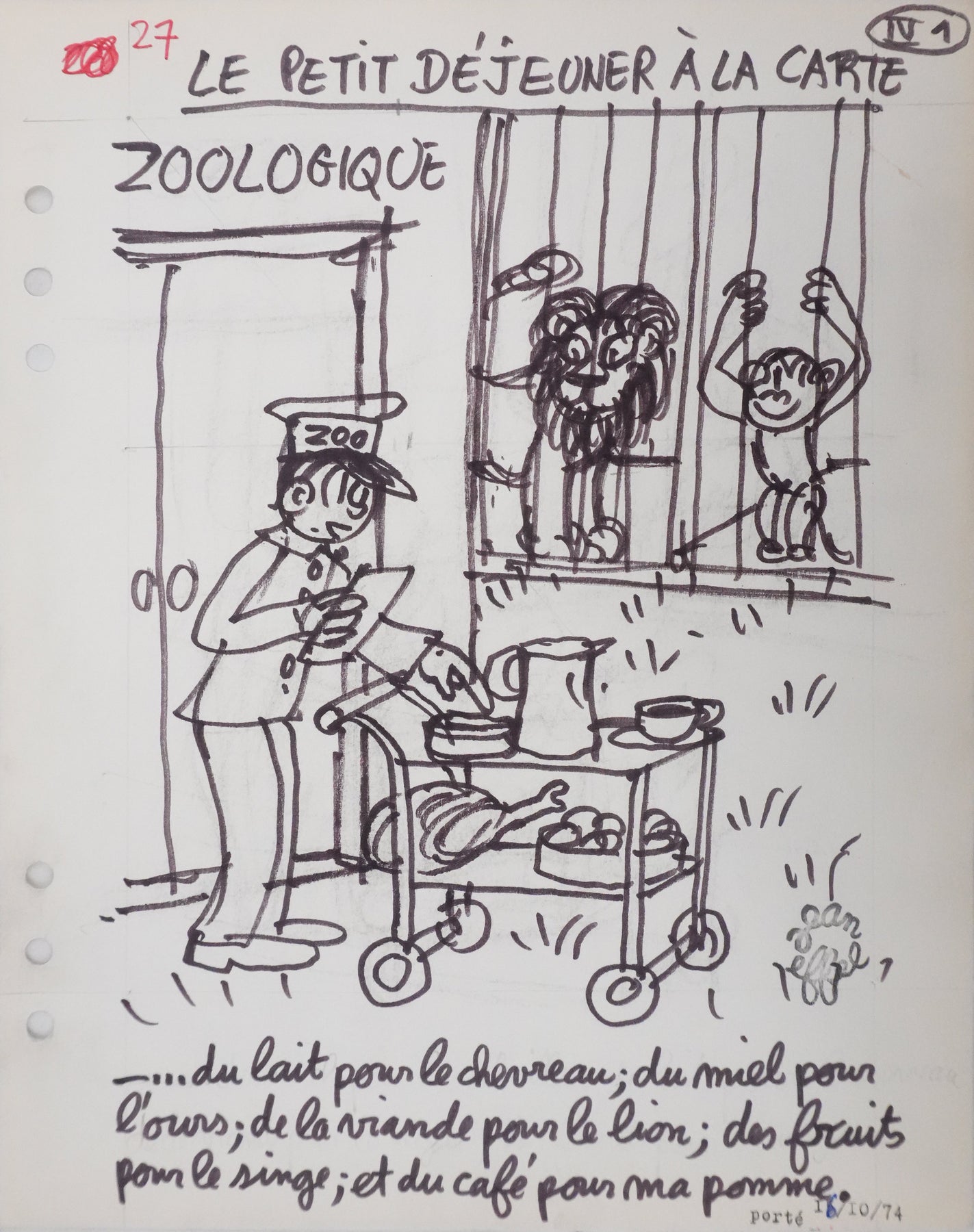 Le petit-déjeuner à la carte, Au zoo, 1974