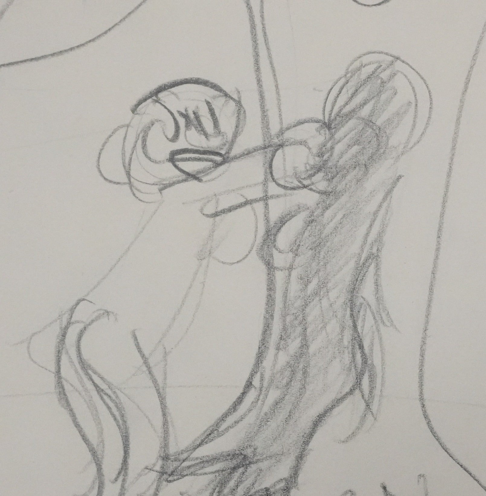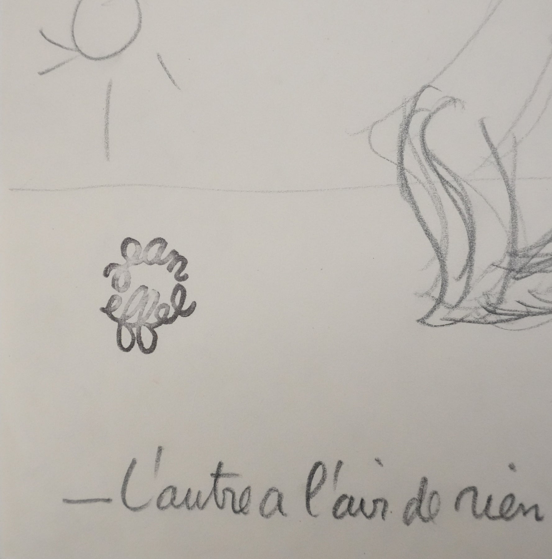 Jean EFFEL : Le stade, L'arbre, Dessin préparatoire original signé
