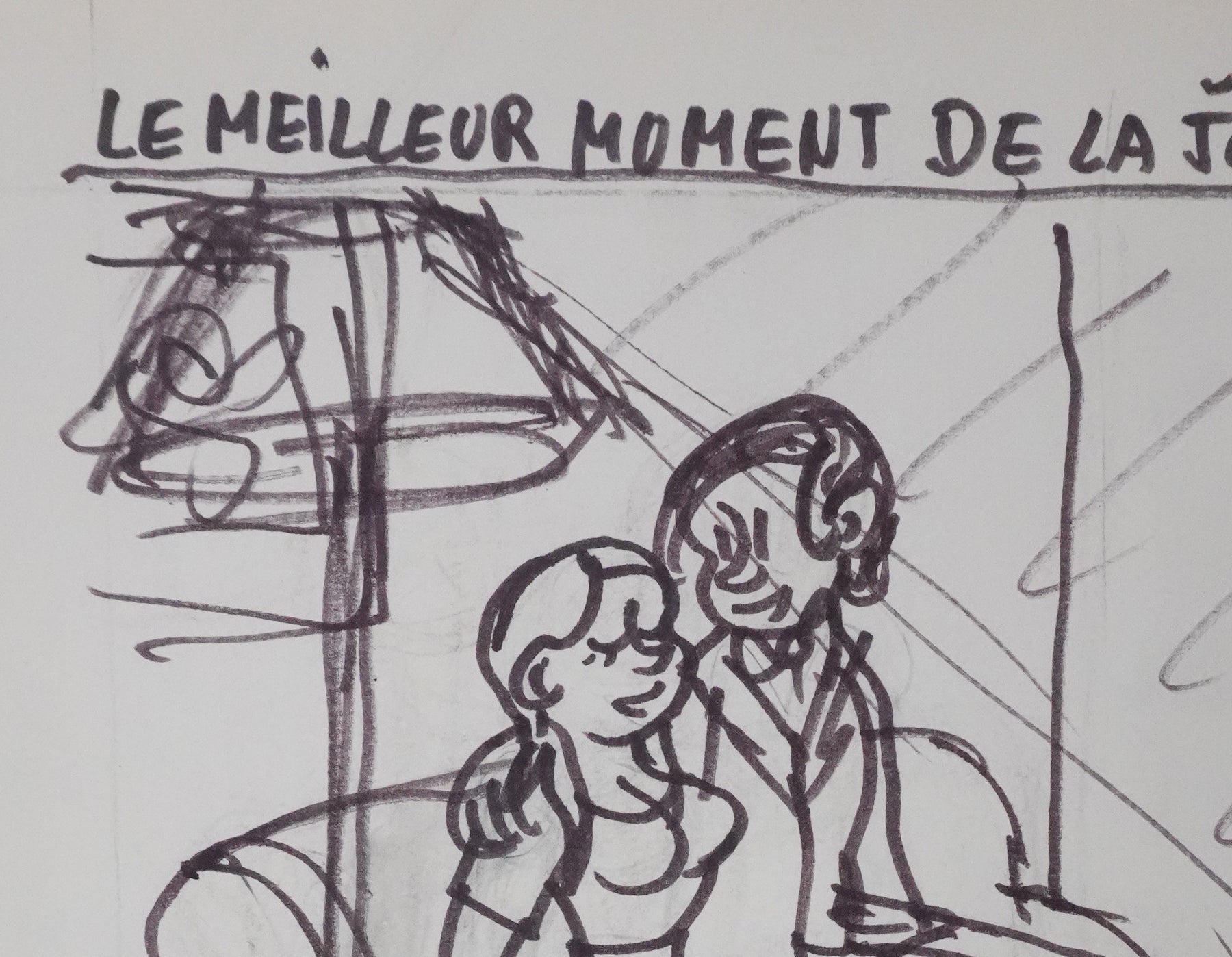 Jean EFFEL : L'humeur des français, le meilleur moment de la journée, Dessin original signé