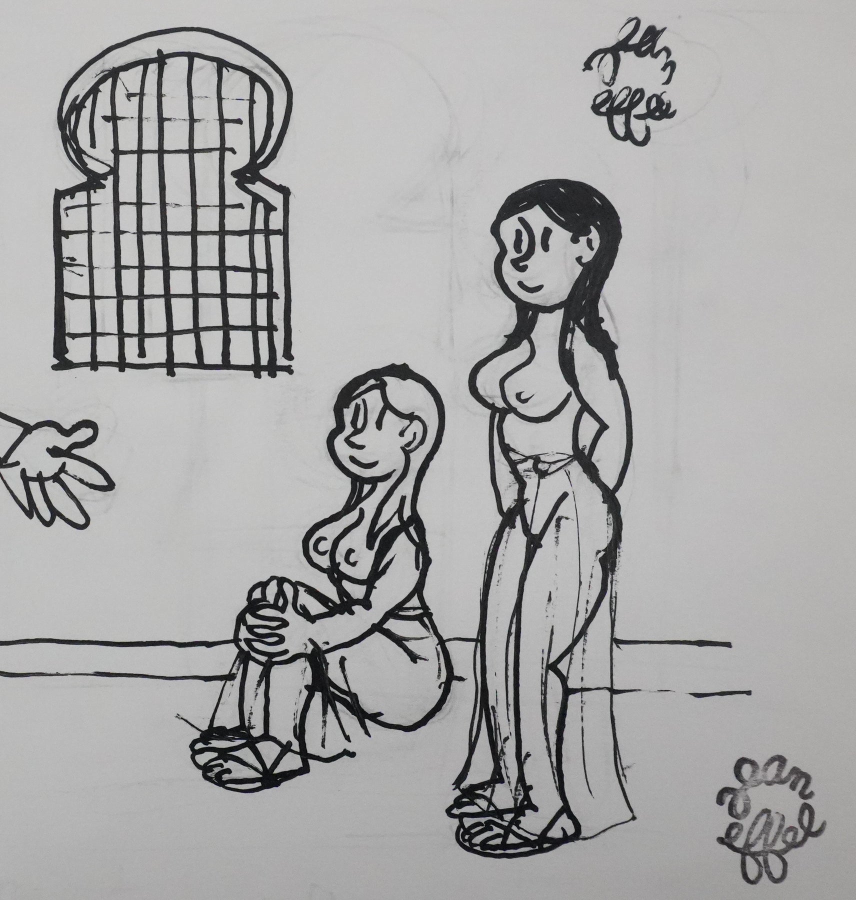 Dessin original à l'encre de Chine et traces de mine plomb