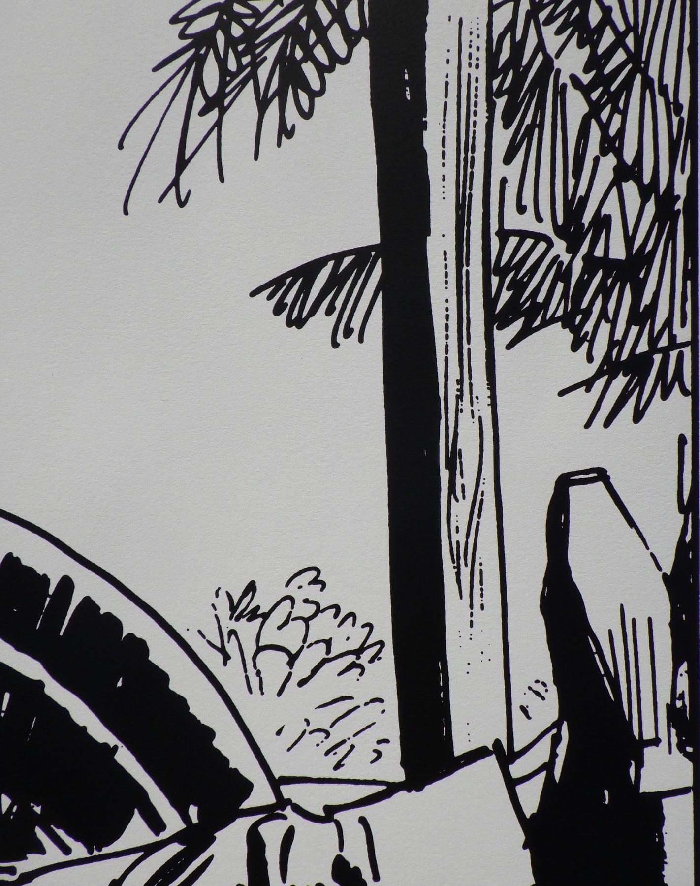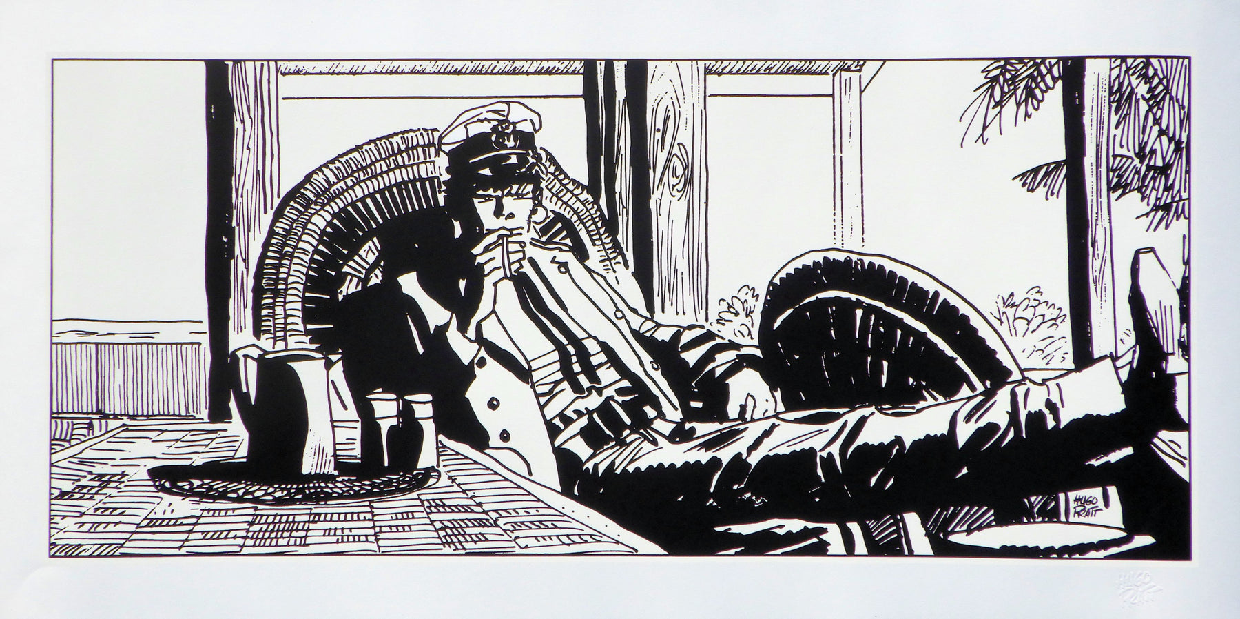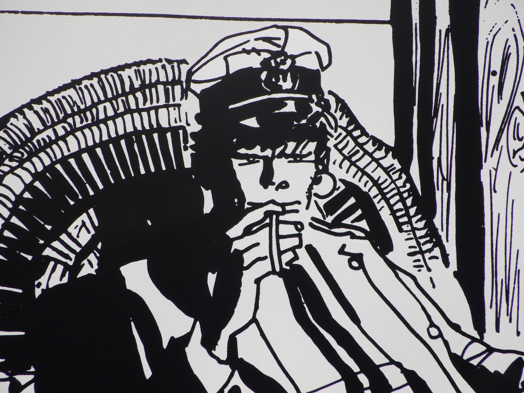 INFORMATION: Dieser 2020 von Christian Collin veröffentlichte Siebdruck ist durch den Trockenstempel und den offiziellen „Hugo Pratt“-Stempel auf der Rückseite authentifiziert.