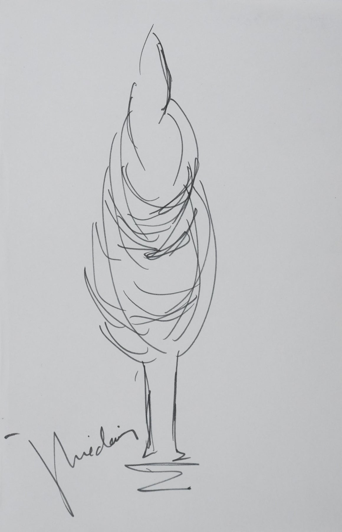PROVENANCE : Ce dessin provient de la collection personnelle de Pierre Lhoste. Journaliste de radio, Pierre Lhoste (1913-1984) demanda aux personnalités qu’il recevait de réaliser un autographe accompagné d'un dessin d’arbre, constituant ainsi un témoignage unique de ses entretiens.