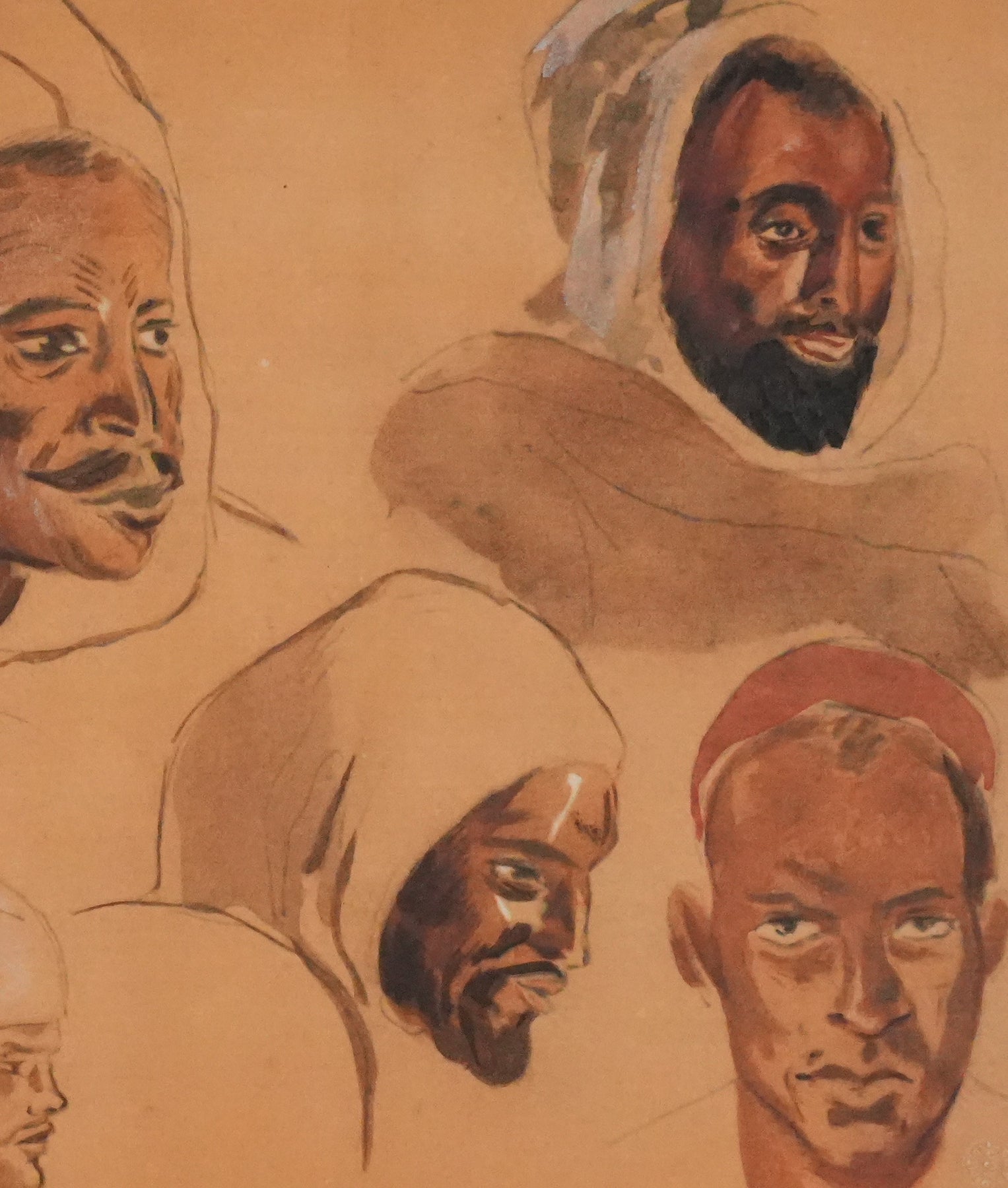 Eugène DELACROIX (d'après) : Etude de visages, Lithographie