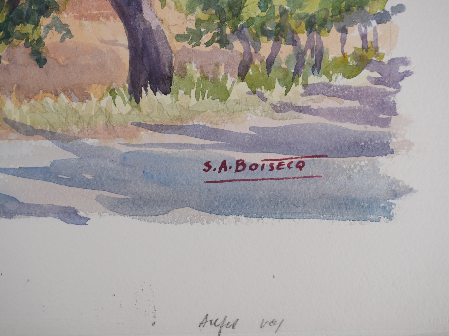 Salomon Alfred BOISECQ : Vue depuis la route d'Aups, Aquarelle originale signée