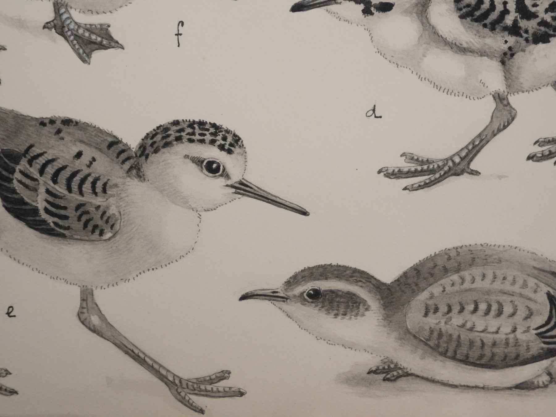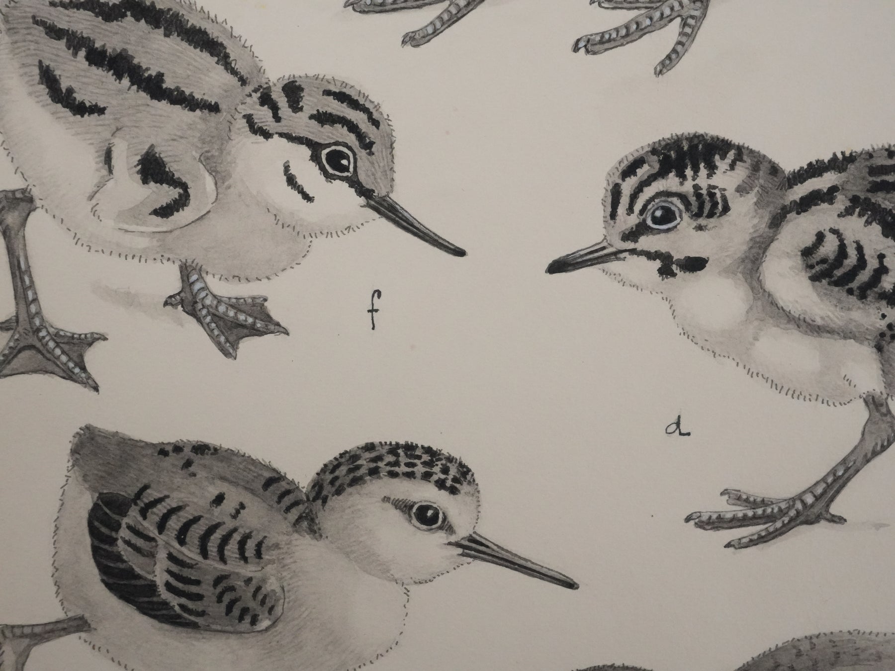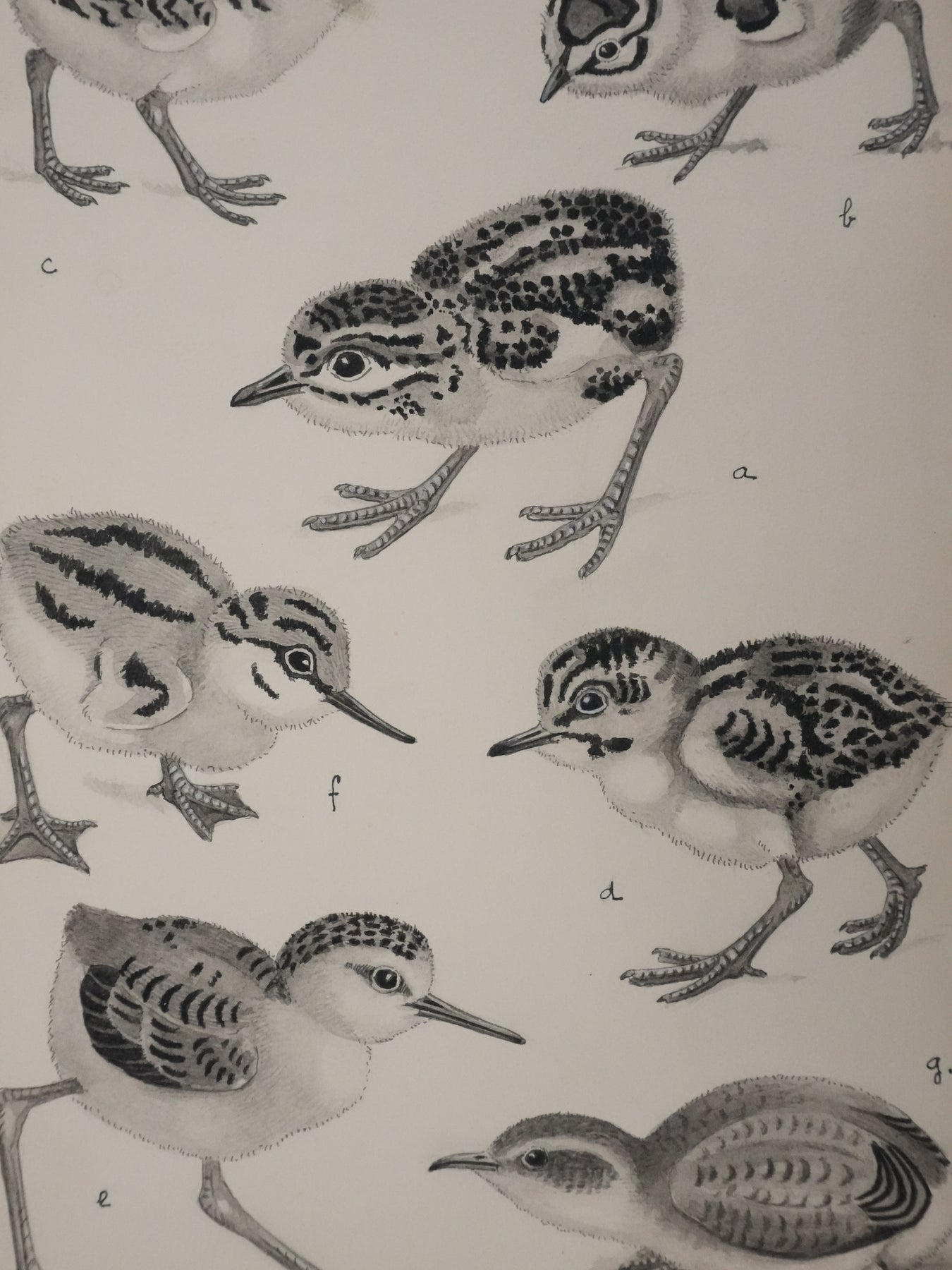 Planche d'ornithologie : Poussins (Maubèche, Pluvier et Echasse)
