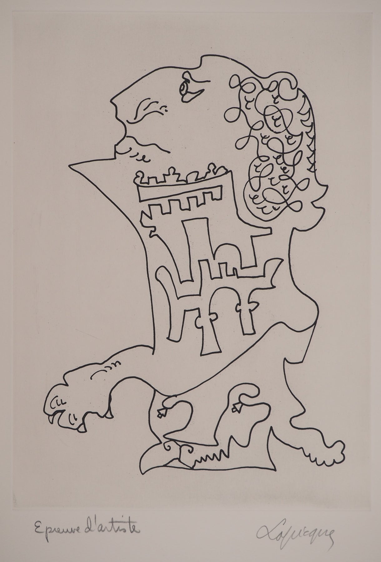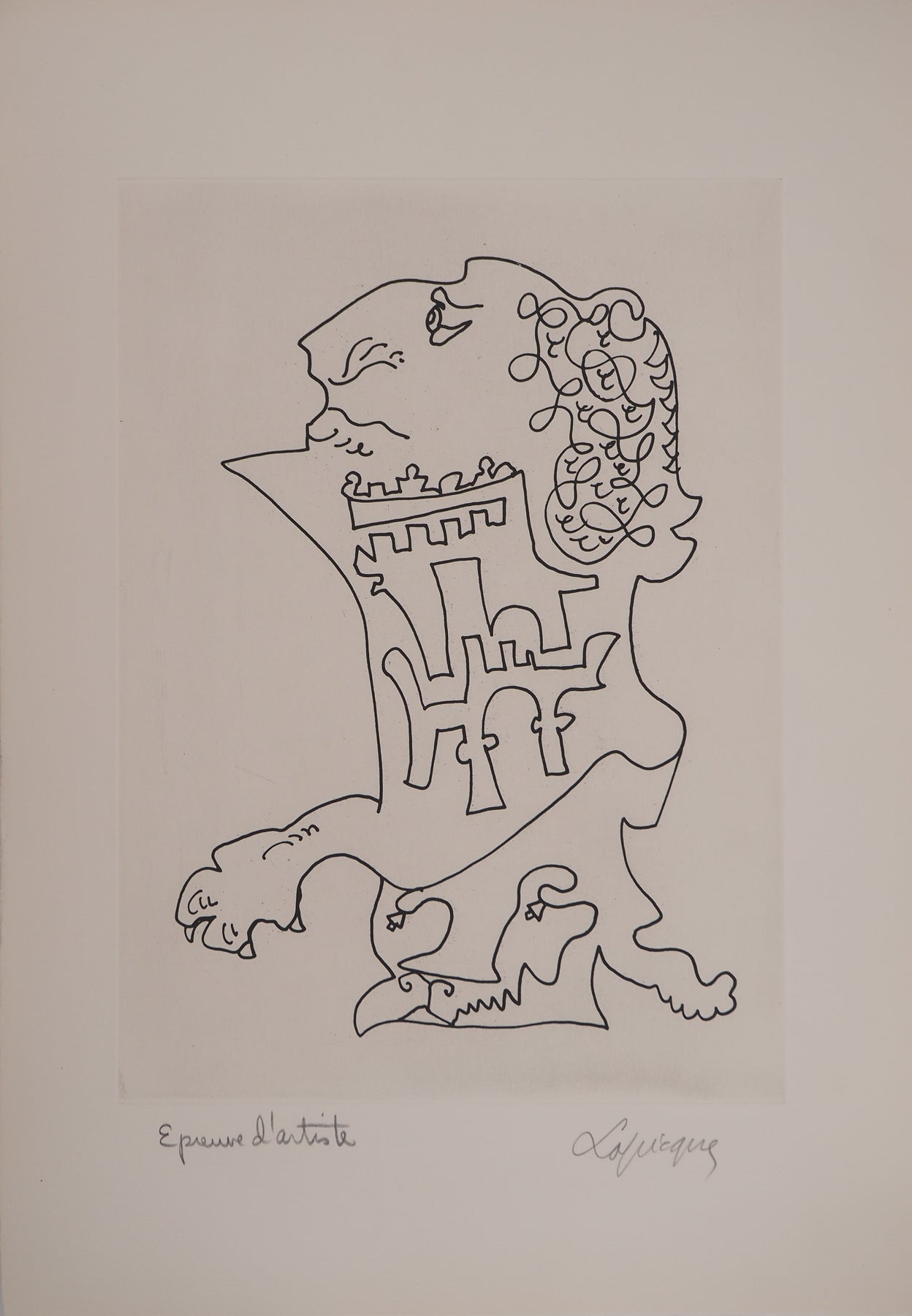 Charles LAPICQUE : Portraits XII, Louis II de Bavière, Gravure originale signée