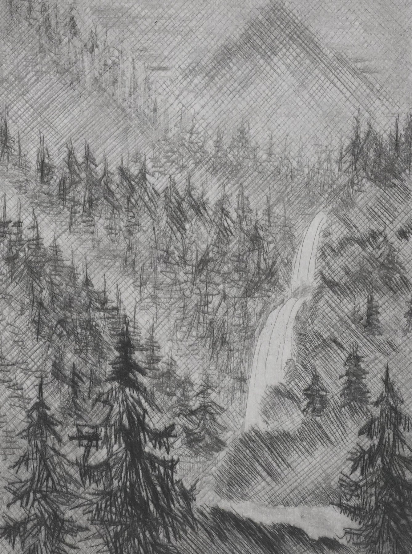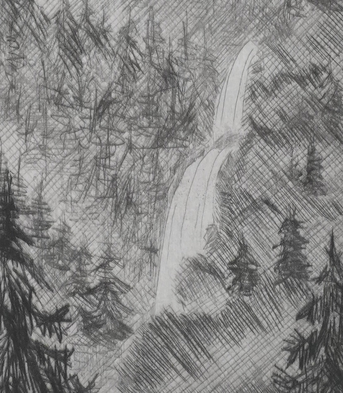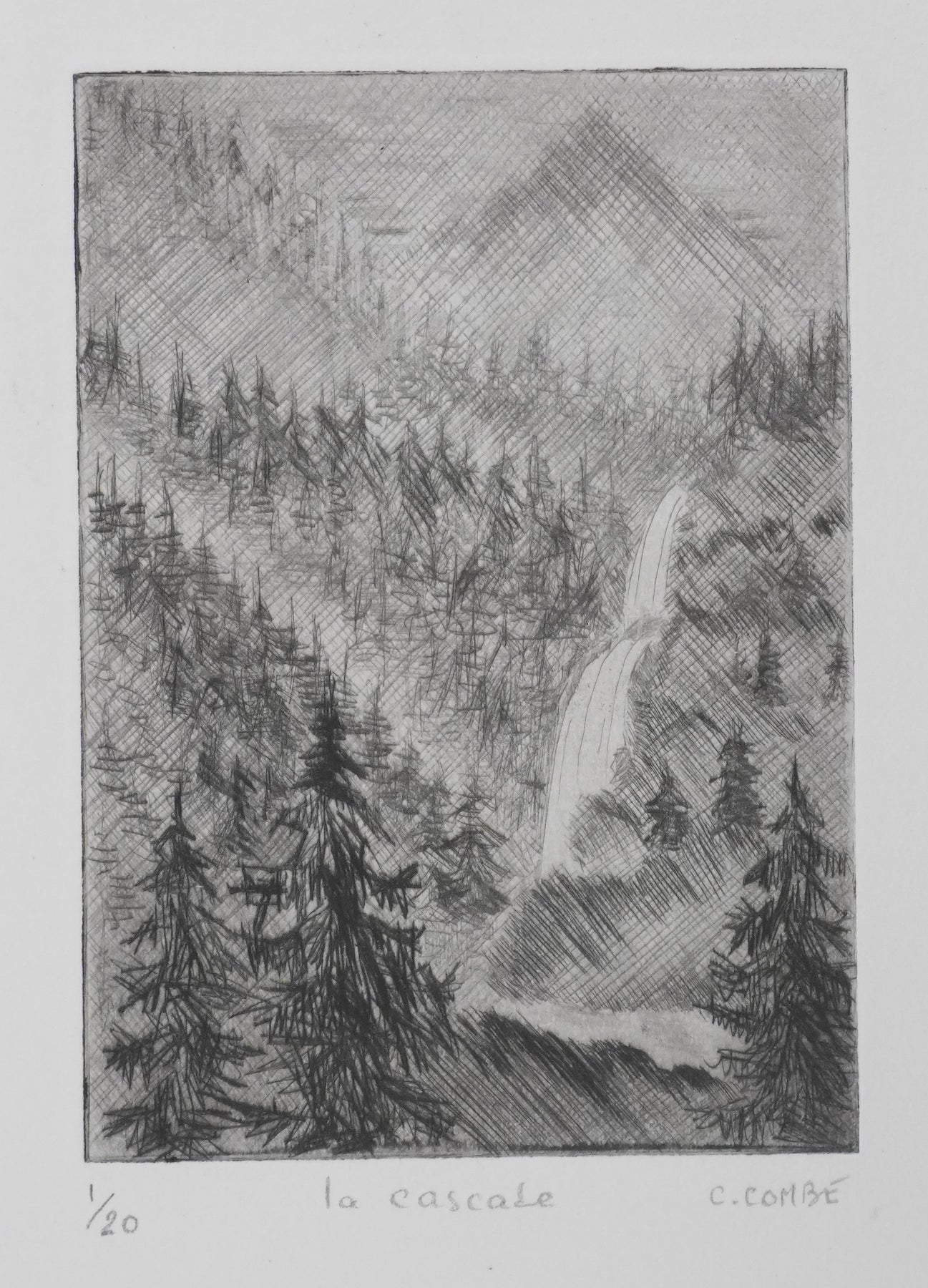 Camille COMBE : La cascade, Gravure originale signée