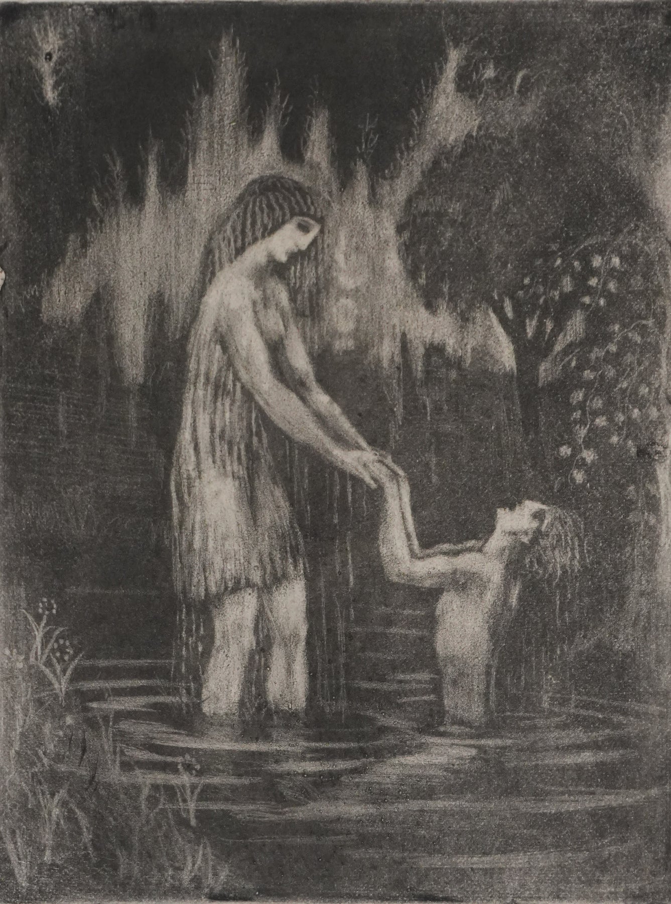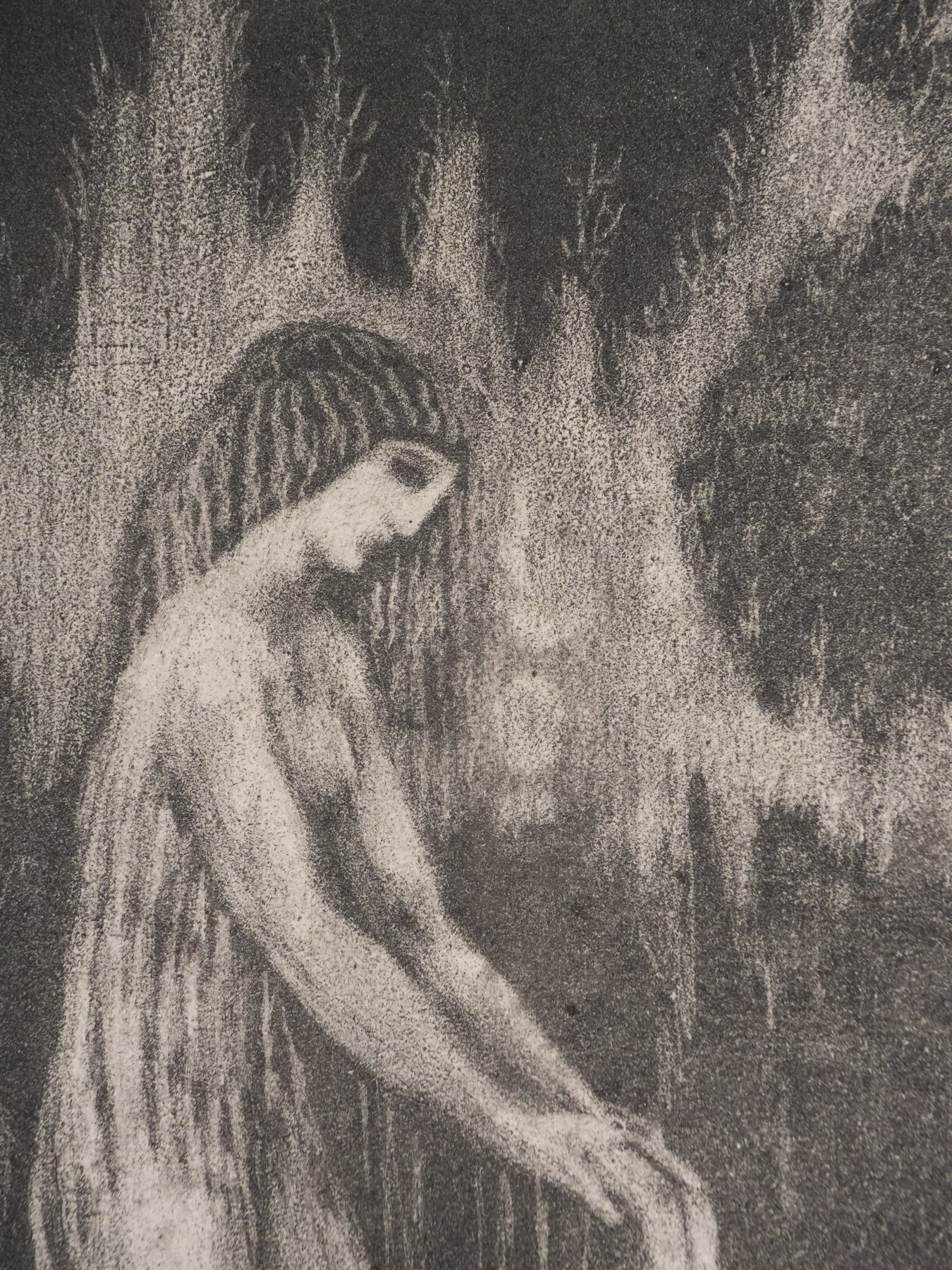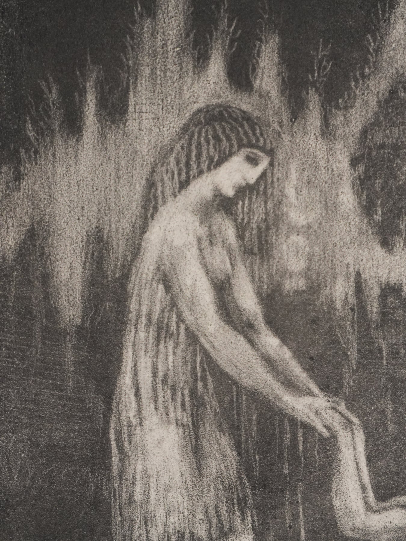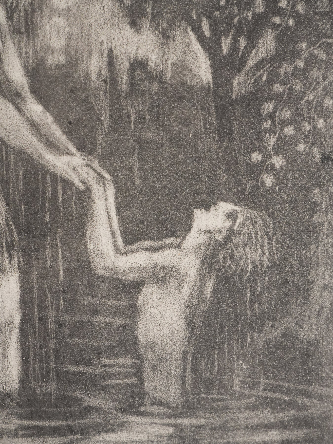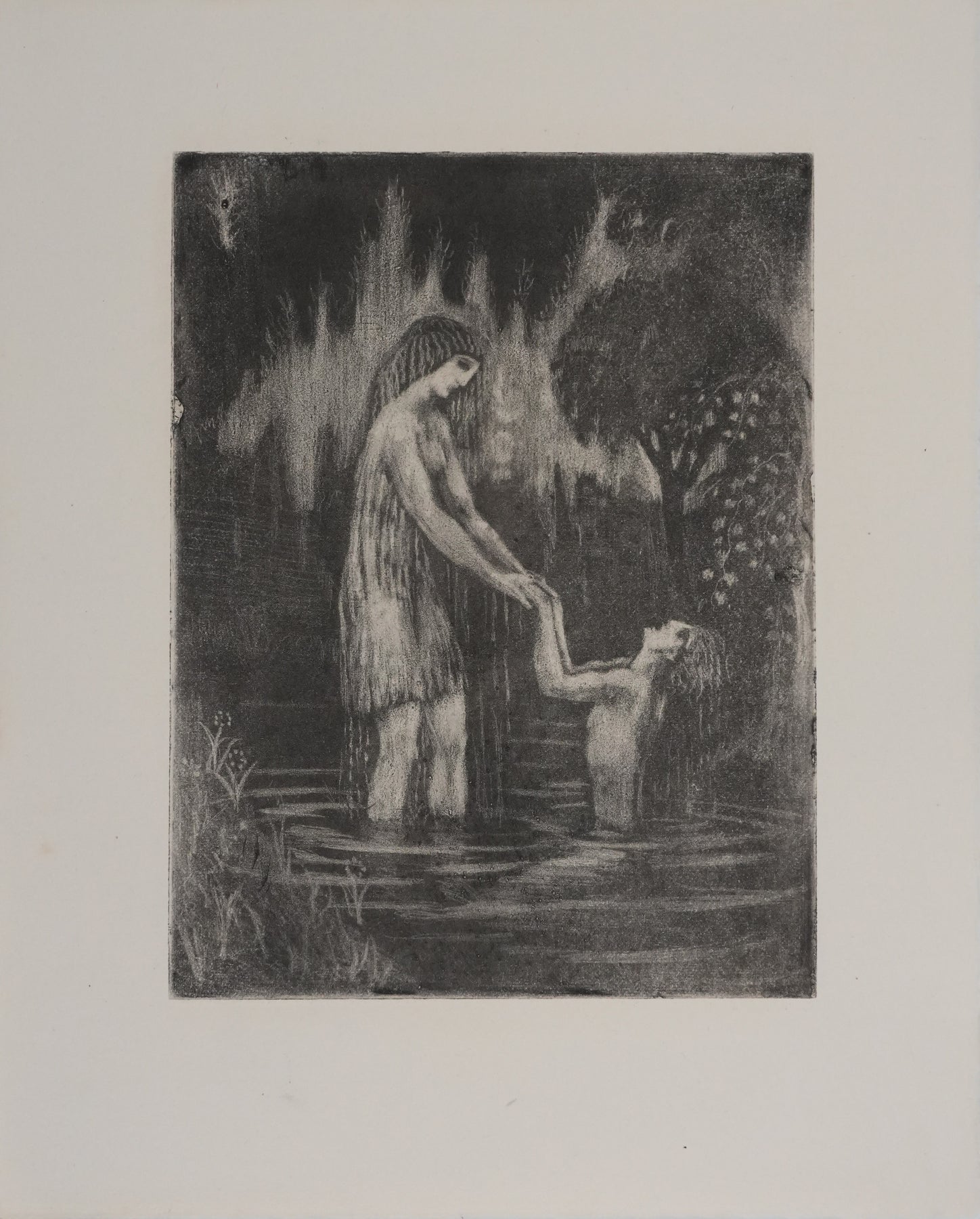 INFORMATION : Tirée spécialement pour la revue Bybliss. Fondée par le graveur Pierre Gusman, ancien collaborateur de Gustave Doré, la revue se consacre à l’art du livre et de l’estampe. Entre 1922 et 1931, Bybliss parut à raison de quatre numéros par an. Cette gravure fait partie de l'édition du printemps 1922.
