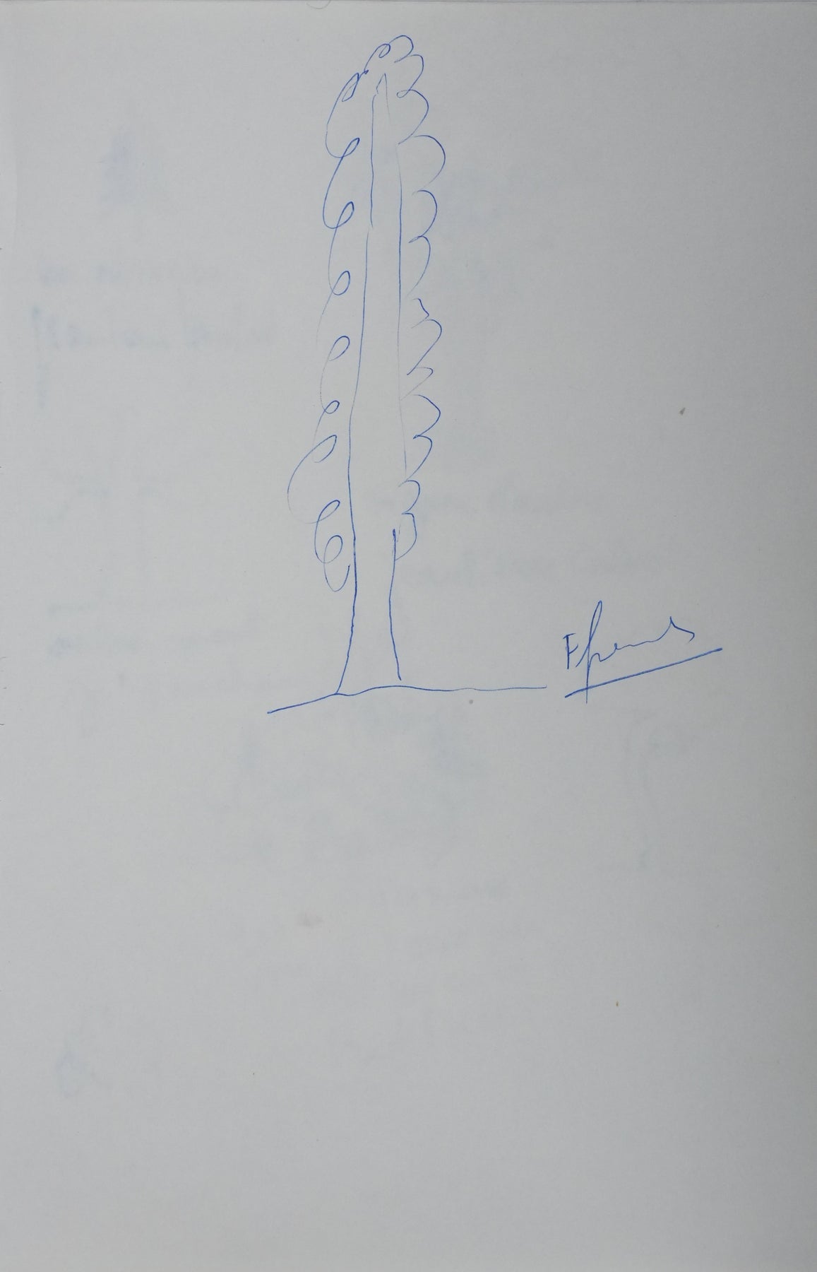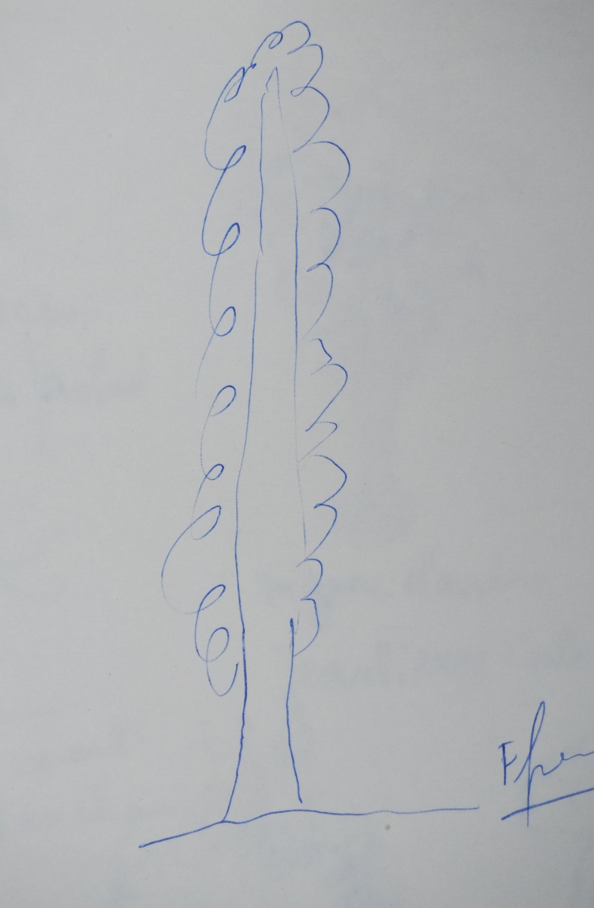PROVENANCE : Ce dessin provient de la collection personnelle de Pierre Lhoste. Journaliste de radio, Pierre Lhoste (1913-1984) demanda aux personnalités qu’il recevait de réaliser un autographe accompagné d'un dessin d’arbre, constituant ainsi un témoignage unique de ses entretiens.