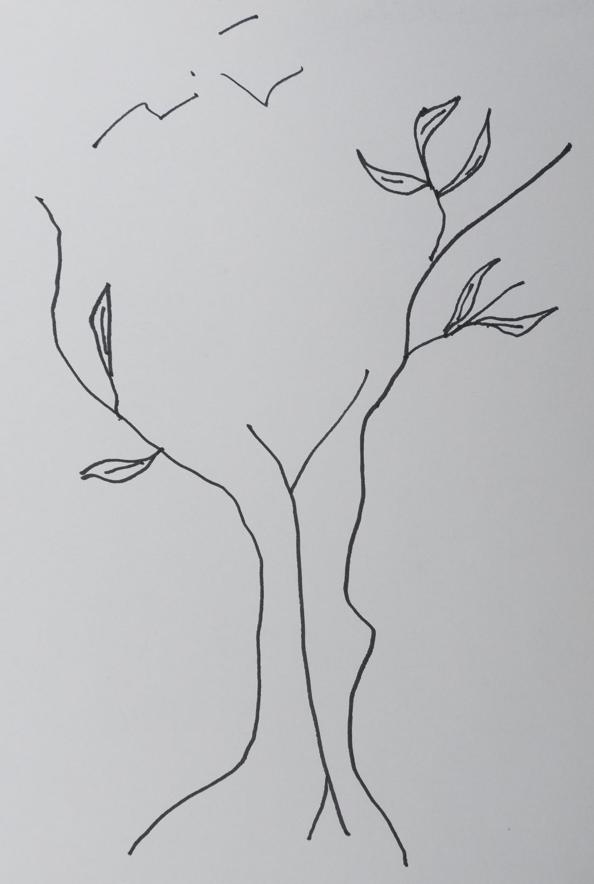 François BILLETDOUX : L'arbre en traits noirs, Autographe et dessin original signé