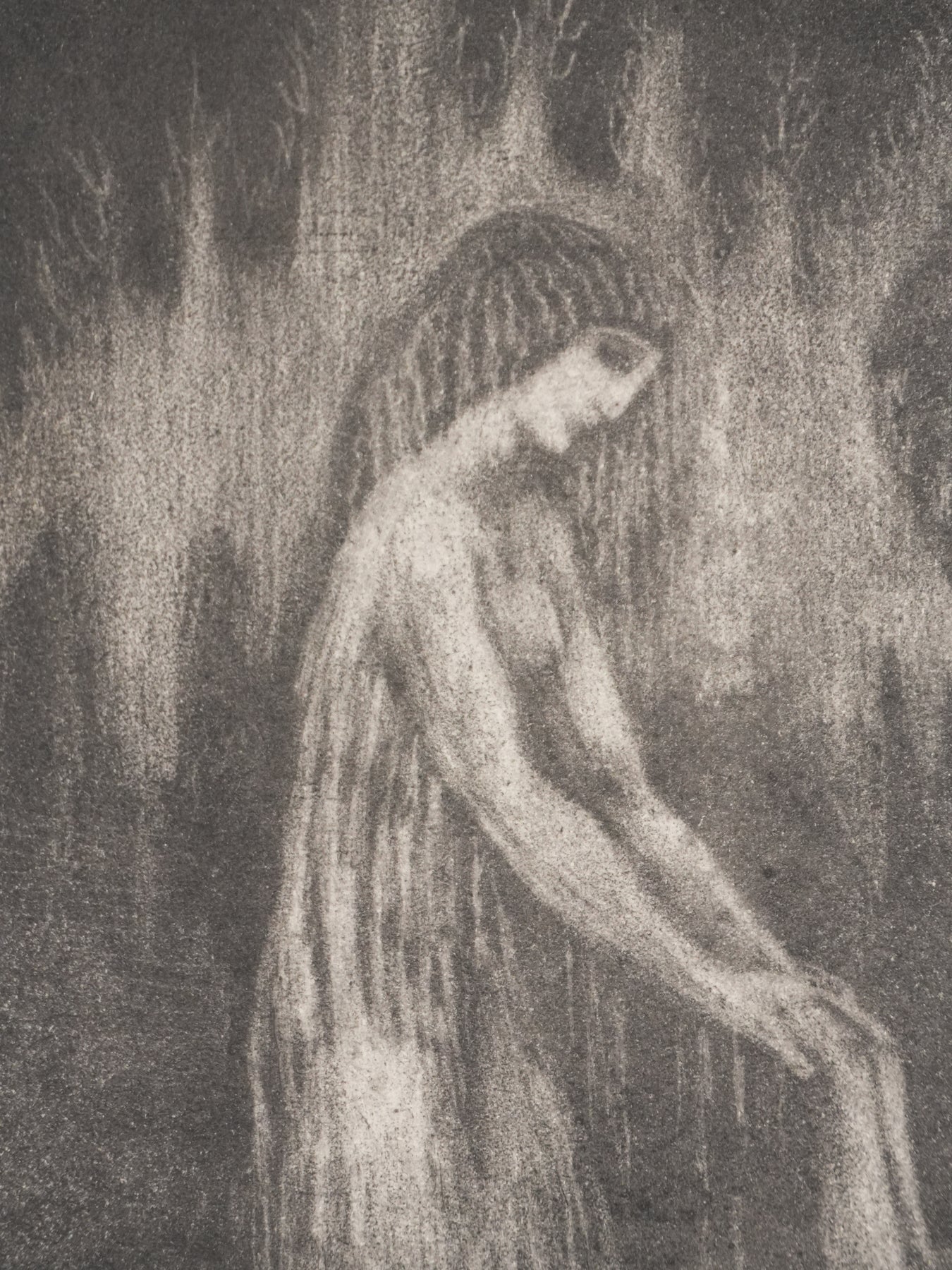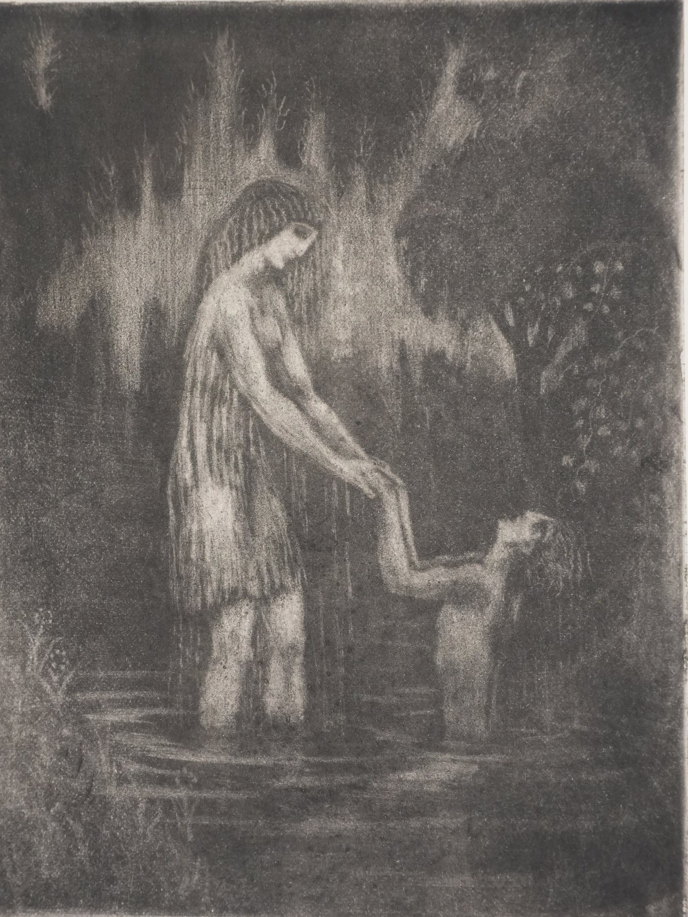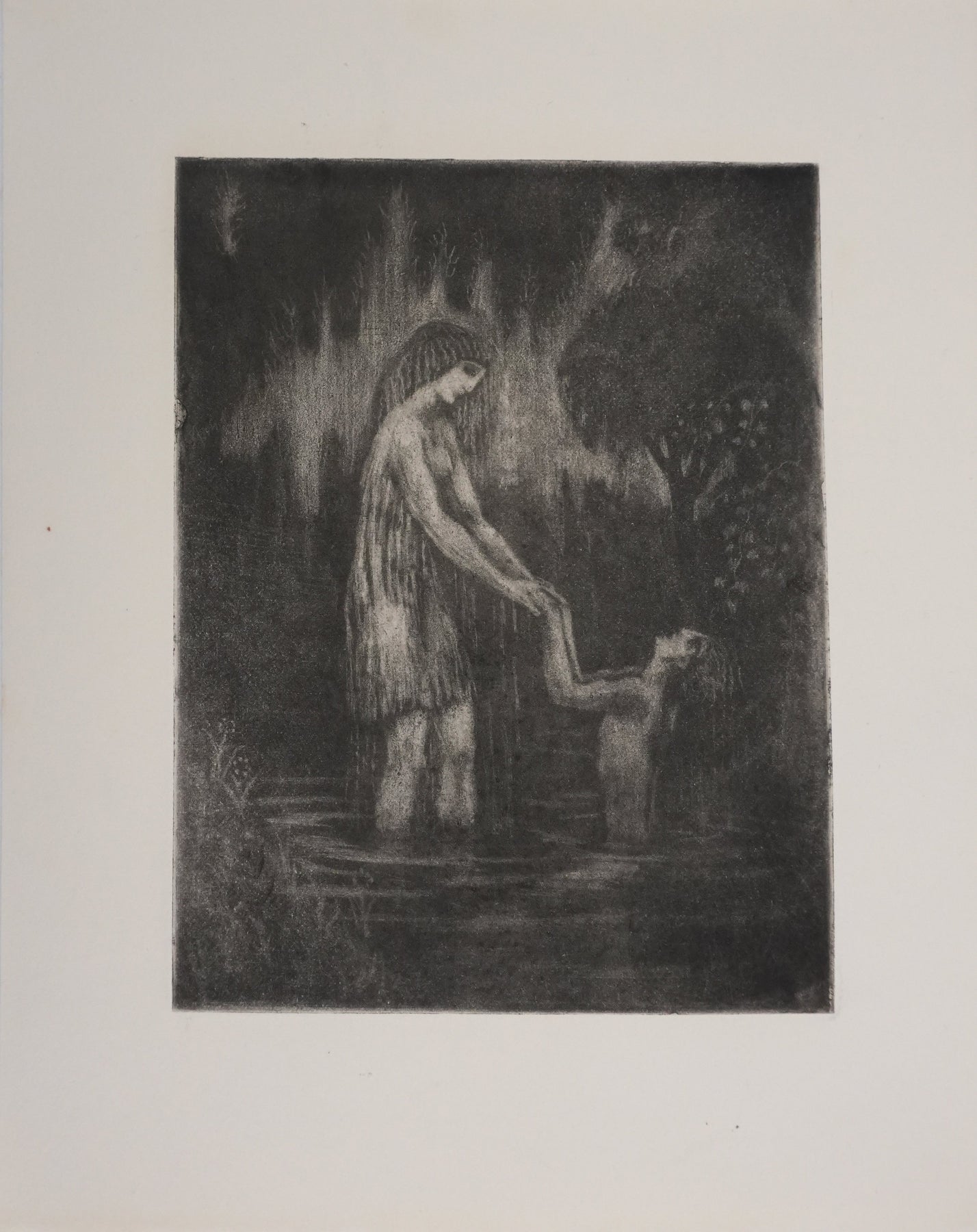 INFORMATION : Tirée spécialement pour la revue Bybliss. Fondée par le graveur Pierre Gusman, ancien collaborateur de Gustave Doré, la revue se consacre à l’art du livre et de l’estampe. Entre 1922 et 1931, Bybliss parut à raison de quatre numéros par an. Cette gravure fait partie de l'édition du printemps 1922.