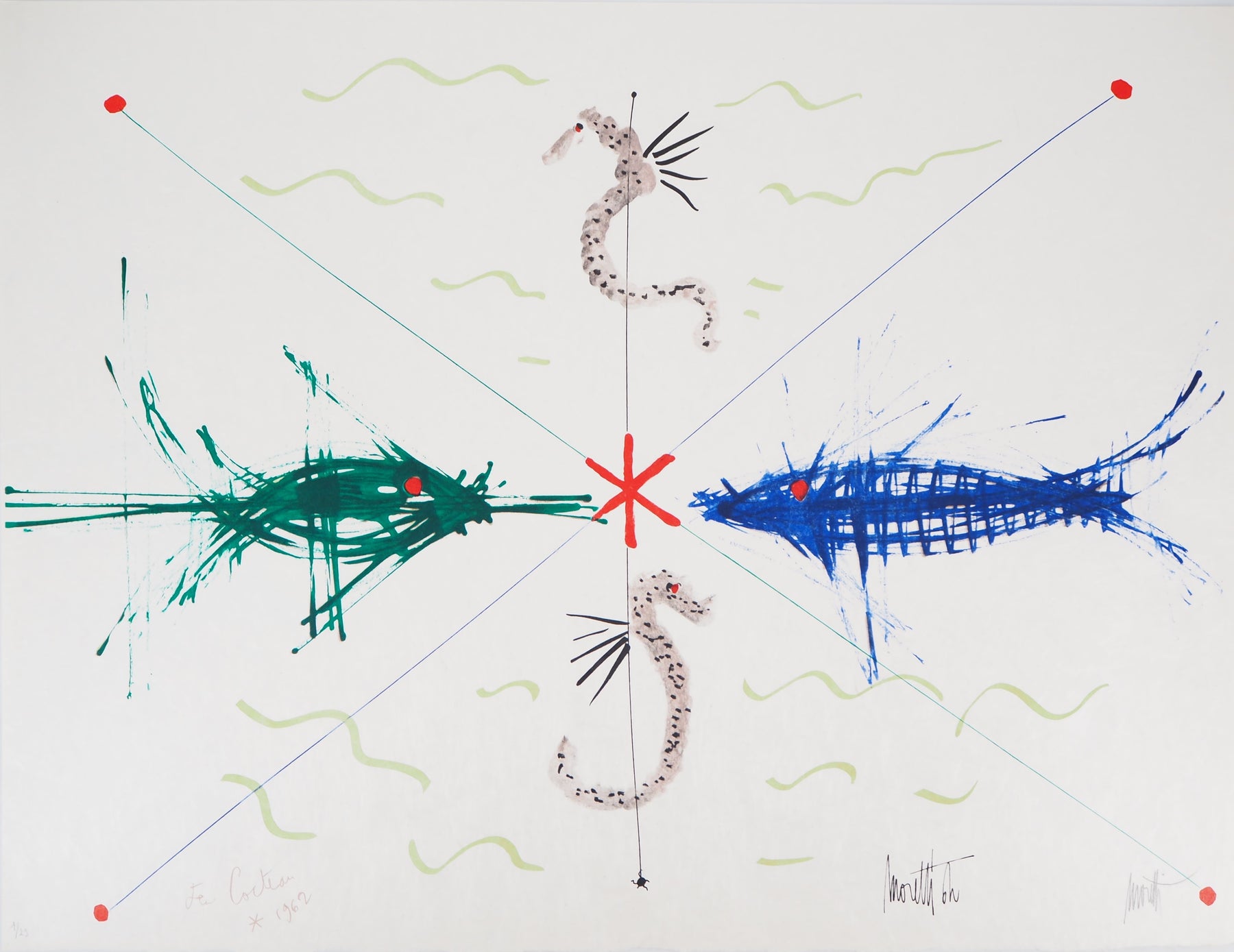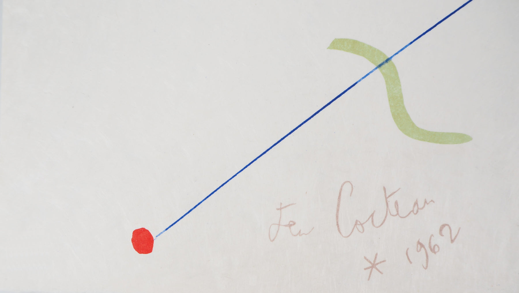 INFORMATION: Diese Lithografie stammt aus einer Serie mit dem Titel „Das Wassermannzeitalter“. Die 1962 begonnene Ausgabe wurde erst 1973 anlässlich des 10. Todestages von Jean Cocteau fertiggestellt, der vor Abschluss des Drucks verstarb.