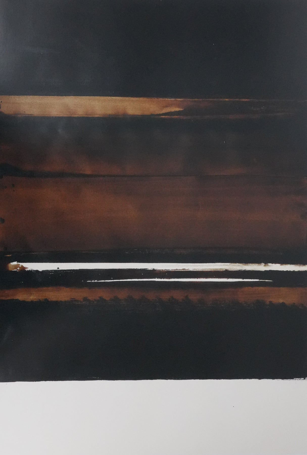 INFORMATION : Affiche originale créée pour l'exposition "Soulages, une autre lumière. Peintures sur papier" au musée du Luxembourg, d'après une oeuvre faisant partie de la collection de Colette Soulages, épouse de l'artiste.