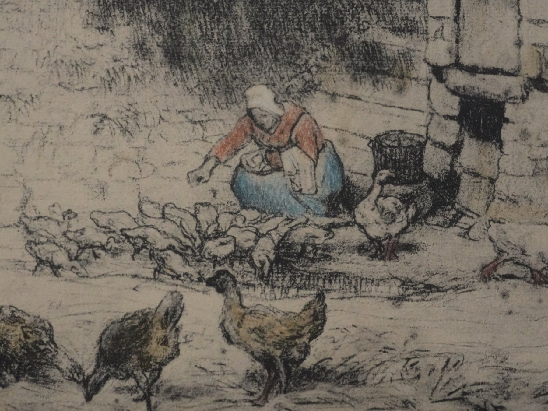 Lithographie réhaussée au pochoir d'après un dessin