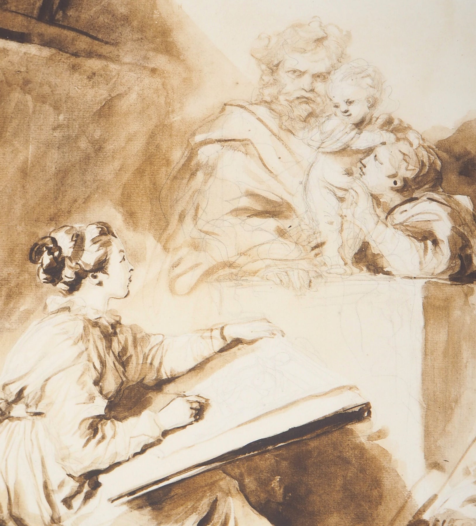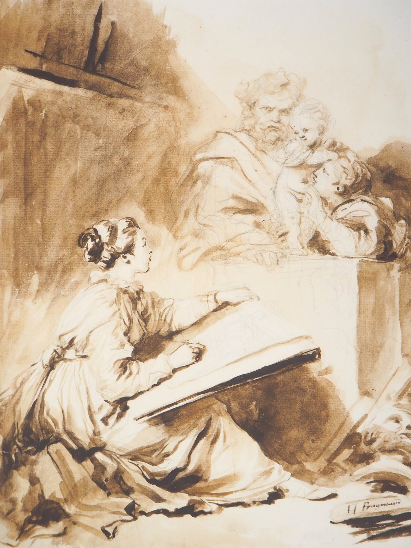 Jean-Honoré FRAGONARD : L'élève dessinant, Lithographie signée