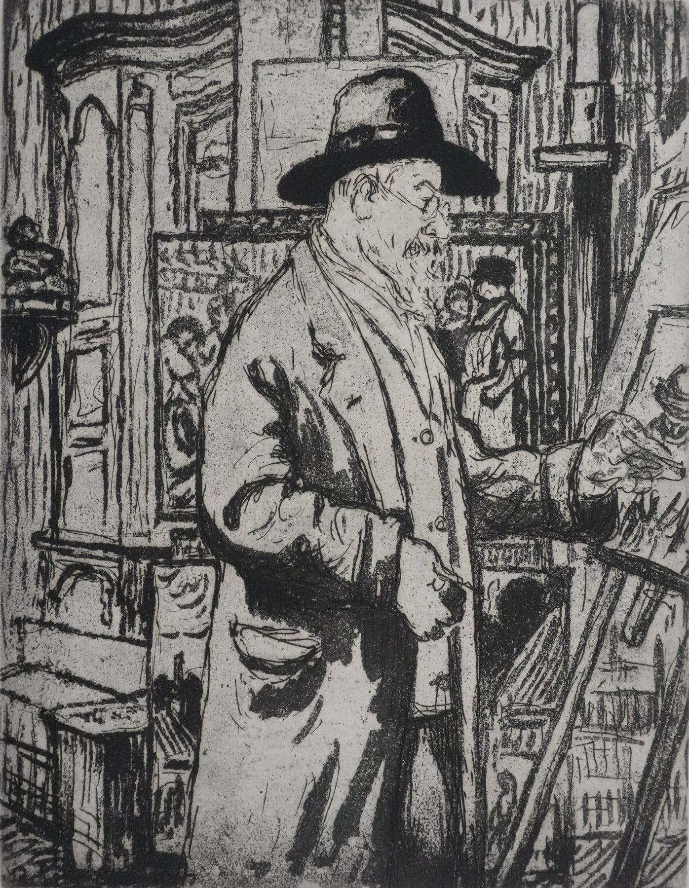 Joseph-Victor ROUX-CHAMPION : Portrait de Maximilien Luce peignant, Gravure originale (vue générale) - Crédit photo : Galerie Art.Paris