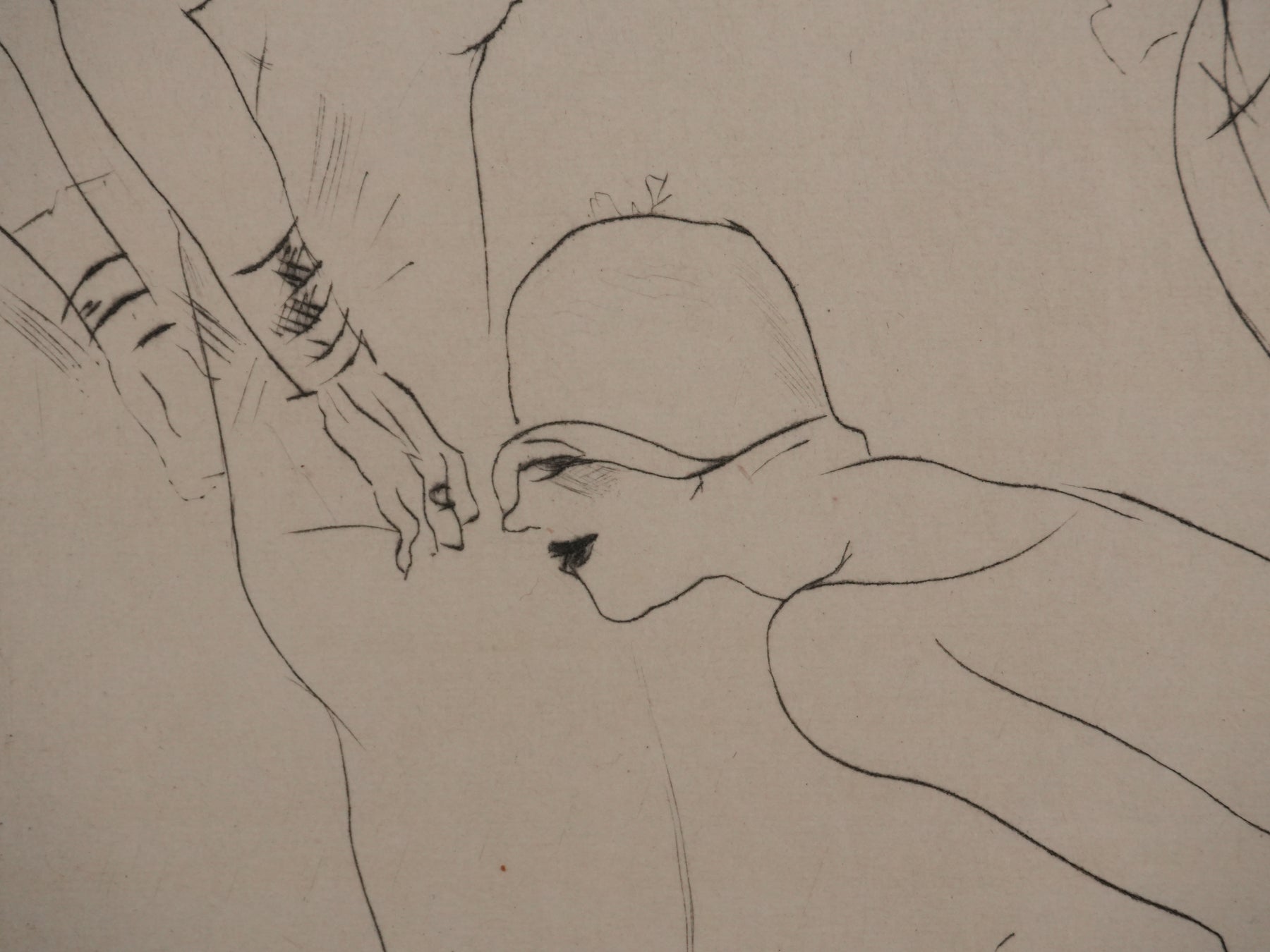 INFORMATION : Sonnet provenant du recueil "Six Sonnets du XVIe". Tirée spécialement pour la revue Bybliss. Fondée par le graveur Pierre Gusman, ancien collaborateur de Gustave Doré, la revue se consacre à l’art du livre et de l’estampe. Entre 1922 et 1931, Bybliss parut à raison de quatre numéros par an. Cette gravure fait partie de l'édition de l'automne1925.