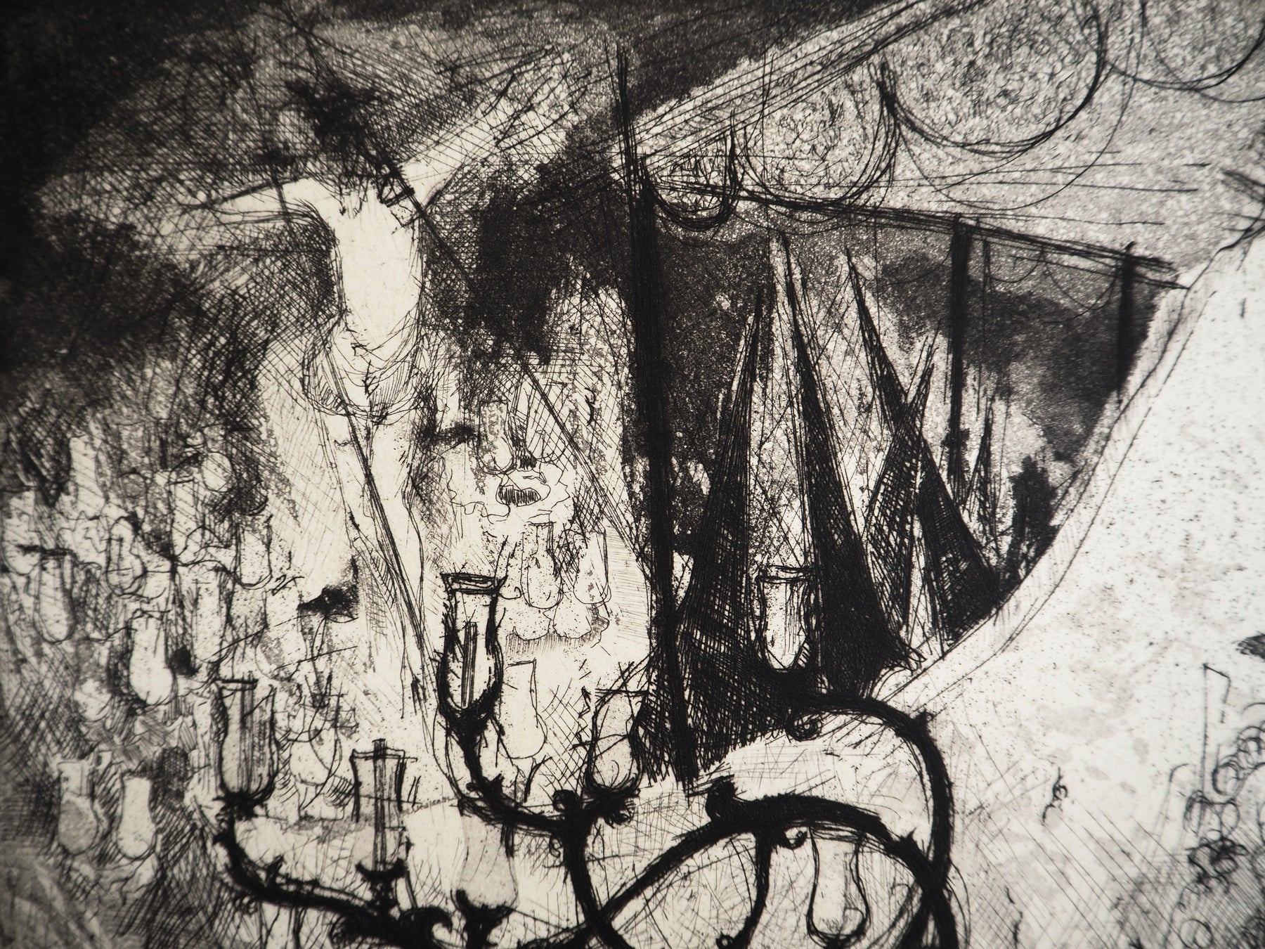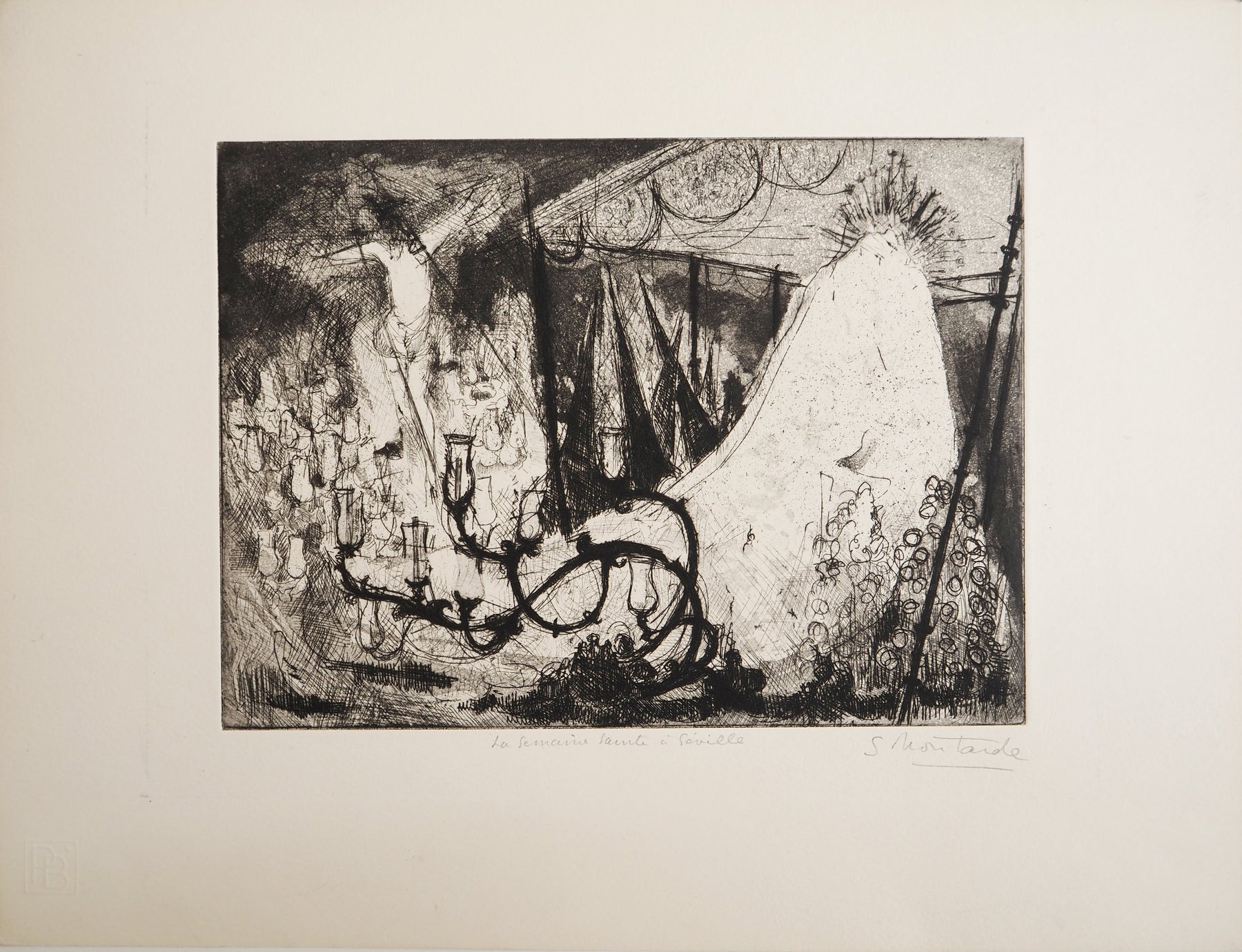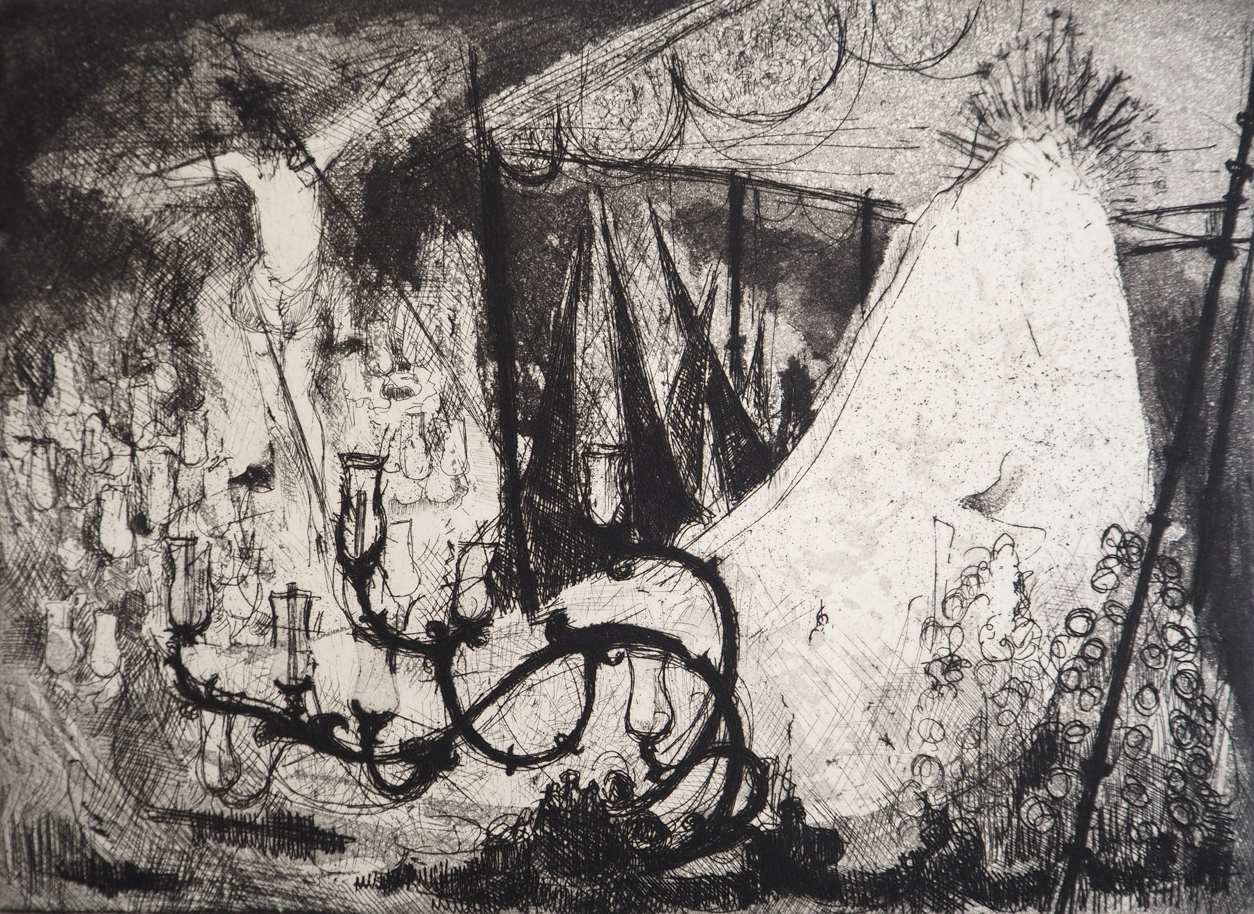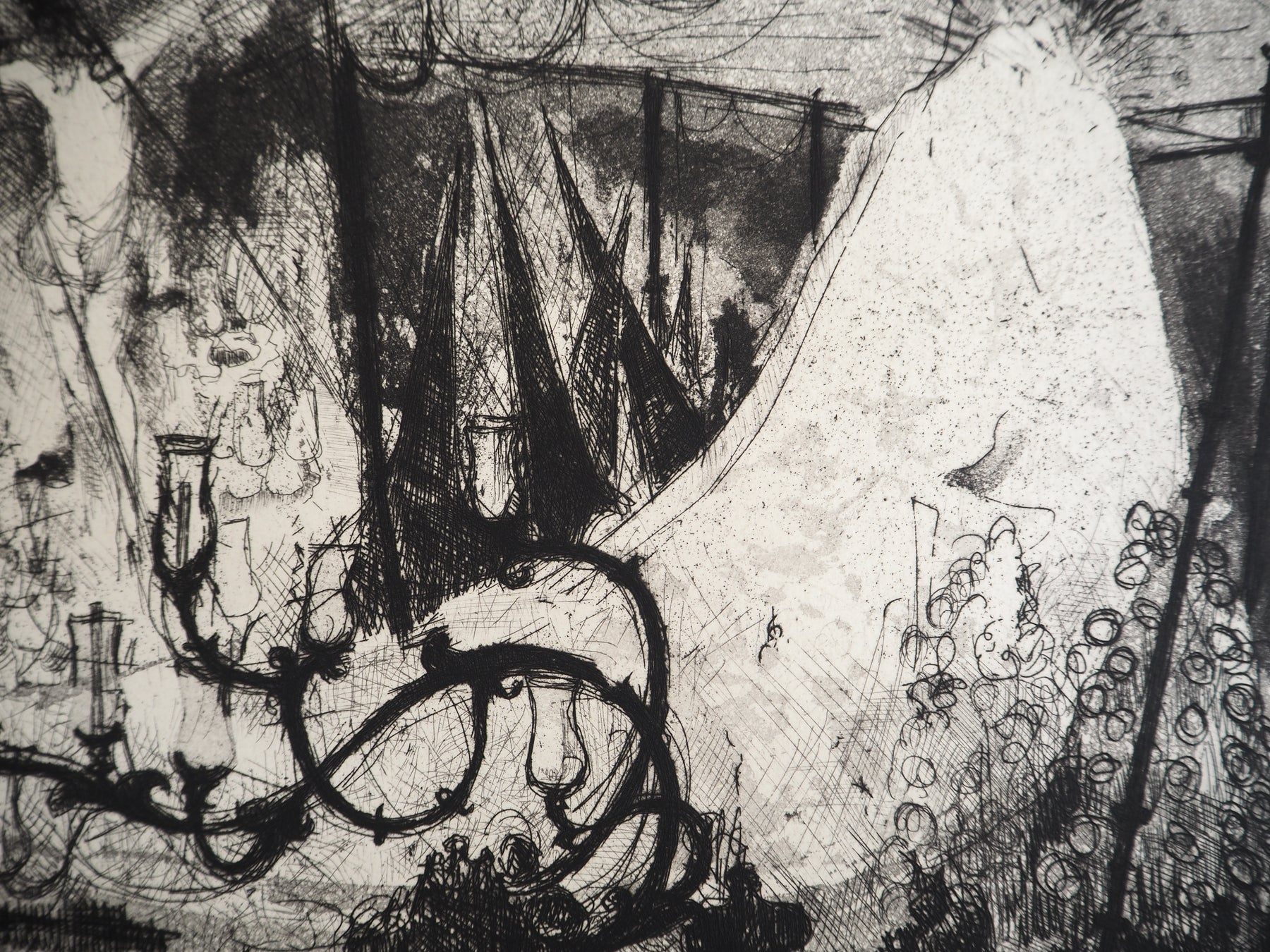S. MOUTARDE : Espagne, la semaine Sainte à Séville, Gravure originale signée