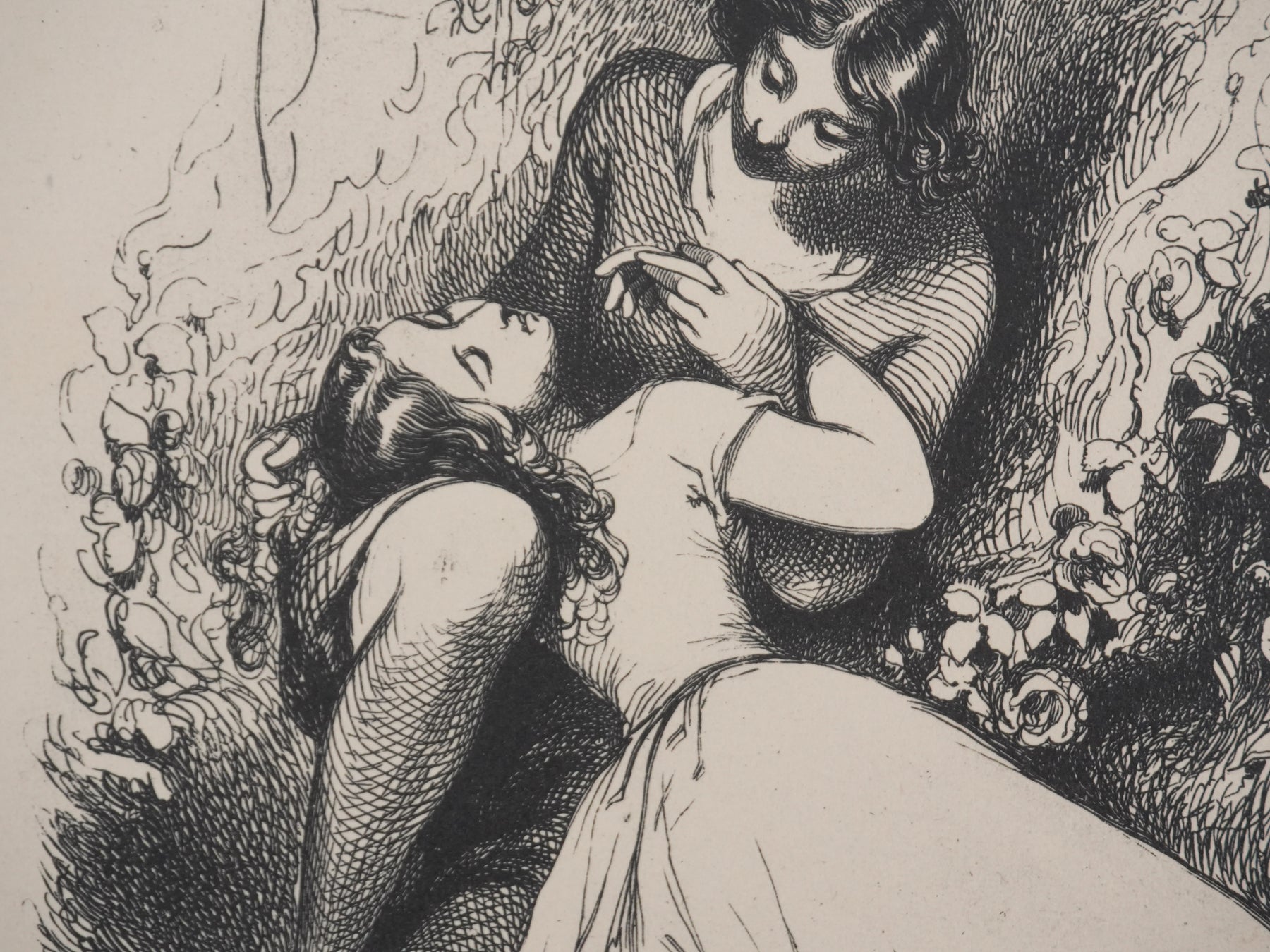 INFORMATION : Tirage réalisé à partir du bois originale spécialement pour la revue Bybliss. Fondée par le graveur Pierre Gusman, ancien collaborateur de Gustave Doré, la revue se consacre à l’art du livre et de l’estampe. Entre 1922 et 1931, Bybliss parut à raison de quatre numéros par an. Cette gravure fait partie de l'édition de l'été 1925.