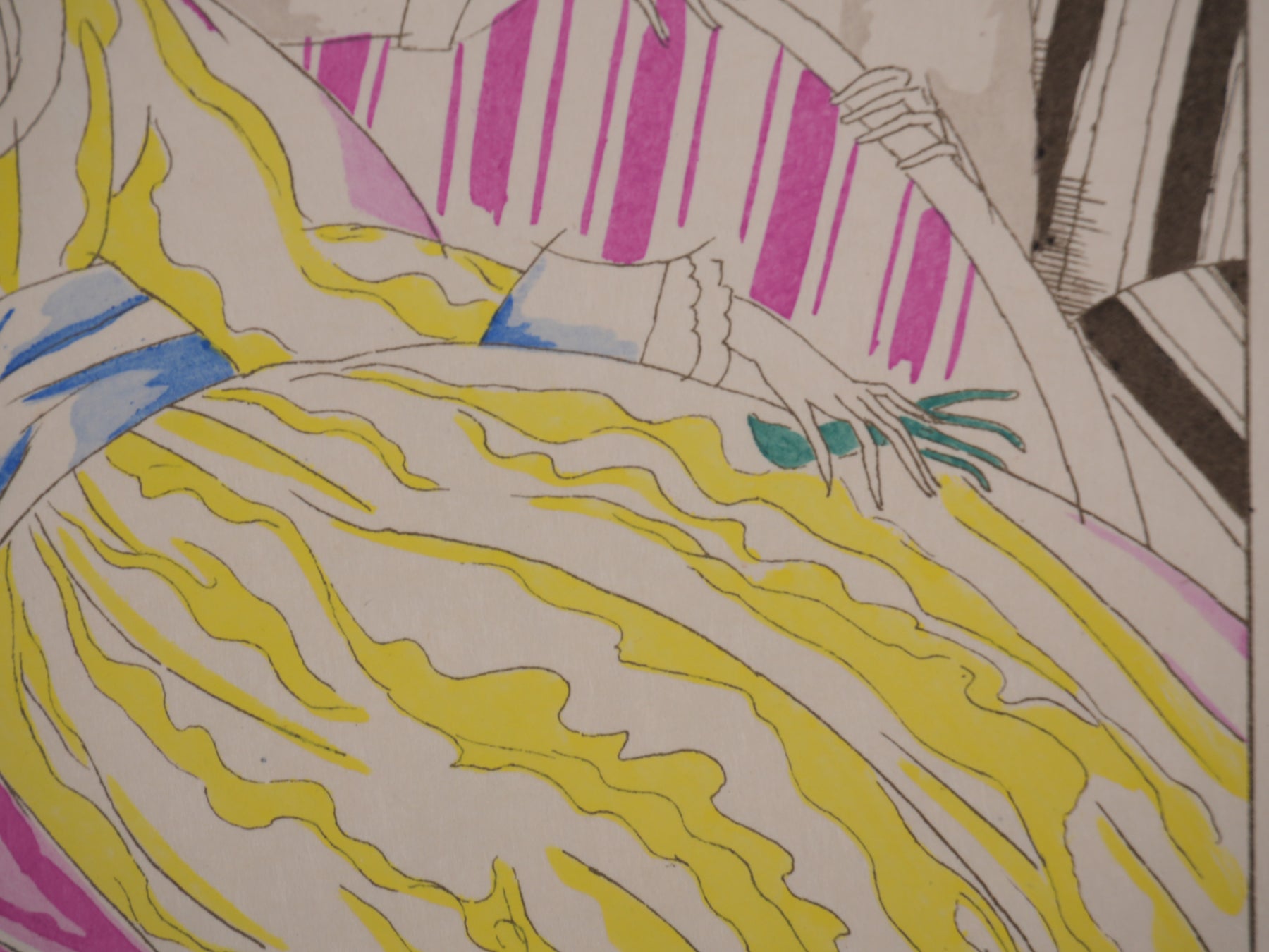Gravure originale réhaussée au pochoir