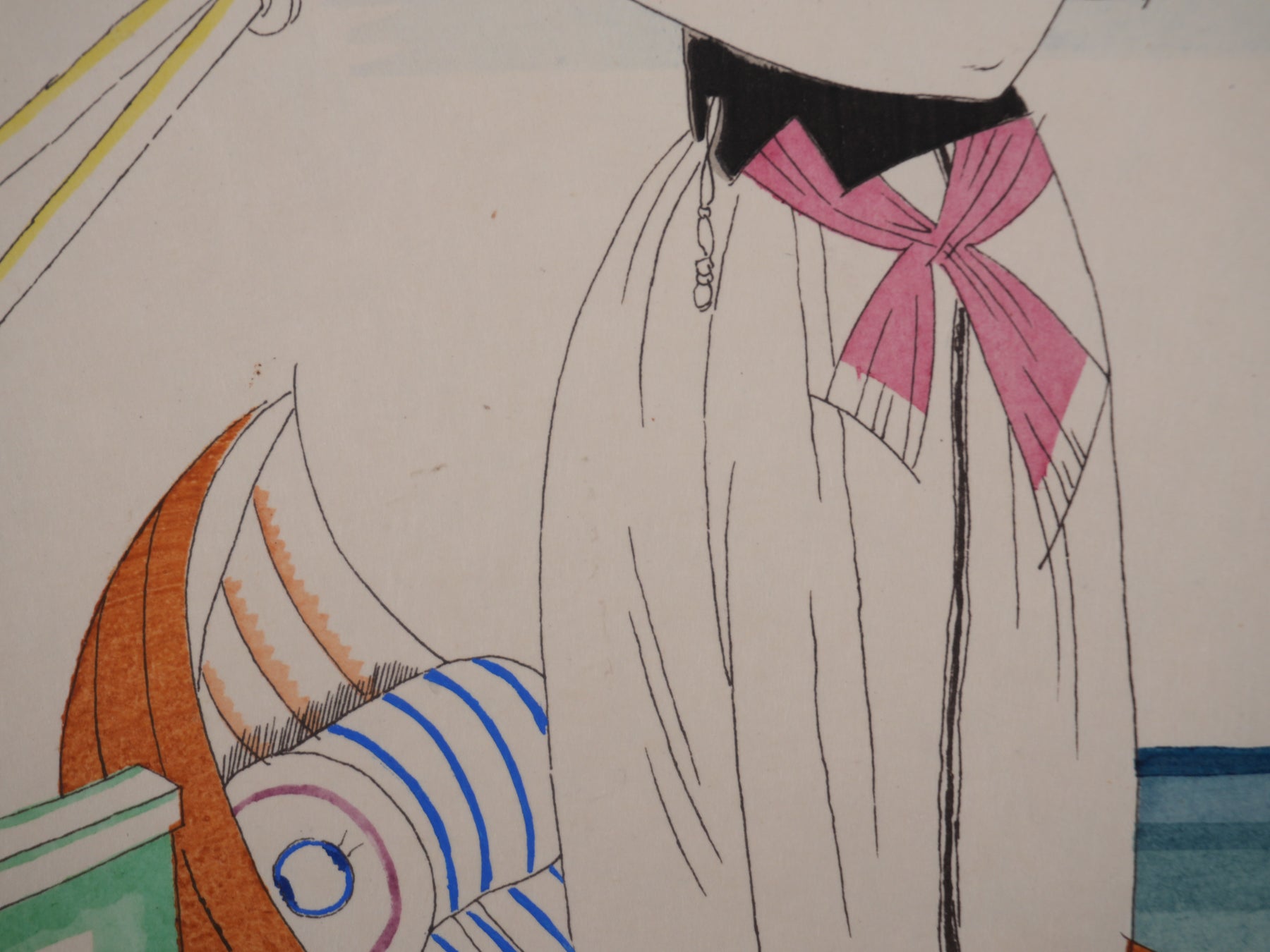 Gravure originale réhaussée au pochoir