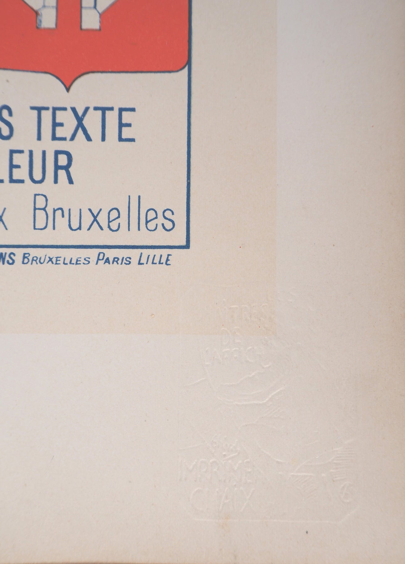 The leaflet bears the publisher's stamp and the lithograph is also authenticated by the dry stamp of the publisher, L'Imprimerie Chaix.