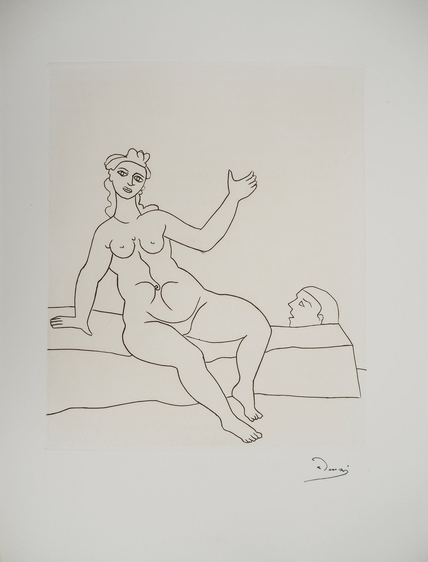 André DERAIN: Large nude and hidden lover, Original signed engraving