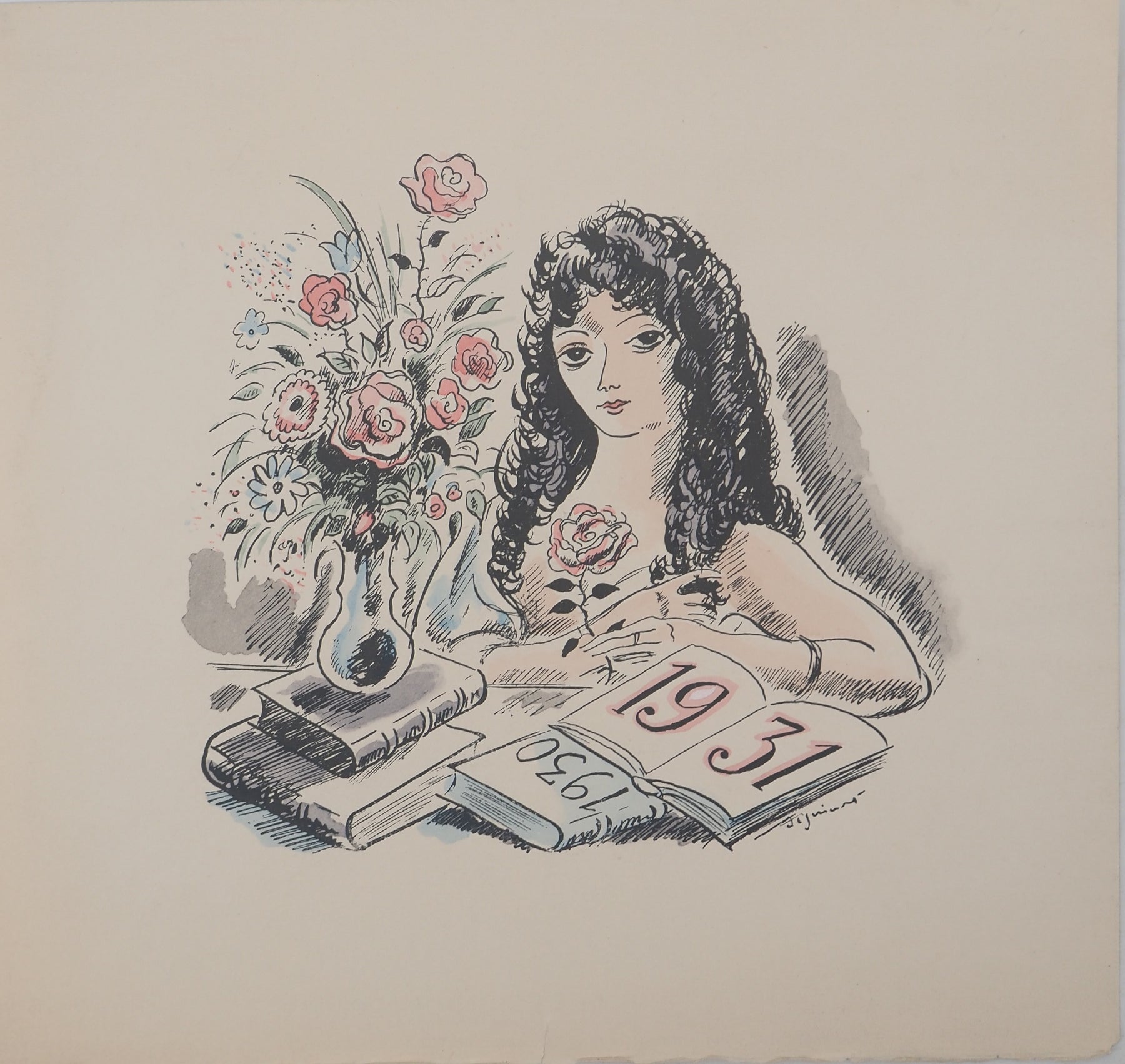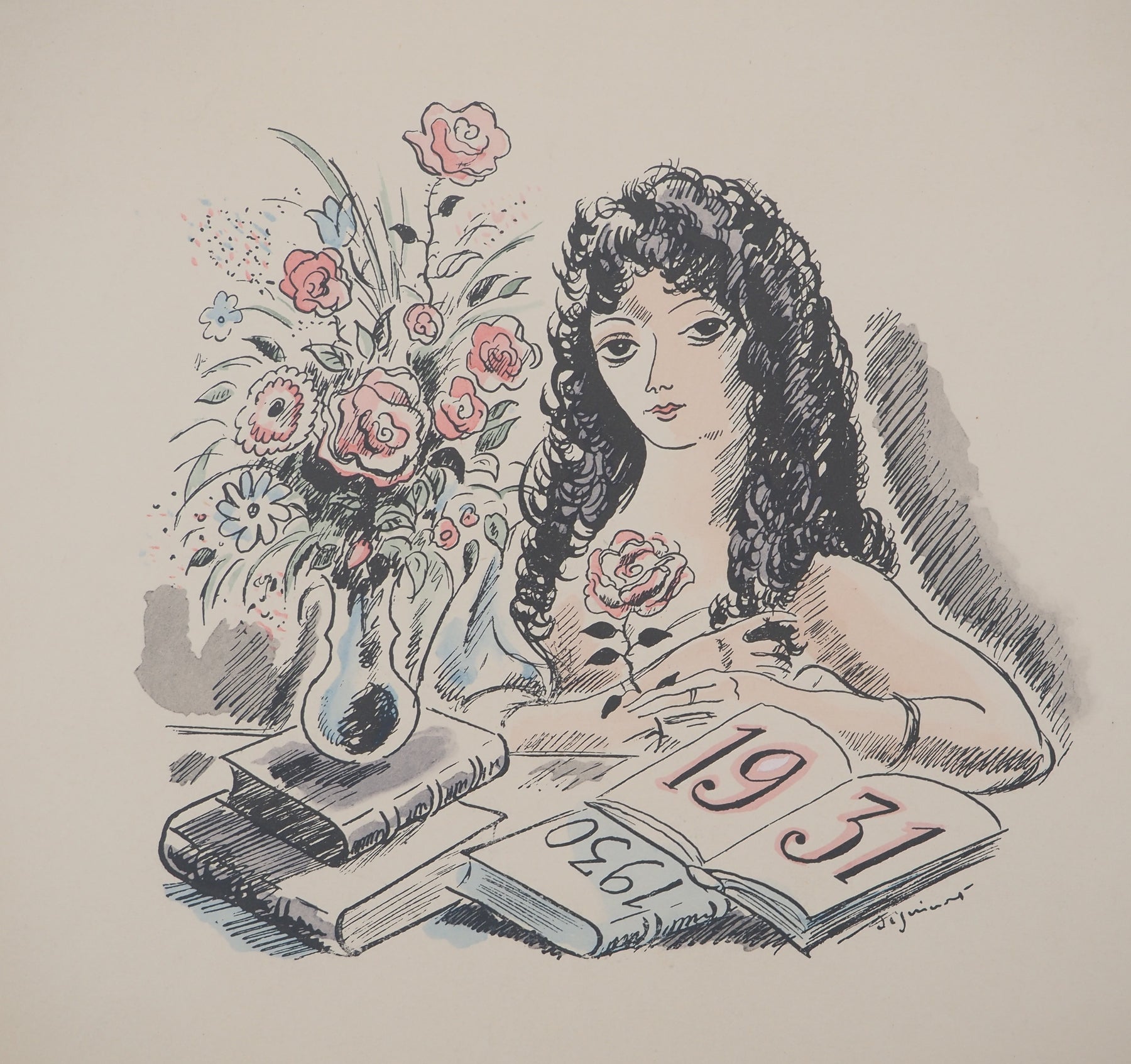 A superb watercolor by this great painter and illustrator, known for his seductive women, his illustrations of Parisian life, and his vibrant bouquets of flowers. A renowned painter