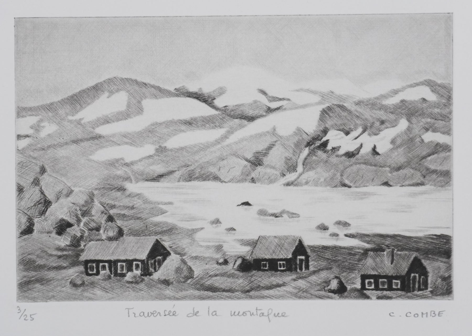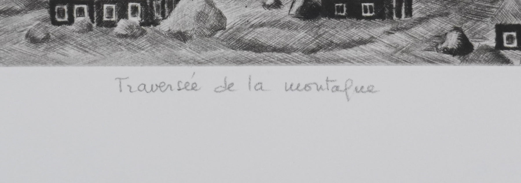 Camille COMBE : Traversée de la montagne, Gravure originale signée