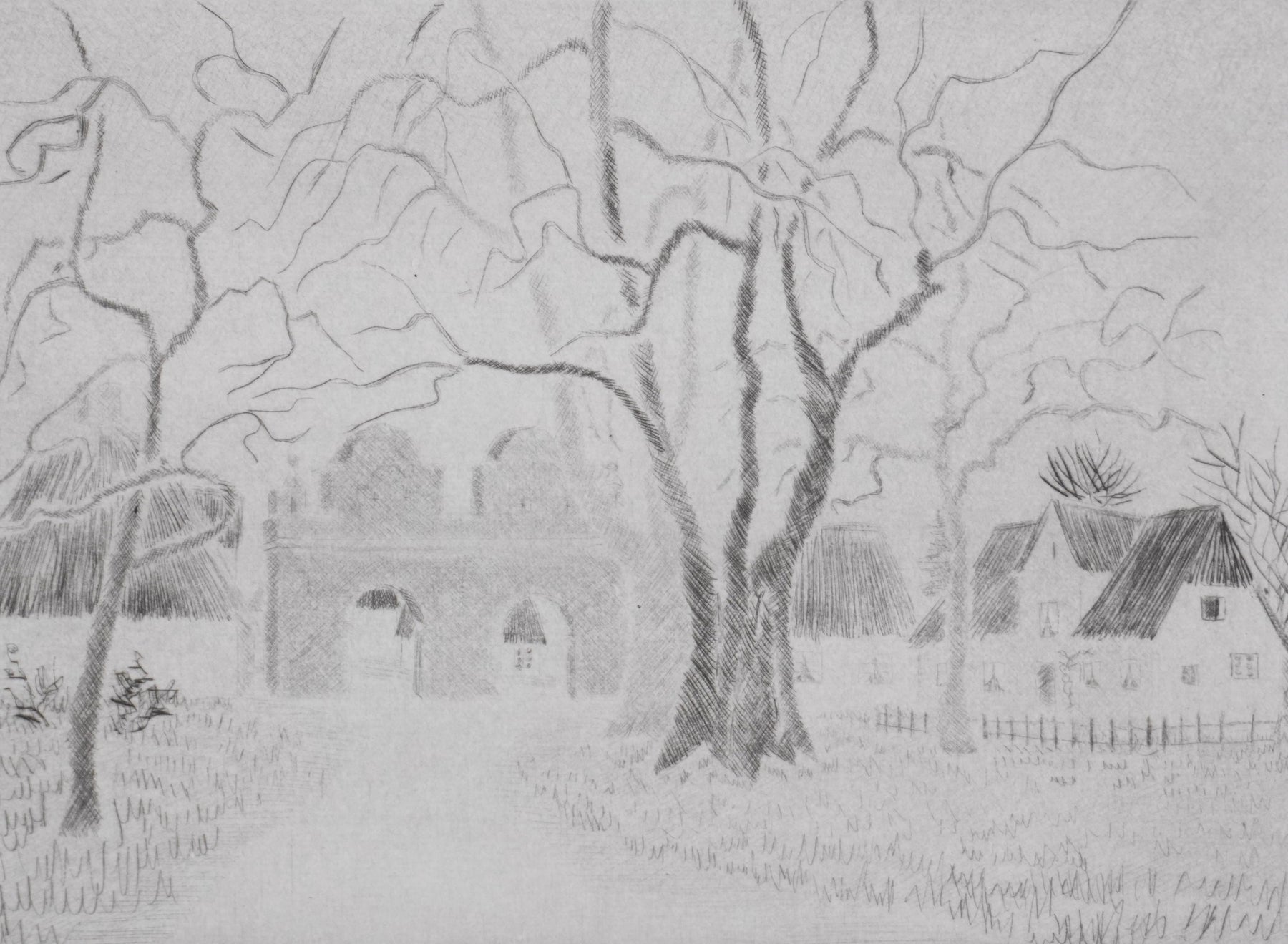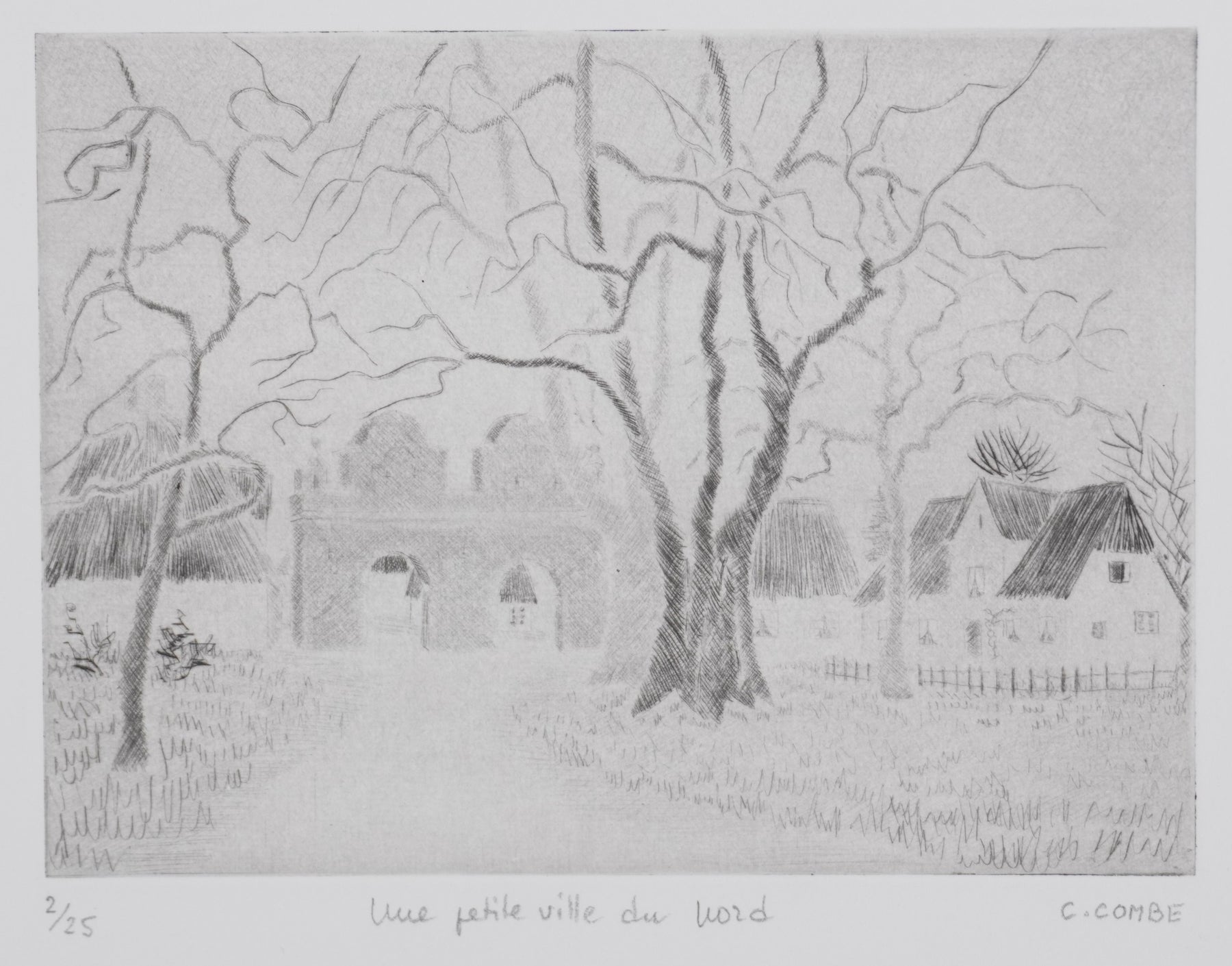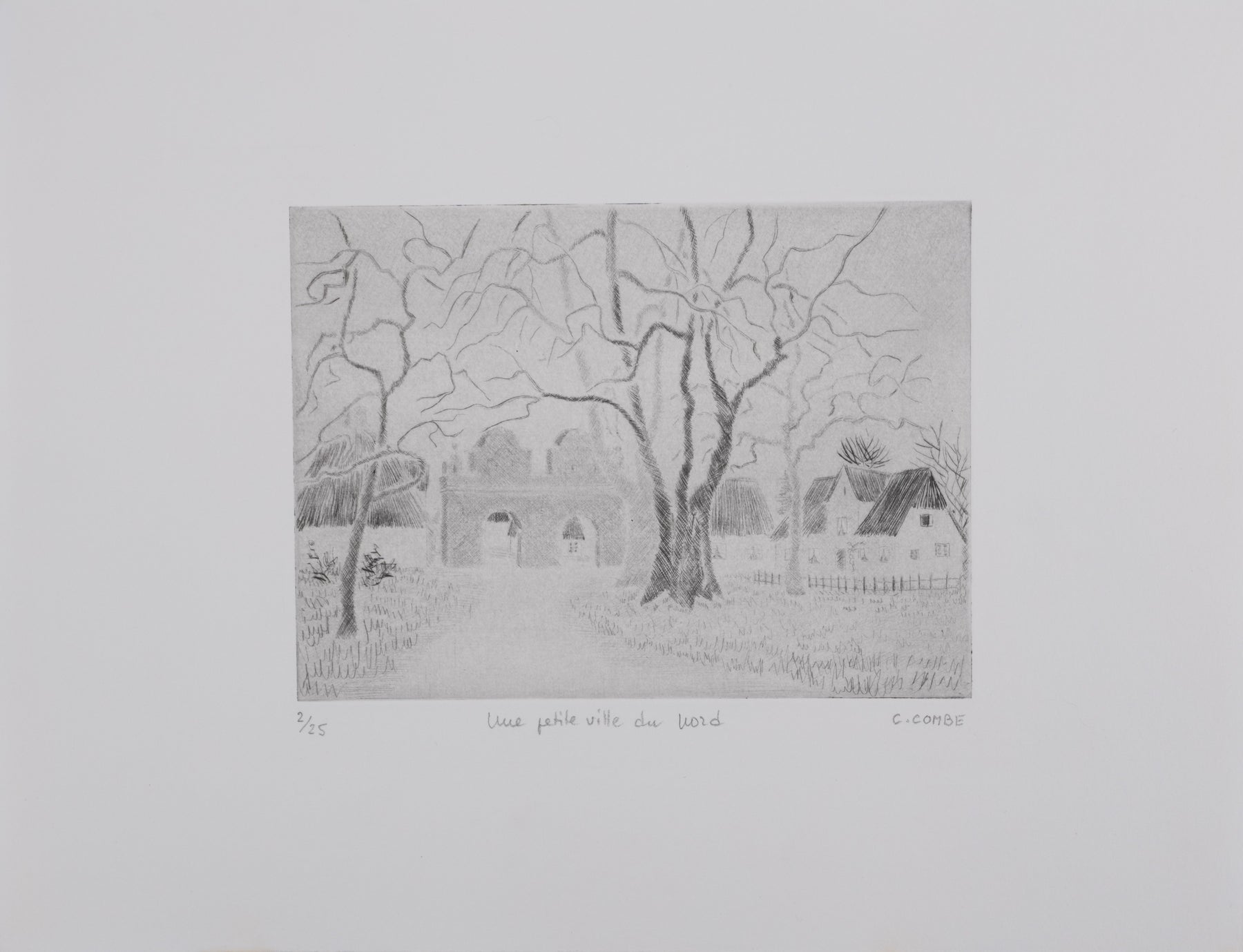 Camille COMBE : Une petite ville au Nord, Gravure originale signée