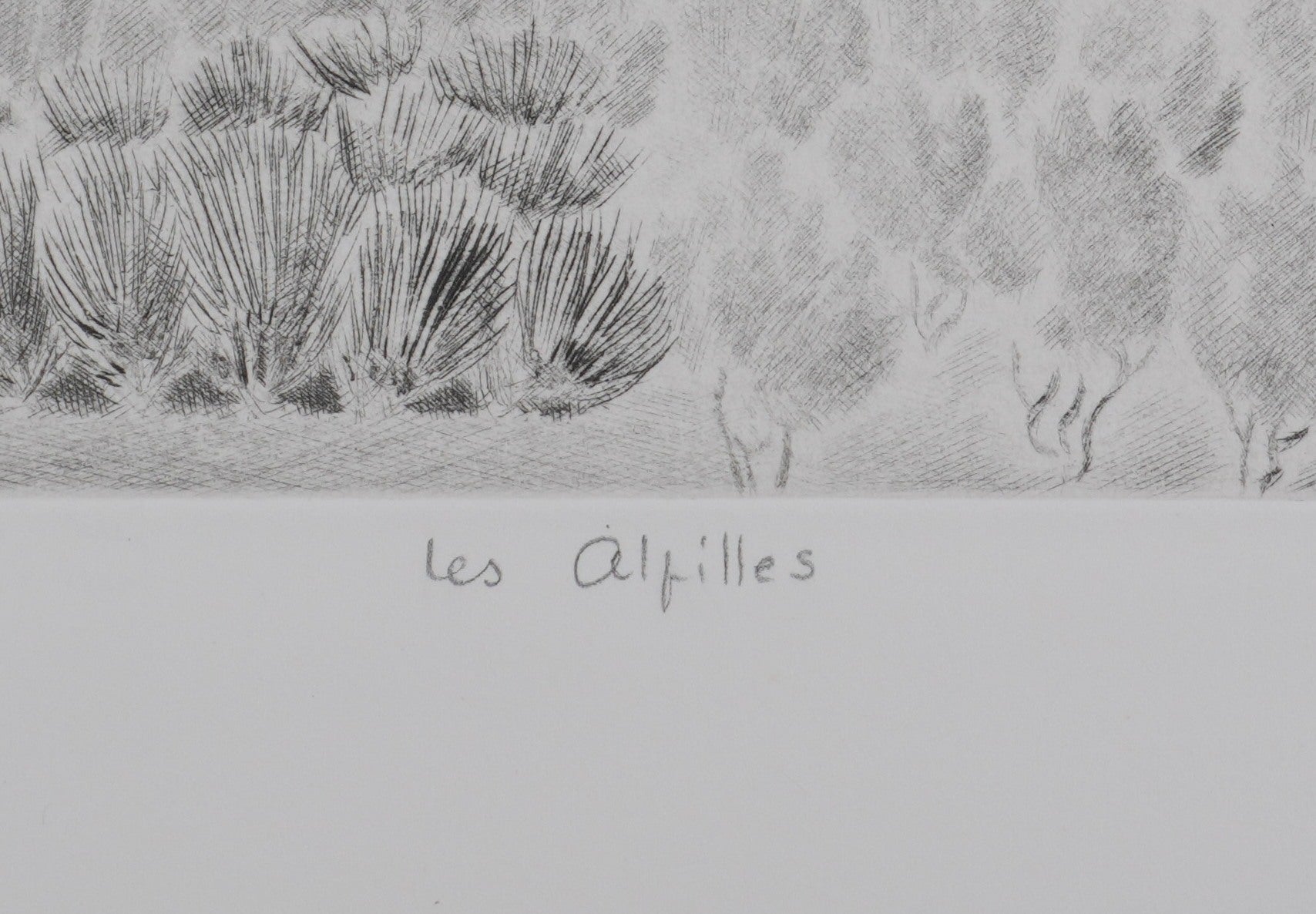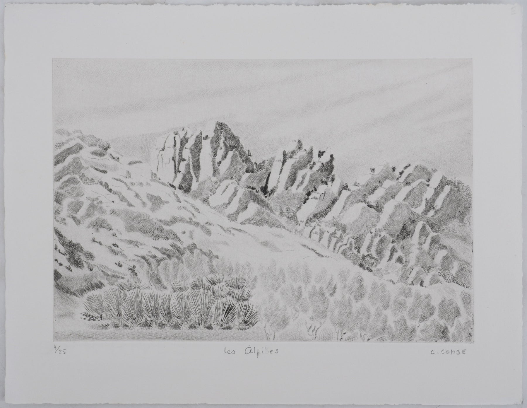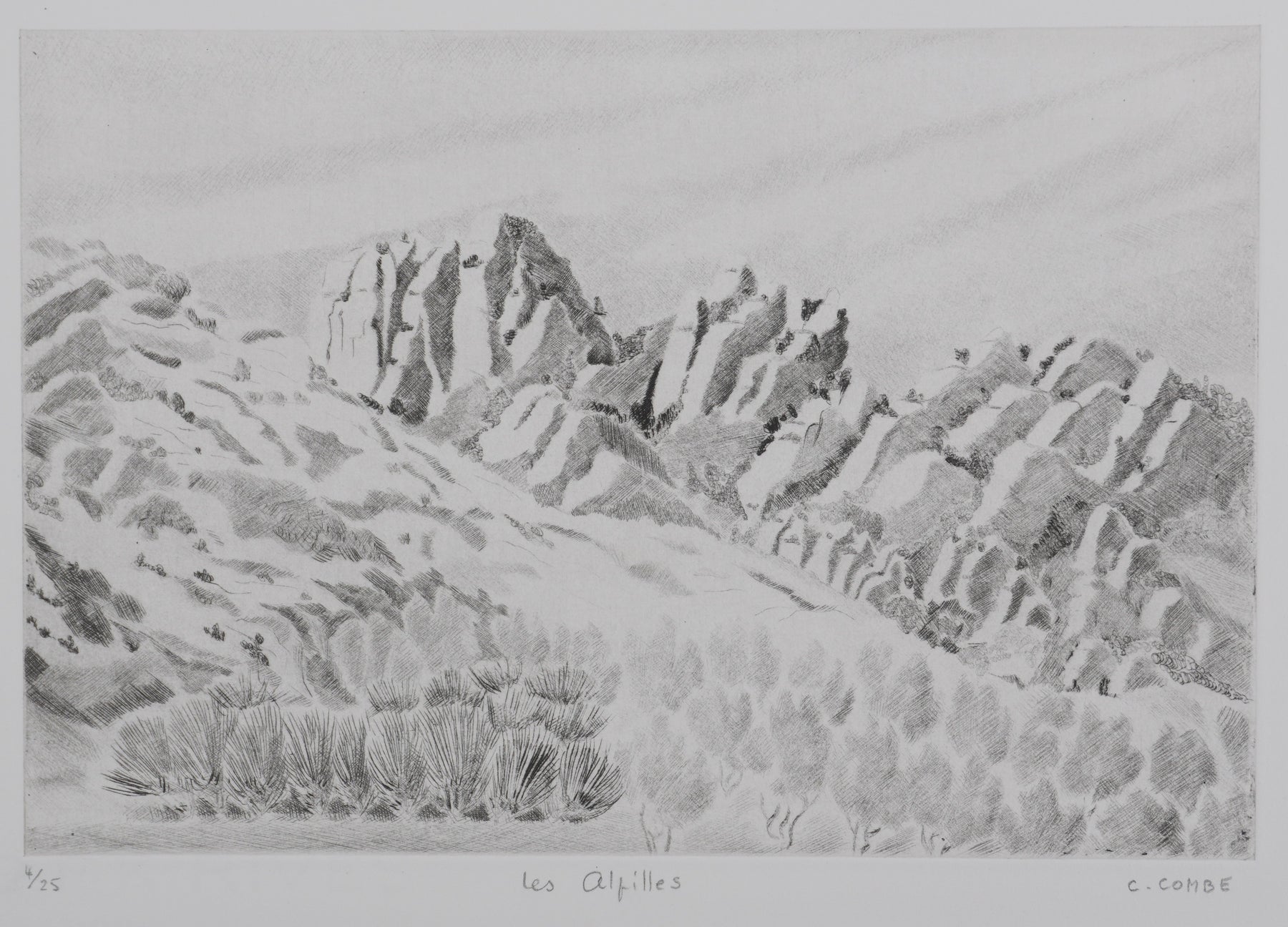 Camille COMBE : Les Alpilles, Gravure originale signée
