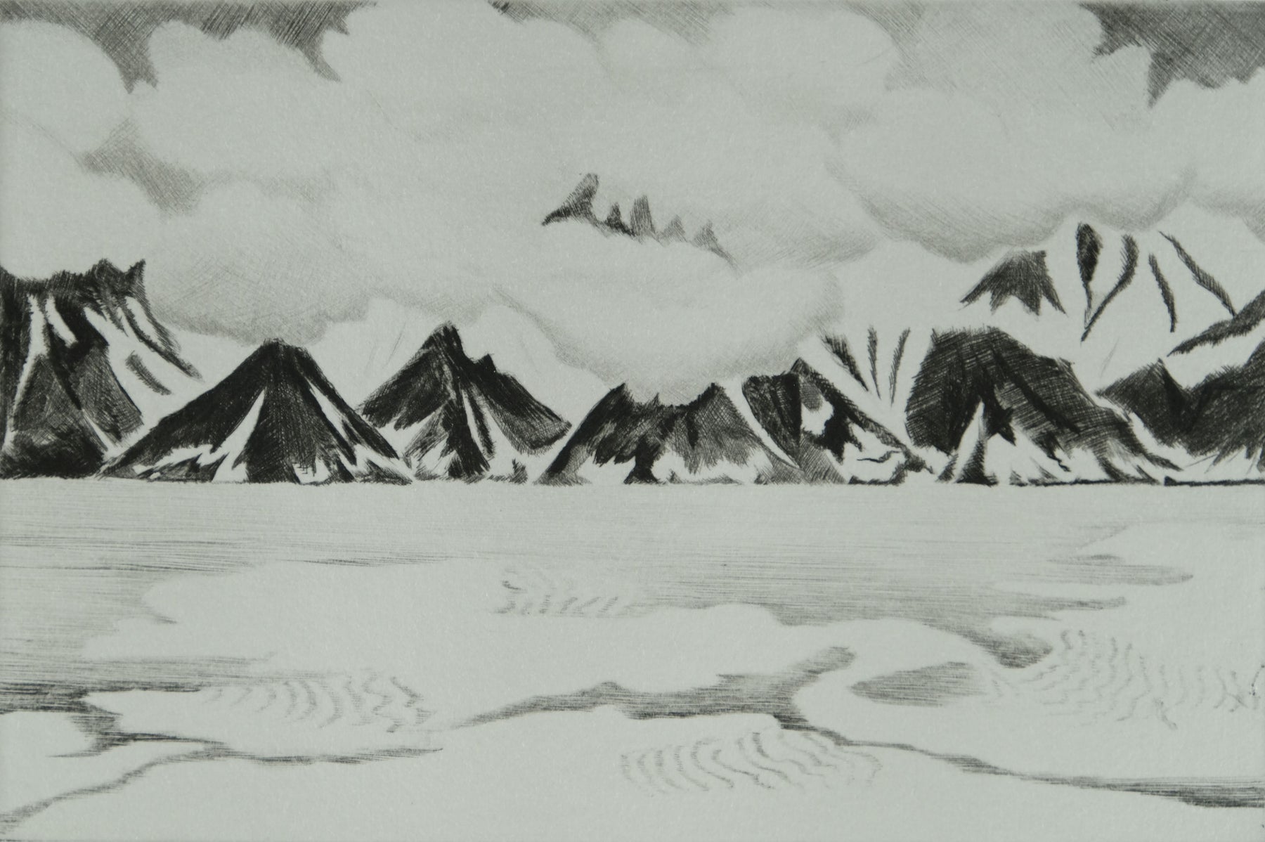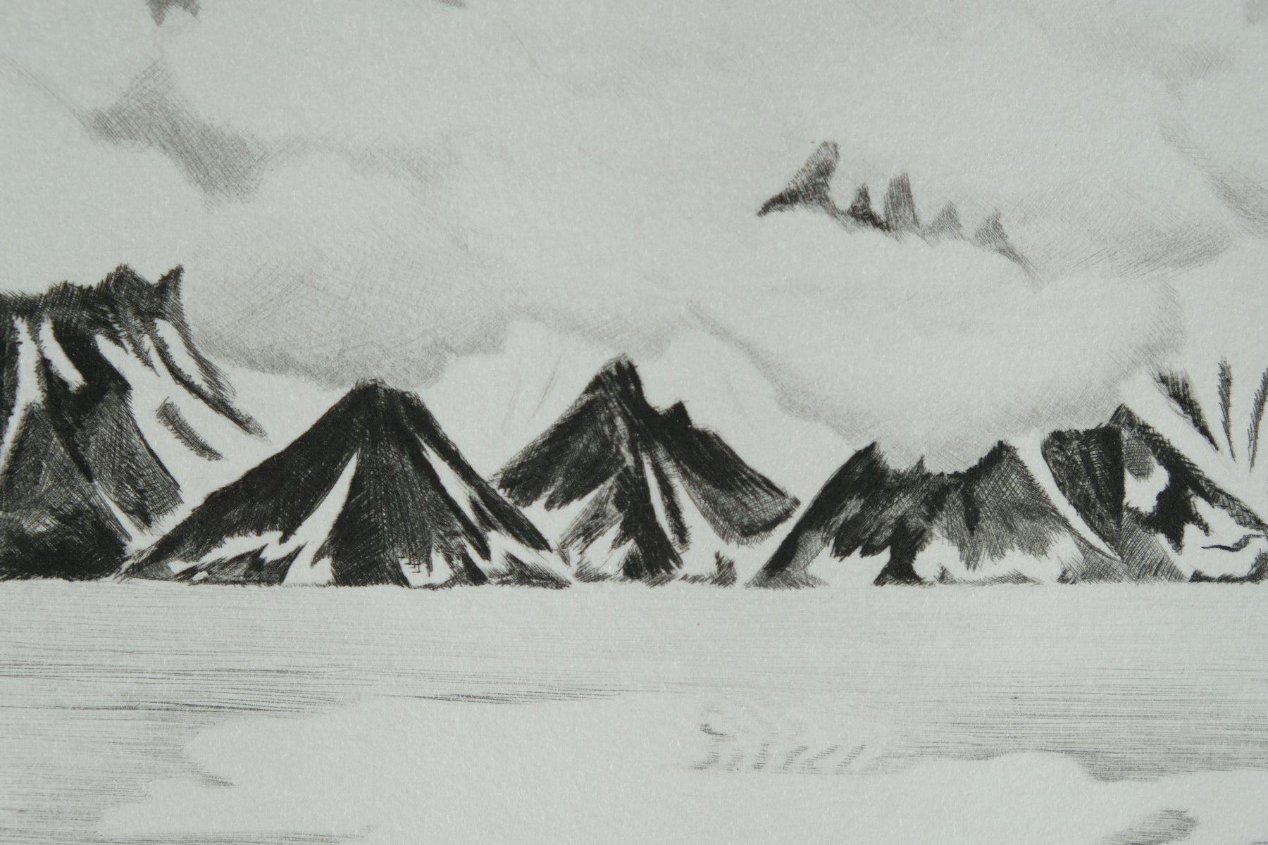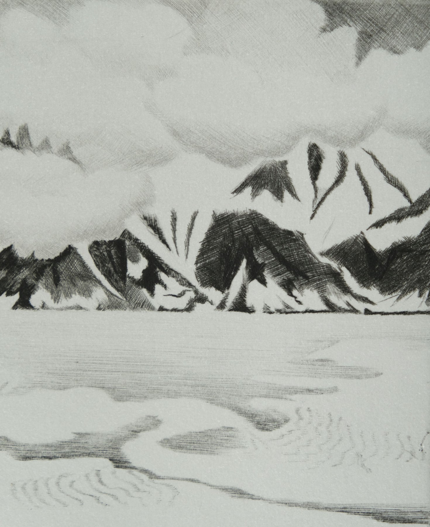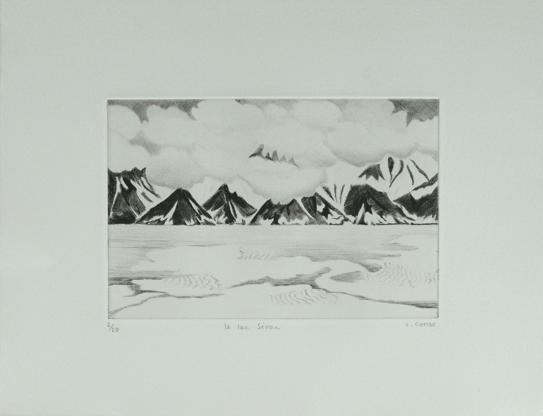 Camille COMBE : Arménie, le lac Sévan, Gravure originale signée