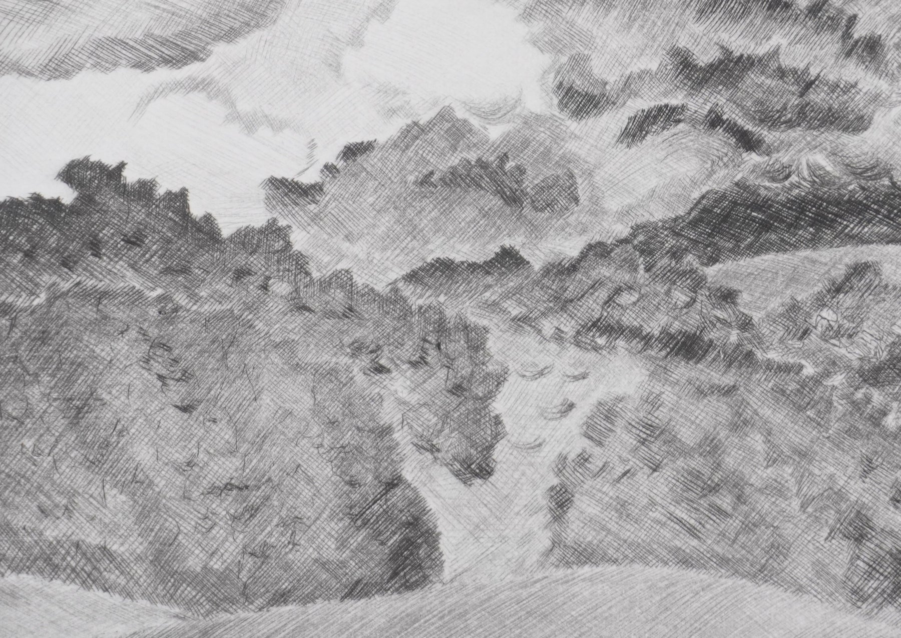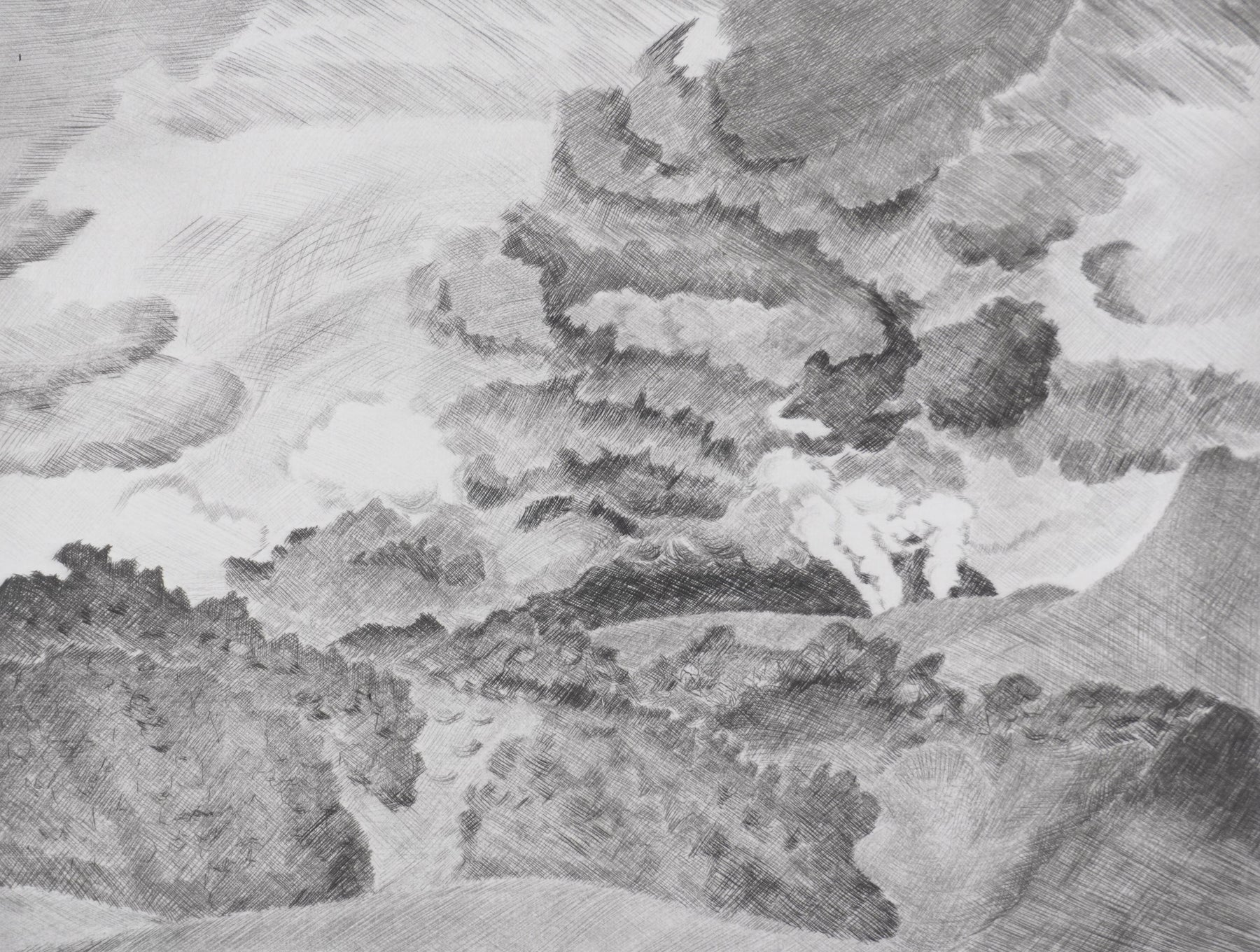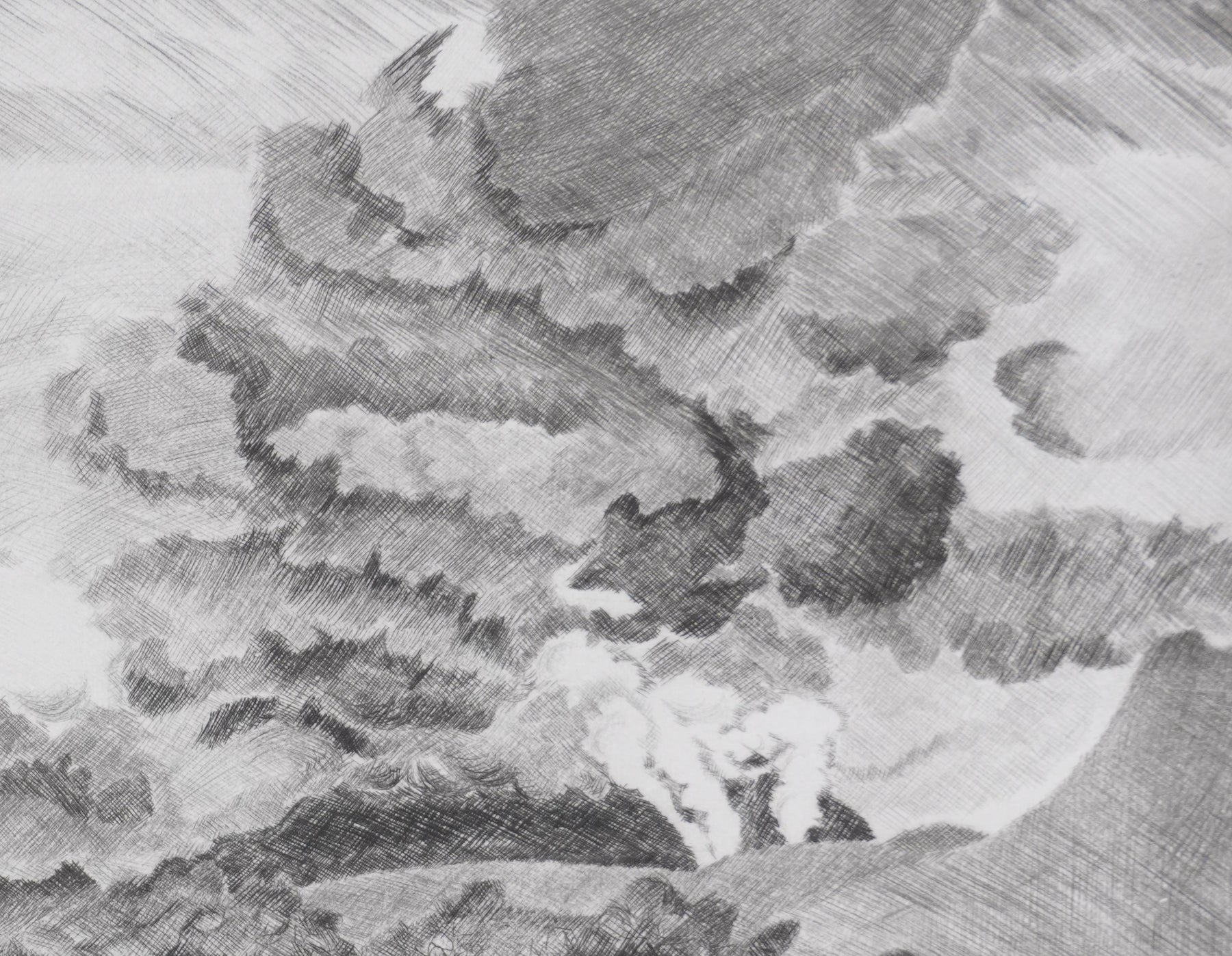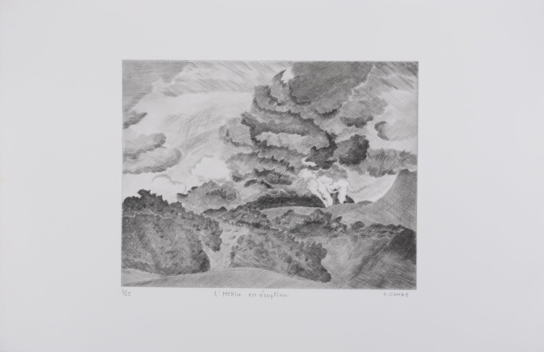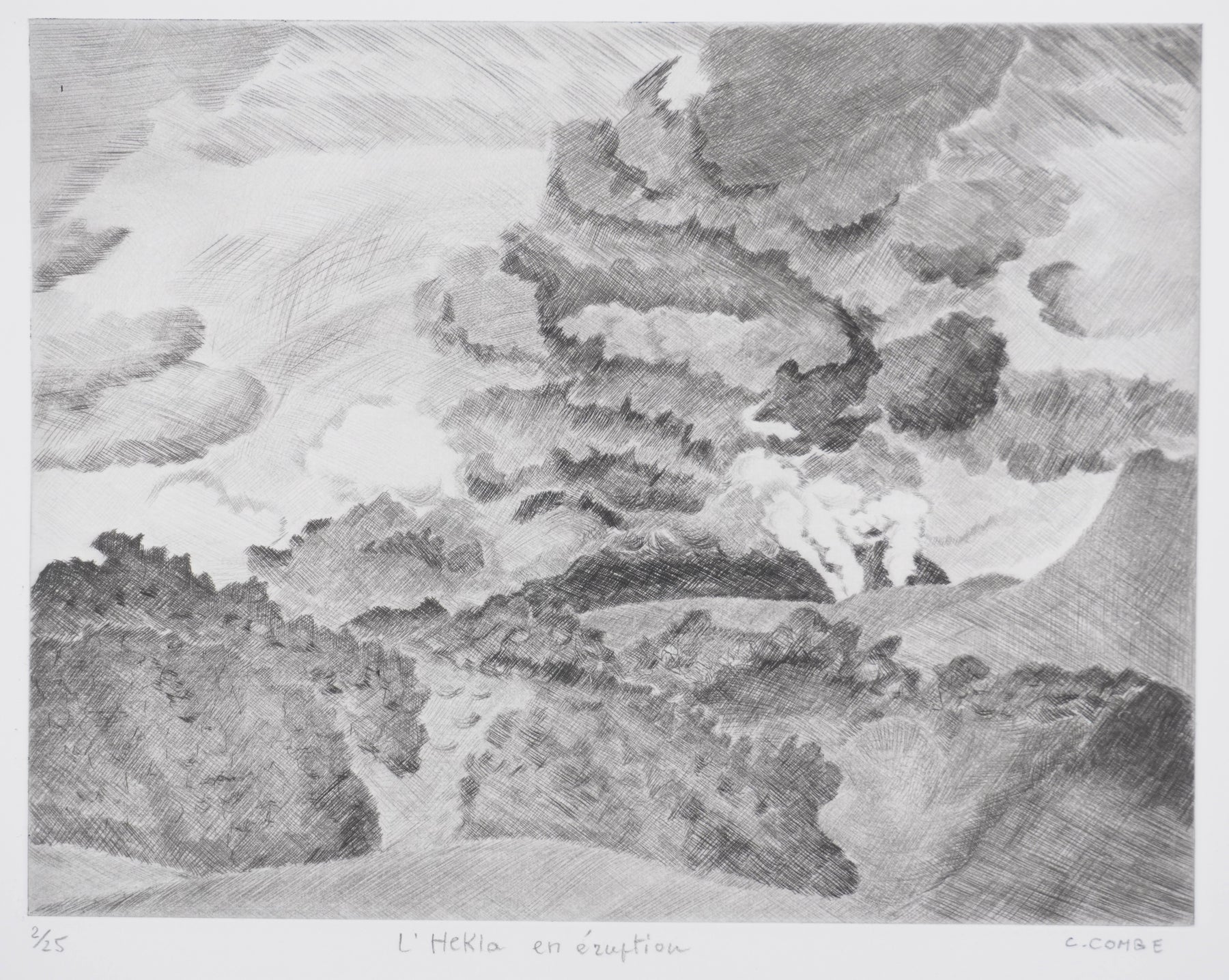Camille COMBE : L'Hekla en éruption, Gravure originale signée