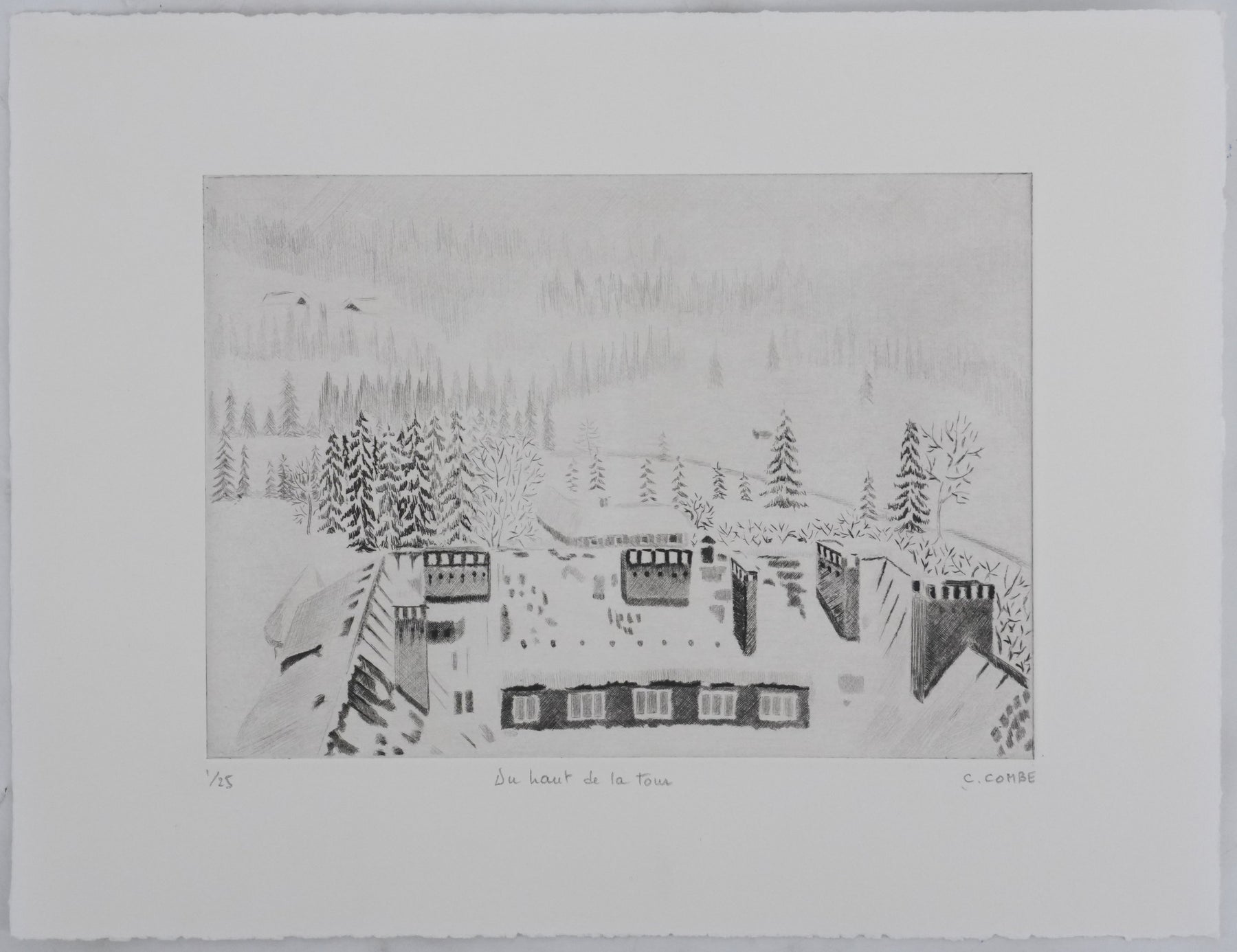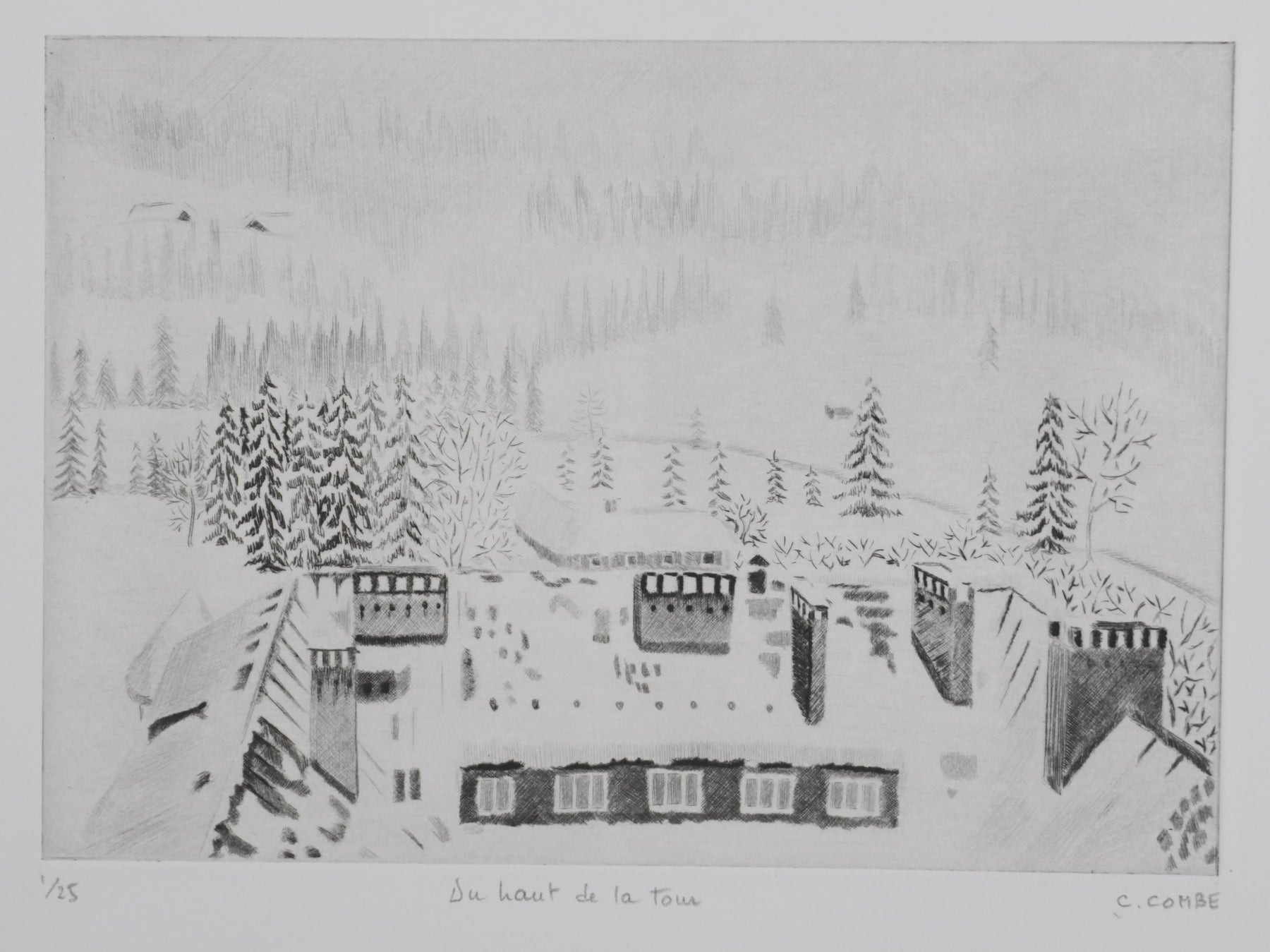 Camille COMBE : Du haut de la tour, Gravure originale signée