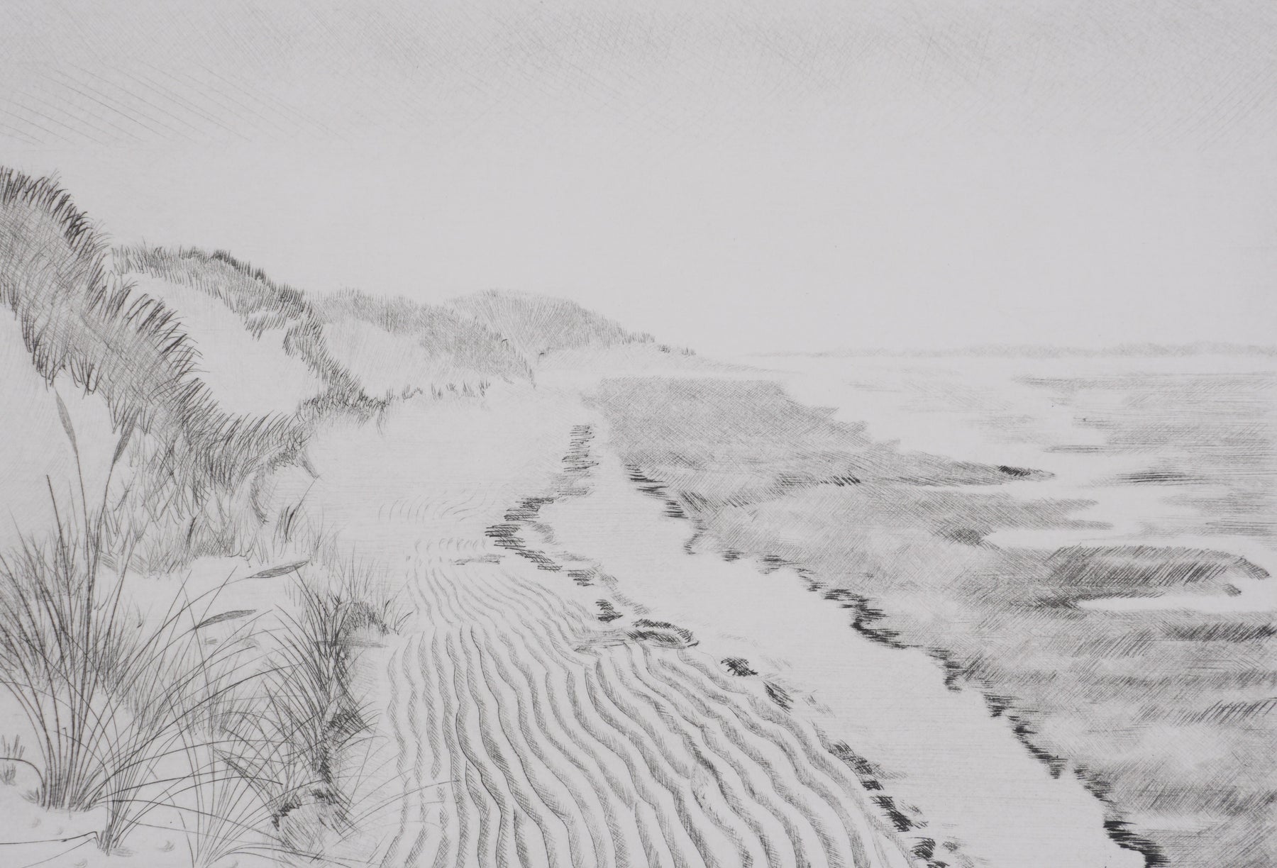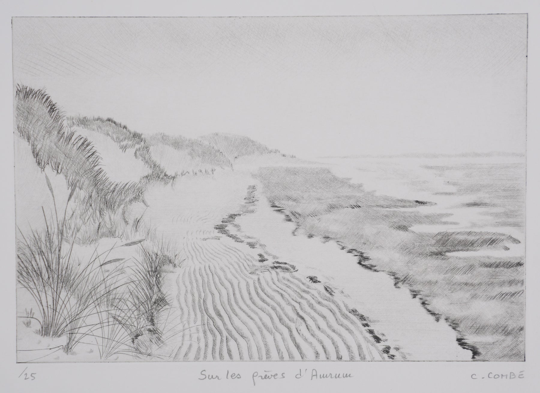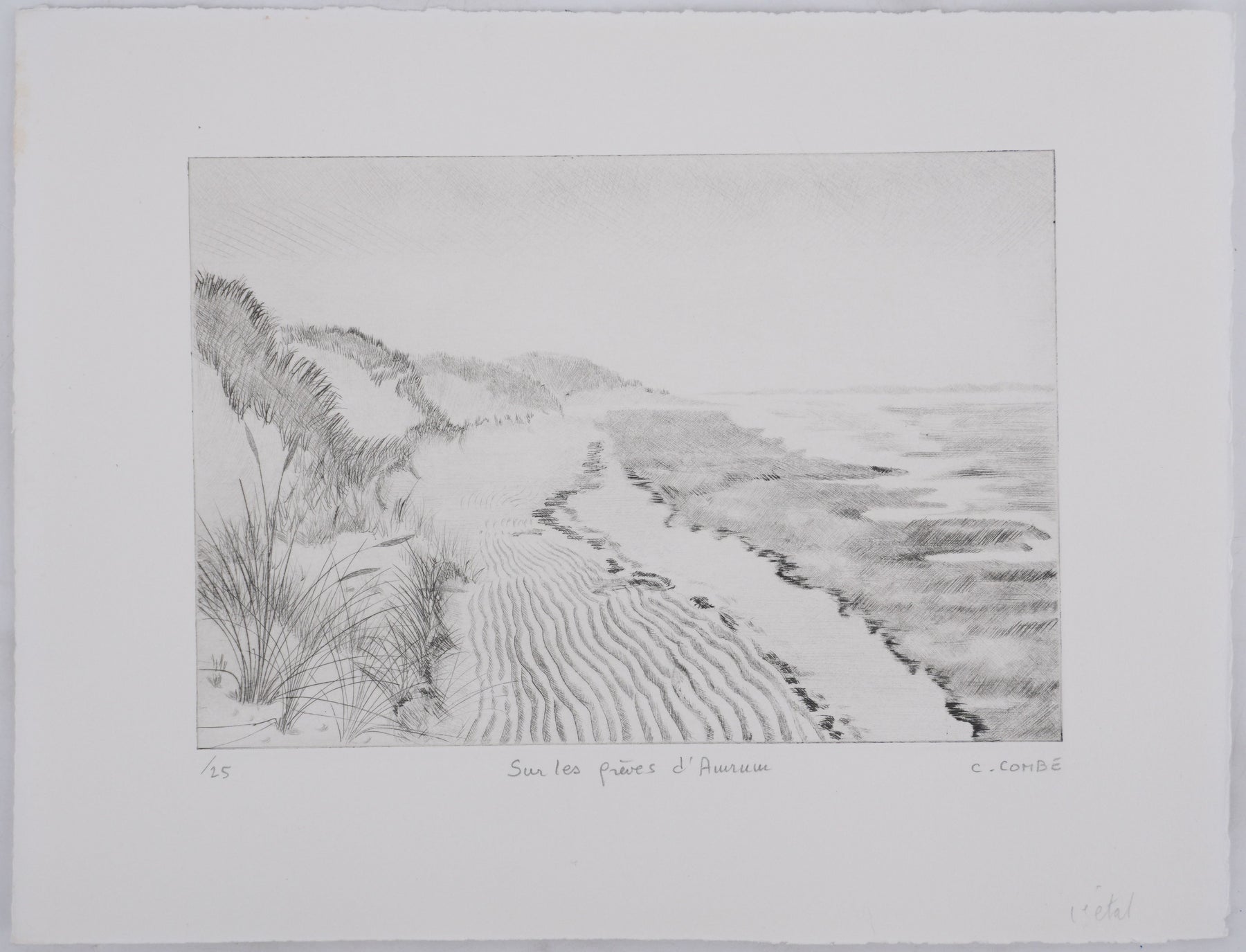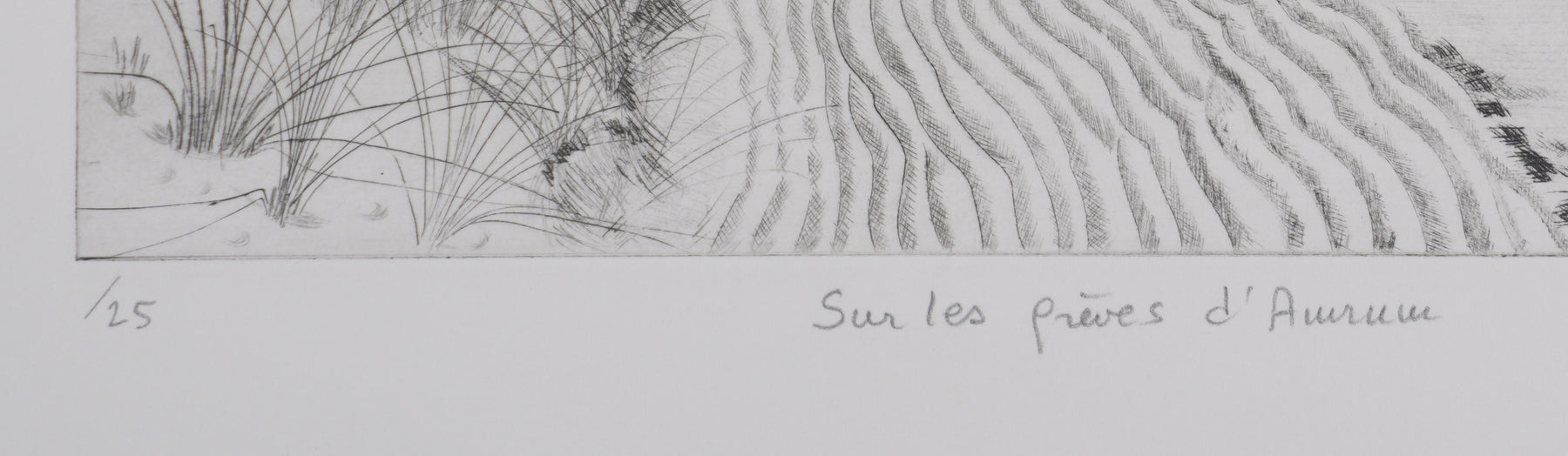Camille COMBE : Sur les grèves d'Amrum, Gravure originale signée